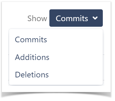 Summary Graph displays the number of total contributions in terms of commits, lines of code added, and deleted in a workspace, a project, or a repository over a specific period.