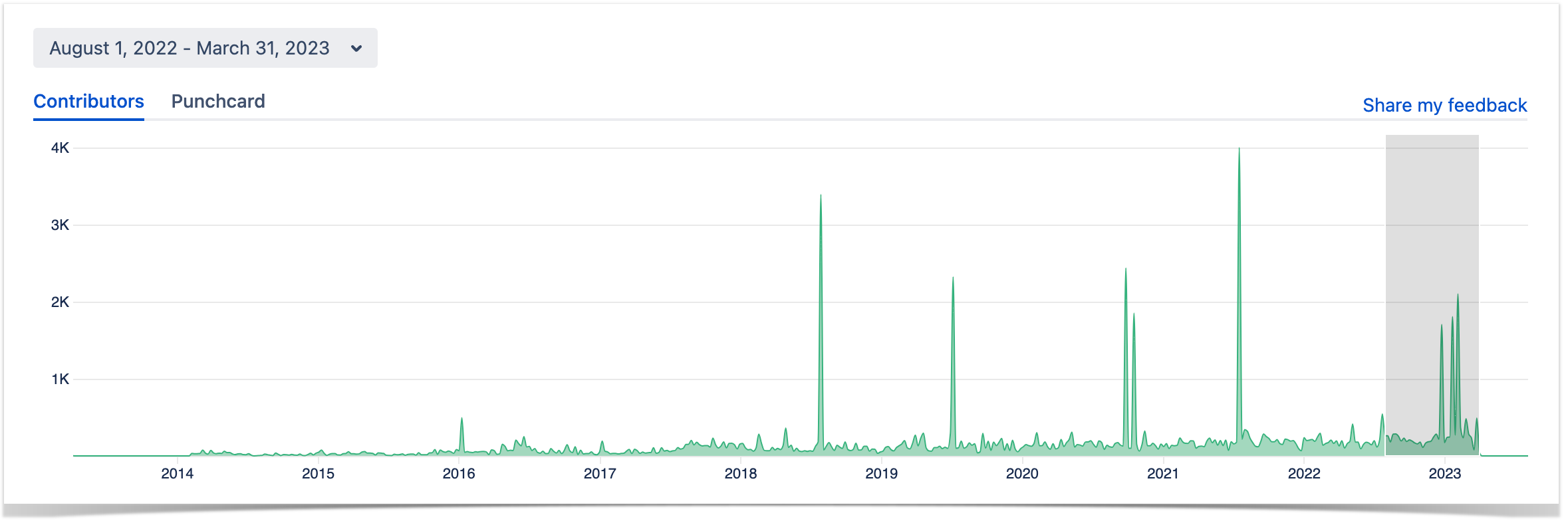 You can filter all the information displayed in the Contributors tab by the period.