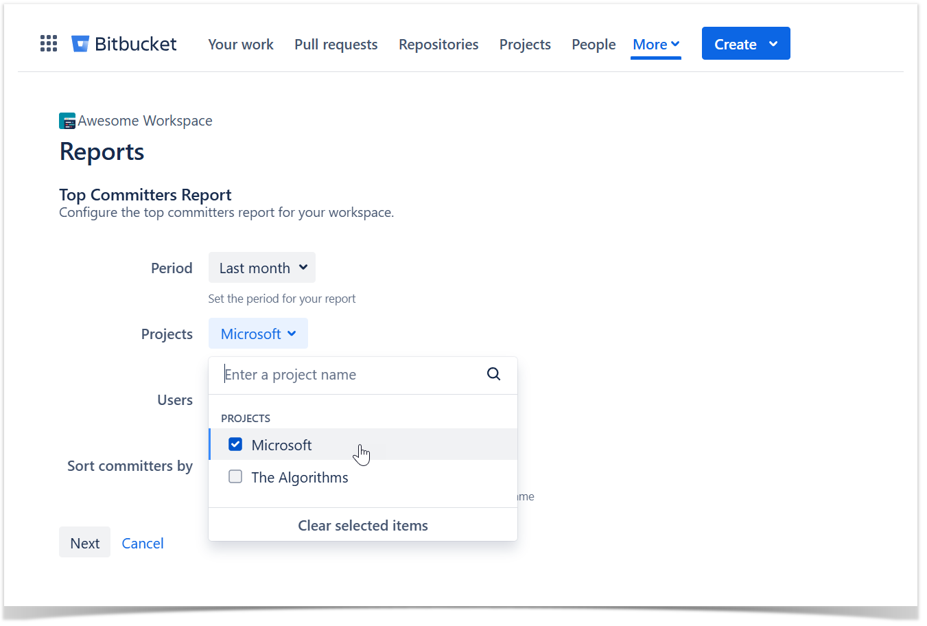 Awesome Graphs Current: Pull Requests Analytics PDF Download PDF Download page Pull Requests Analytics. Current page Include child pages All pages Pull Requests Analytics The Awesome Graphs for Bitbucket app provides you with a set of pull request reports to analyze activity in your repositories and projects.Here's the list of reports available at the moment: Resolution Time Distribution — analyze and predict with detailed resolution time statistics. How to get to the Reports pageTo access the reports on a workspace level:Click More → Reports in the header.To access the reports for a repository:Navigate to the repository of your choice.Click Reports in the left-hand sidebar.How to view the Reports for projectsTo generate reports for specific projects, you need to configure your selection on the Reports Configuration page:Click on the More → Reports in the header.Choose one of the Reports.In the Projects section on the Configuration page, select one or more projects you want to include in the report.Click Next.The report will then be generated based on the selected projects, allowing you to focus on the most relevant data for your needs. You can let us know what other types of reports would be useful for your teams by posting an idea on the Awesome Graphs forum. ×