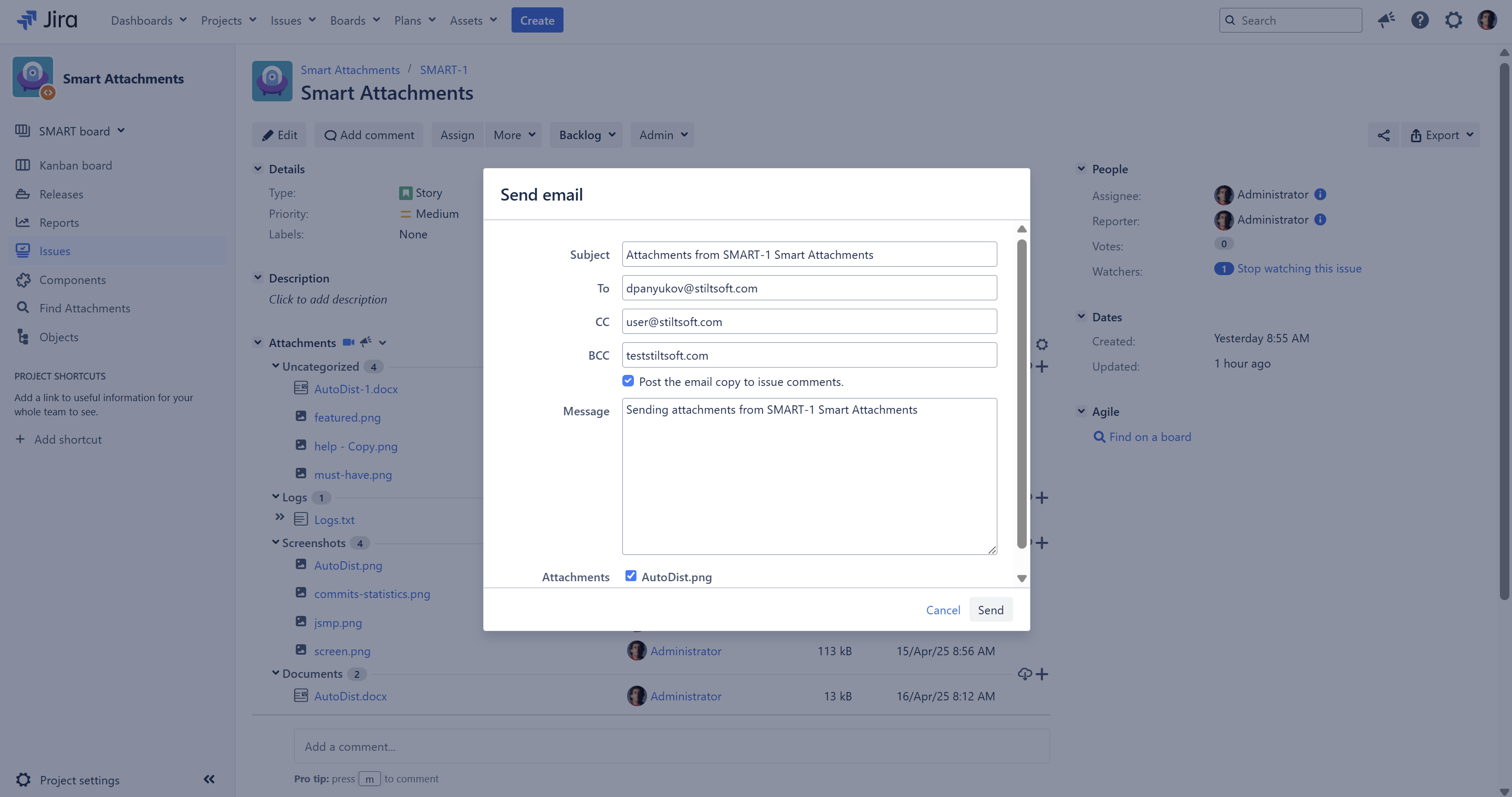 To post a copy of the email message, select the Save the email copy to issue comments option.
