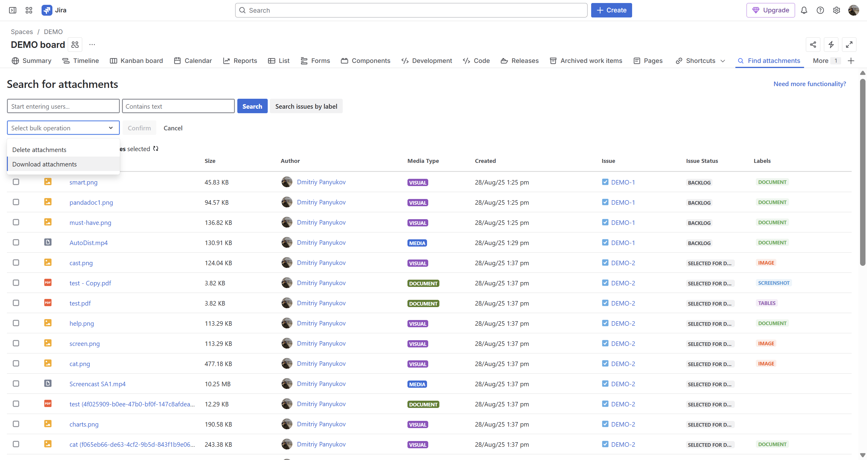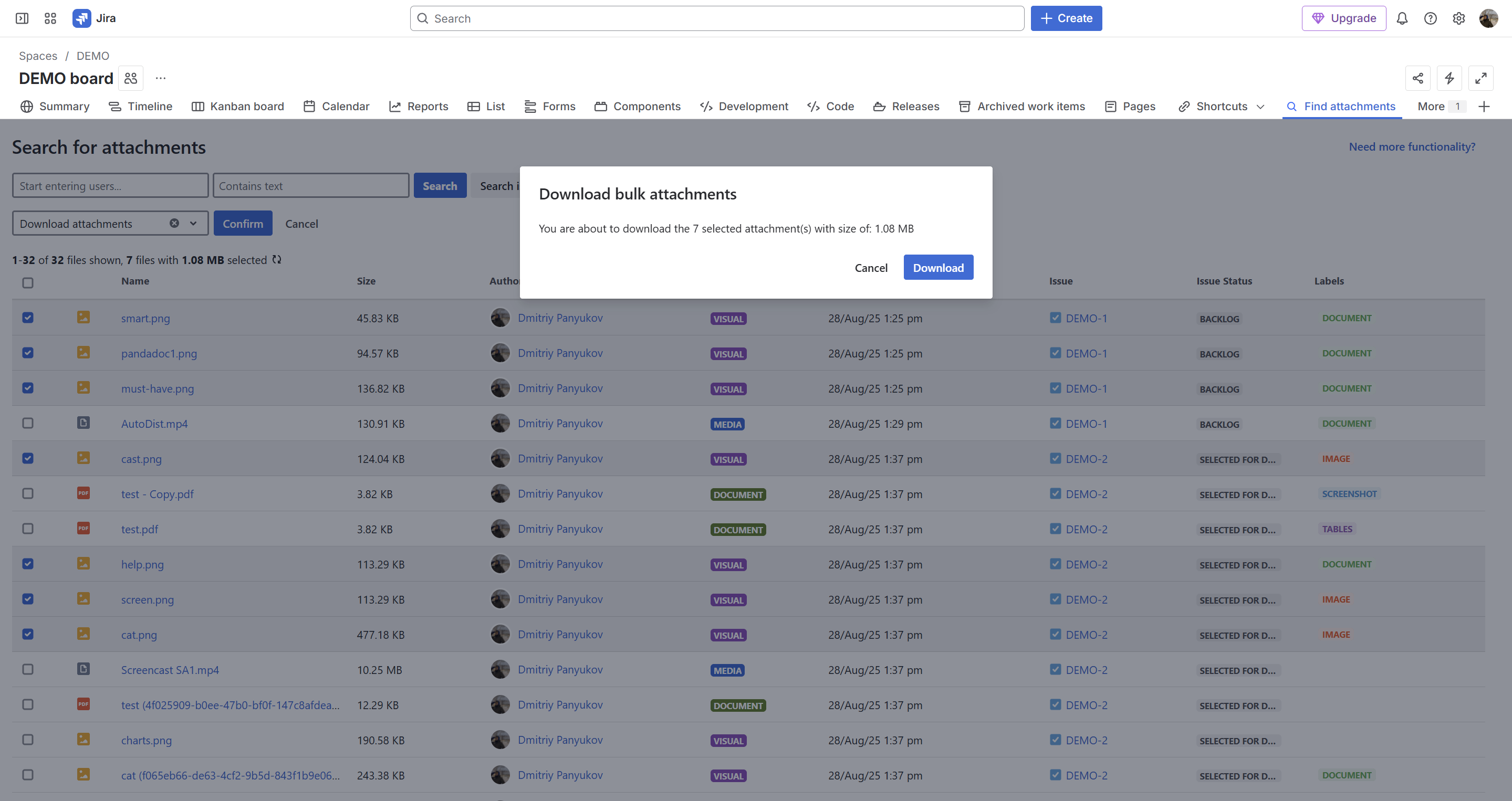 - bulk download attachments from multiple Jira issues