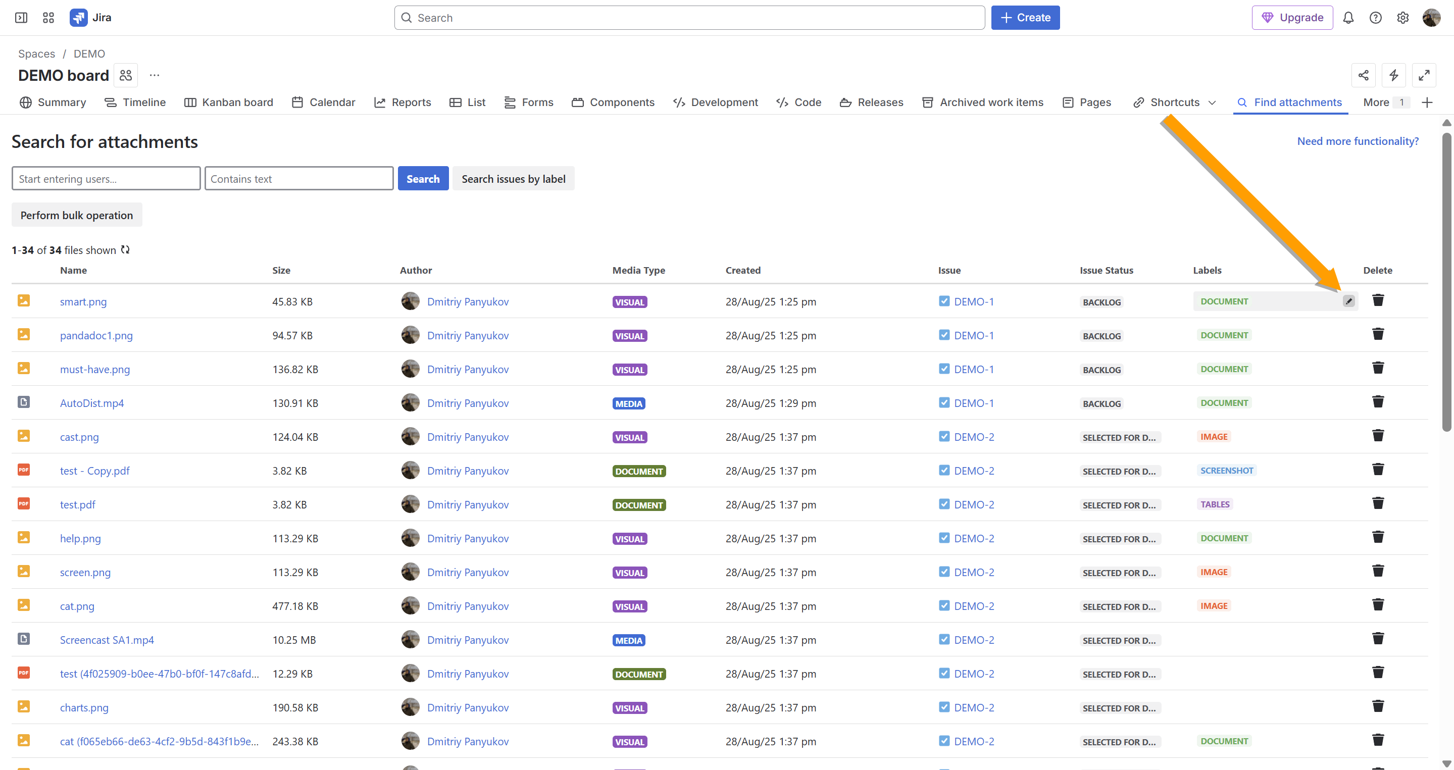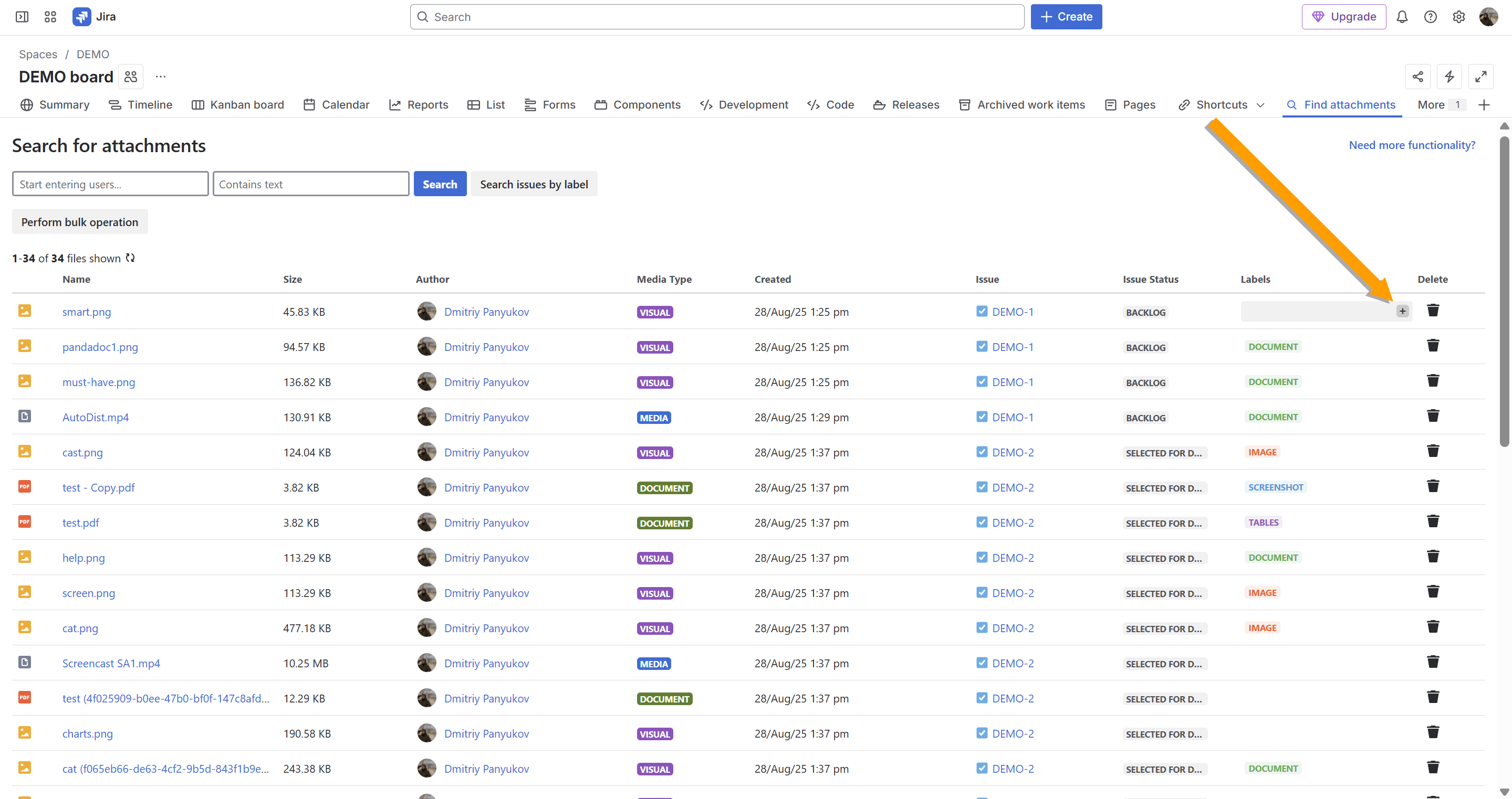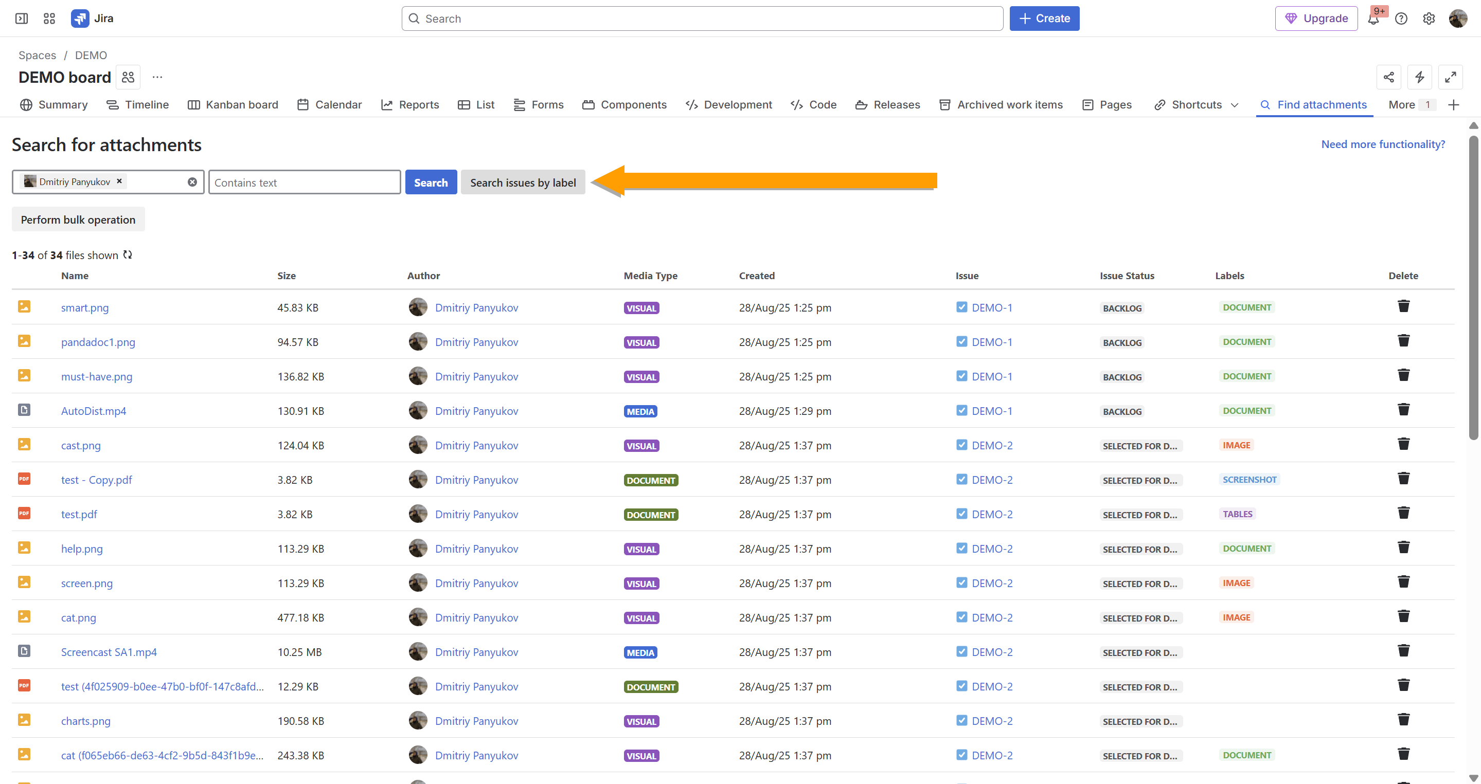 - search for issues with attachments by labels