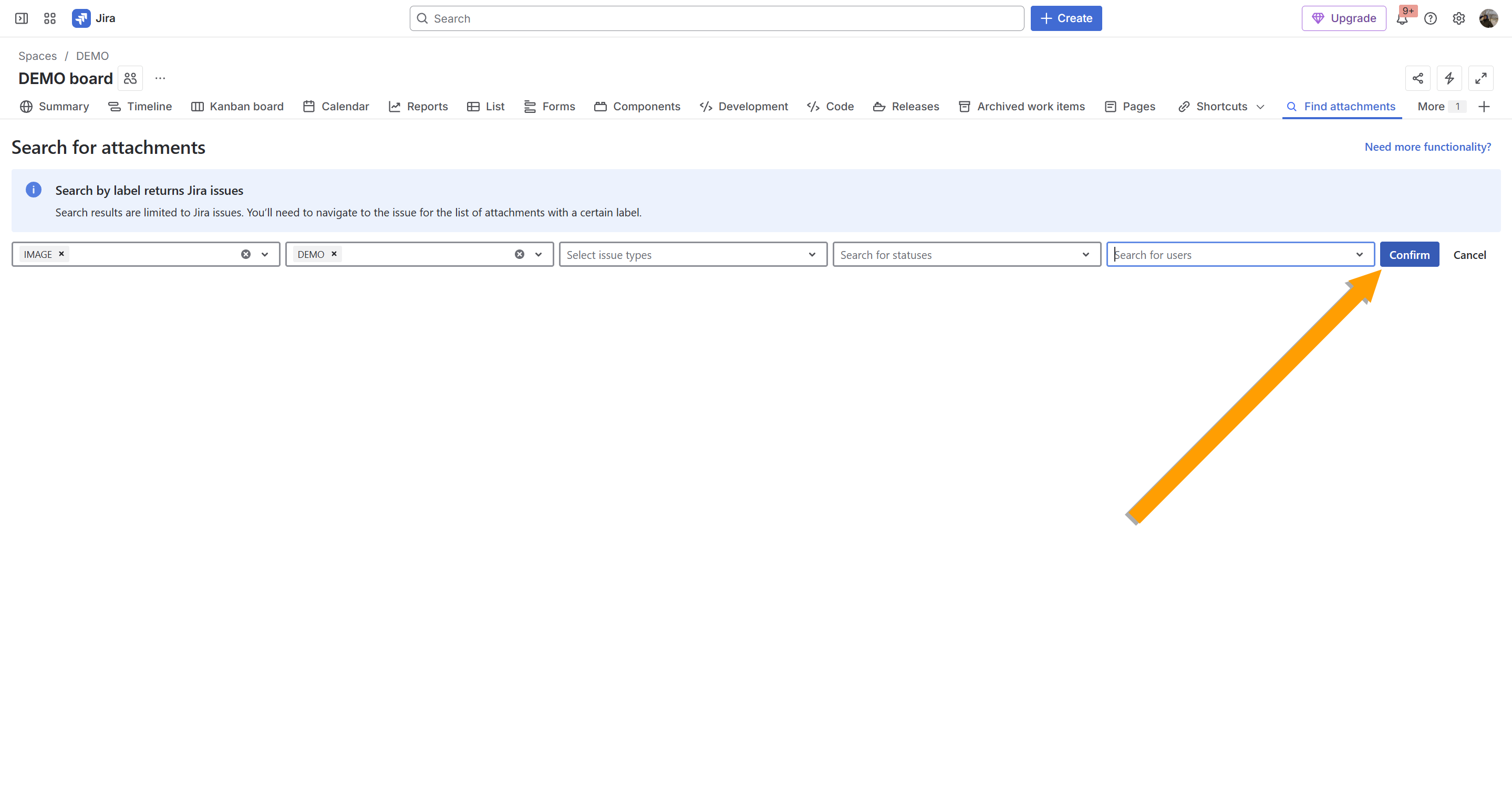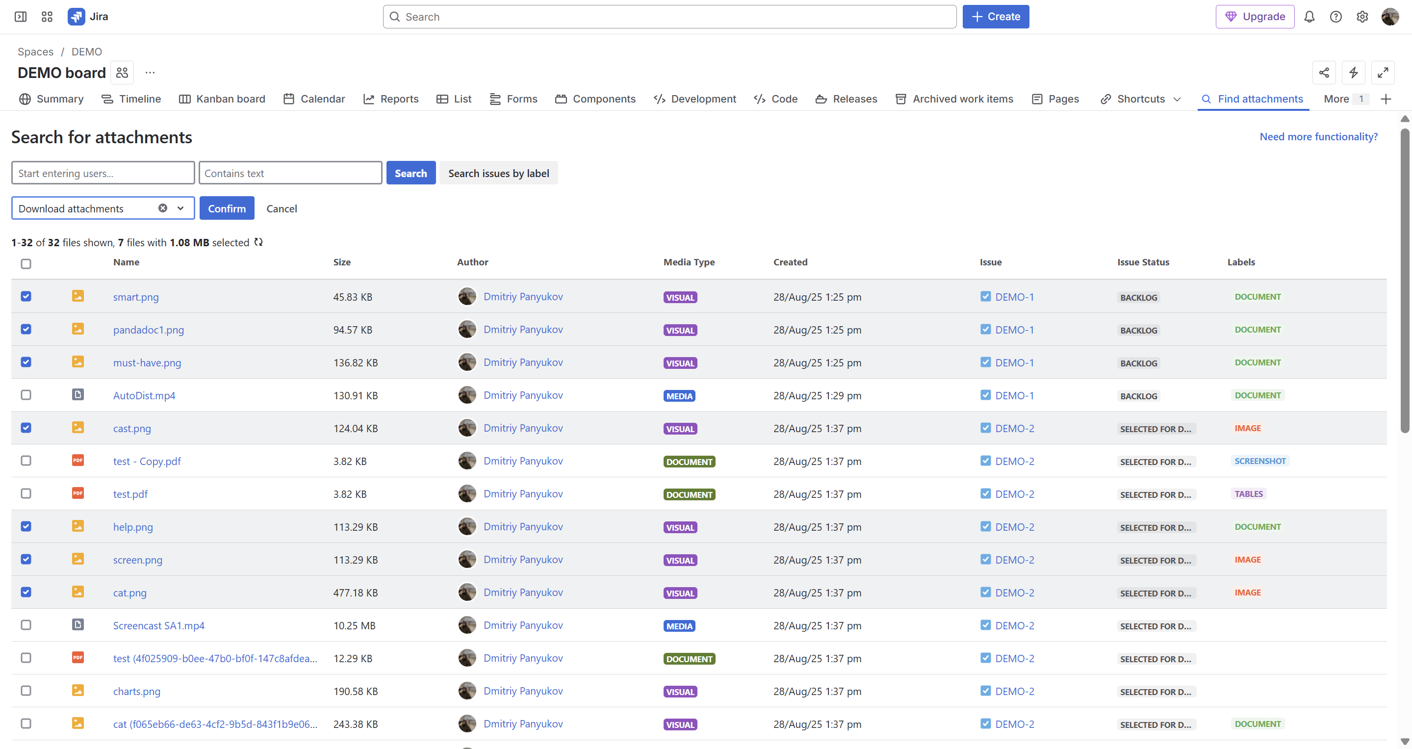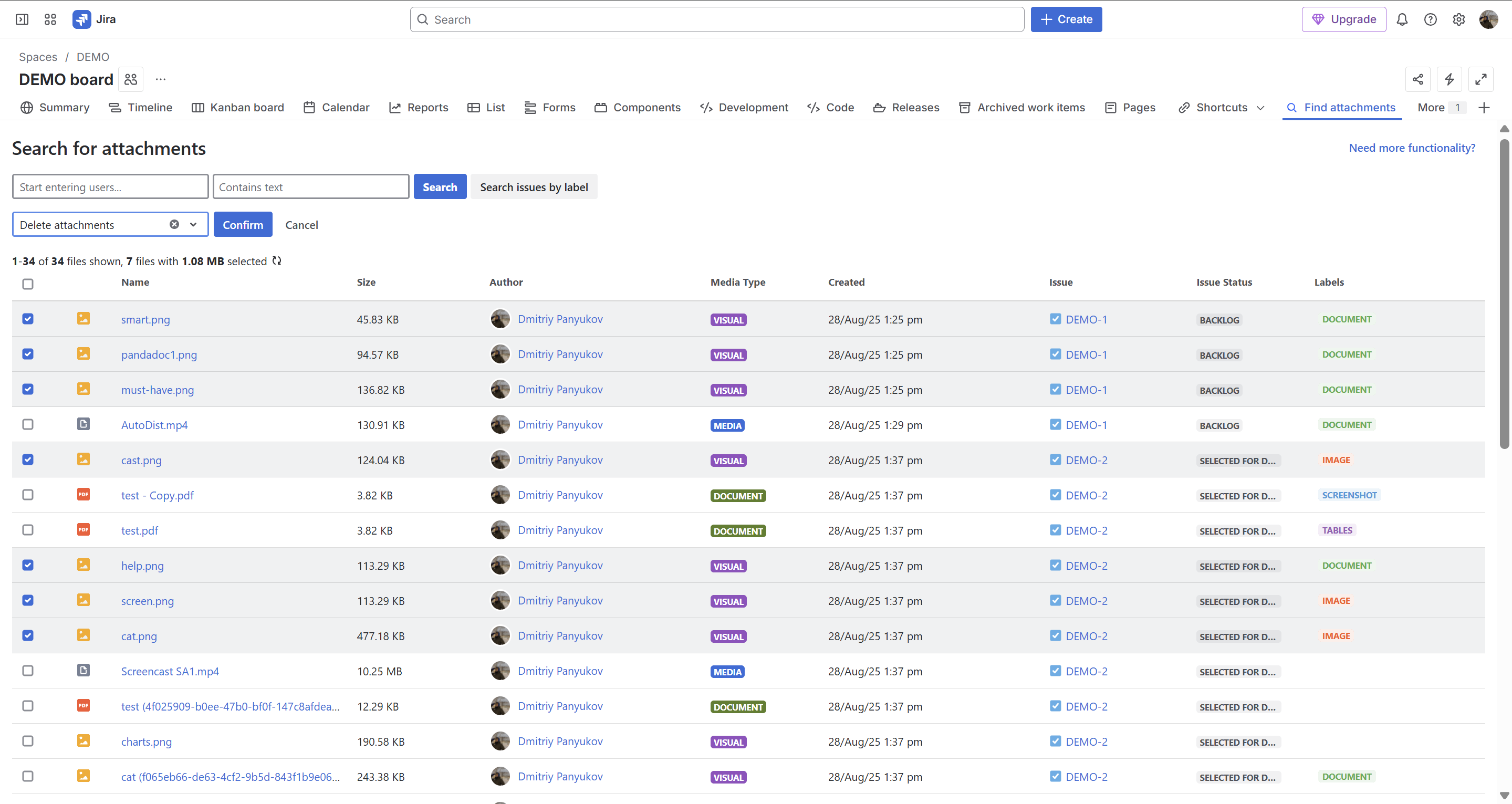 - search for issues with attachments by labels