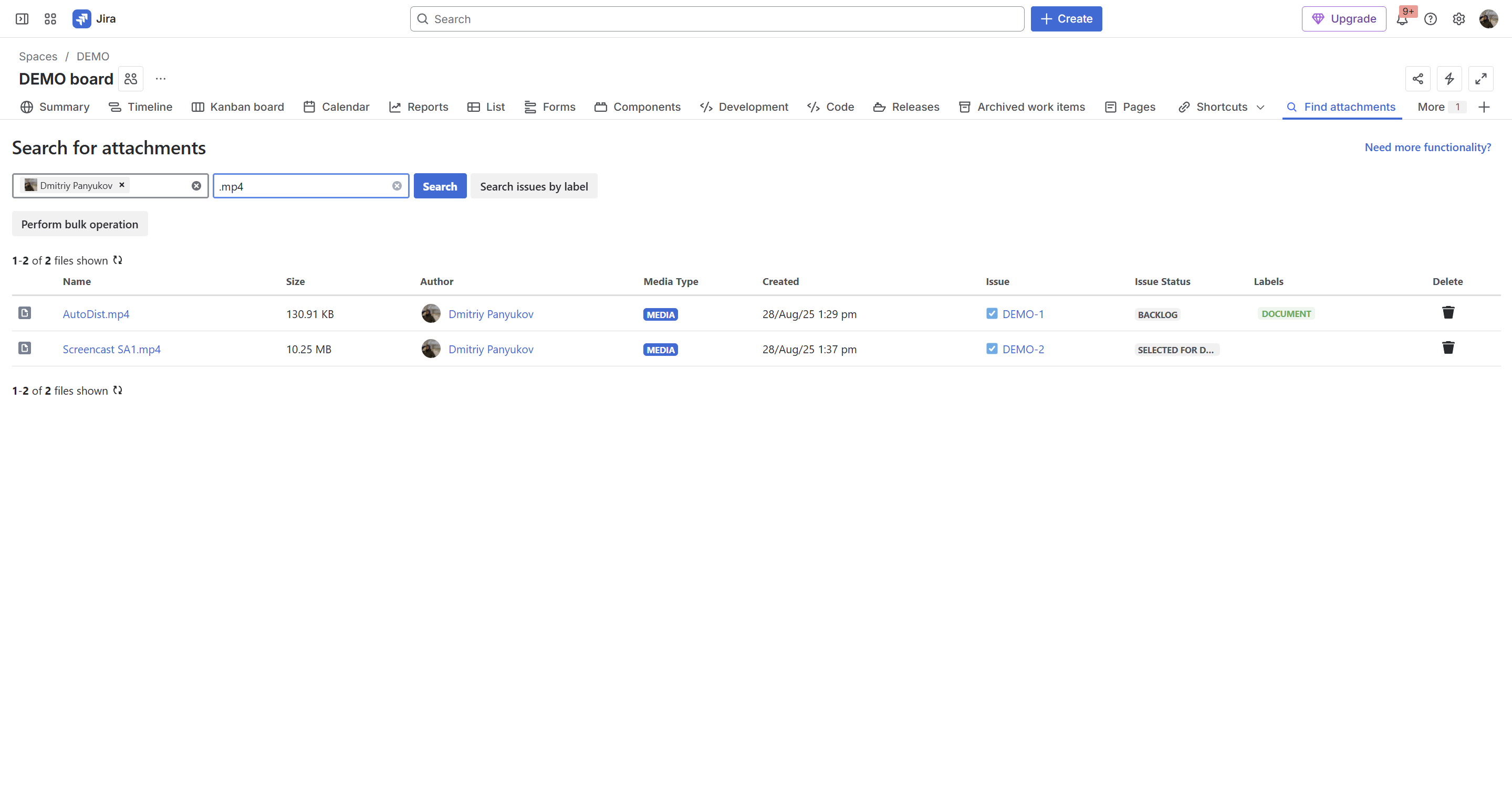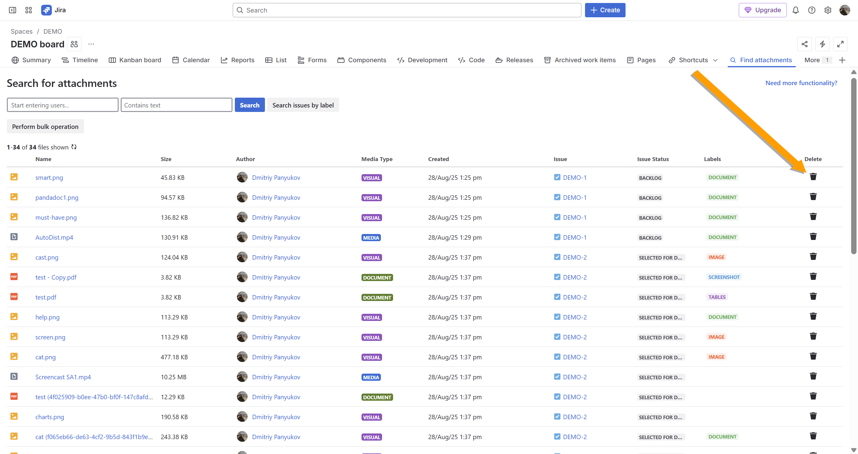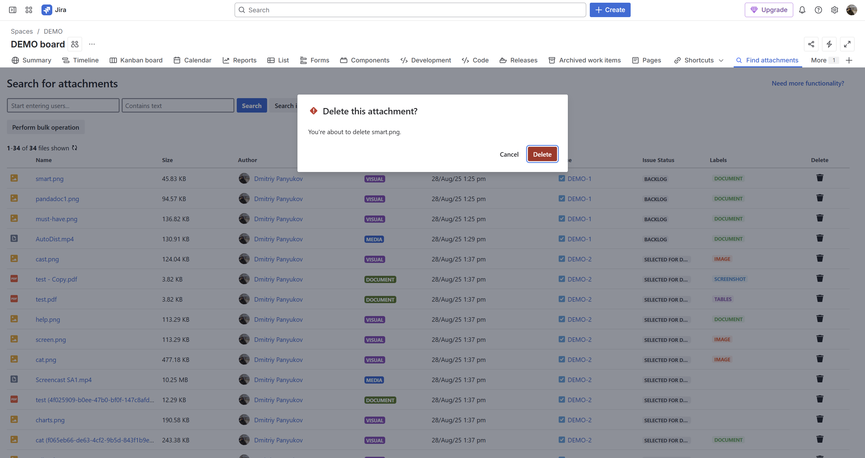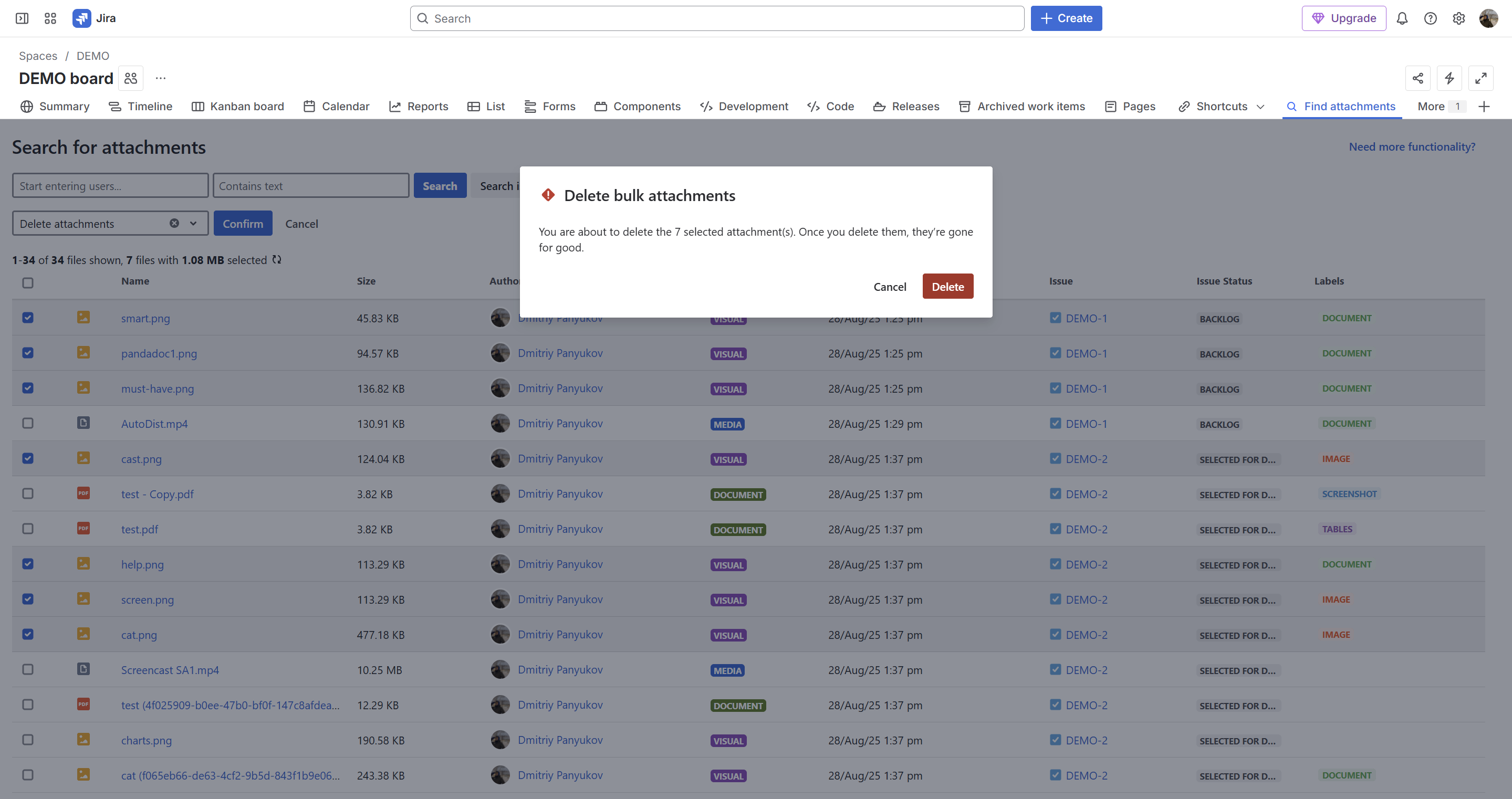 If you lack the respective Jira permissions to remove certain selected files, the app will skip them when performing the deletion. Contact your Jira Administrator for help.