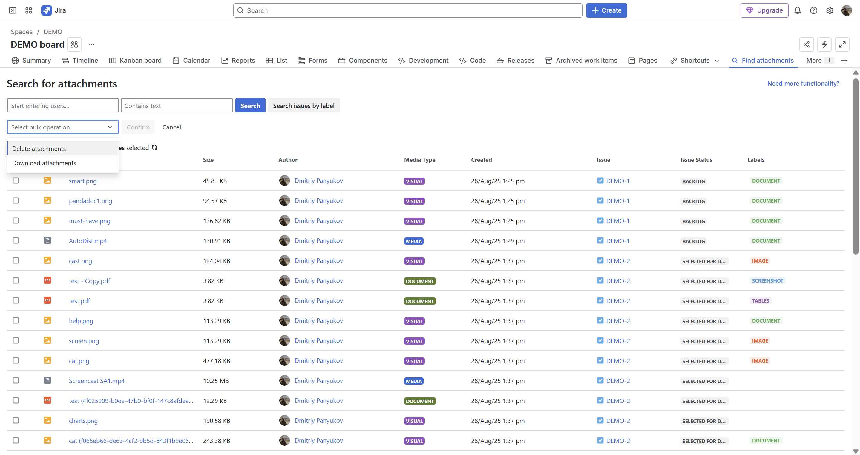 - bulk delete attachments from multiple Jira issues