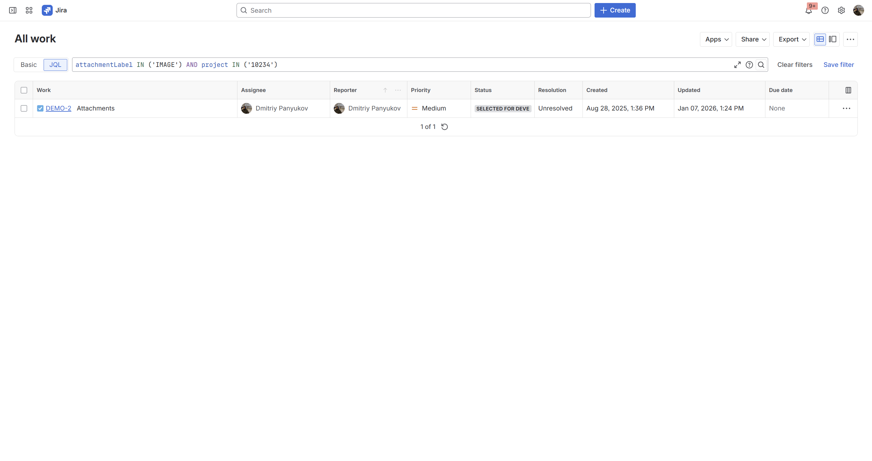 Search for issues with attachments