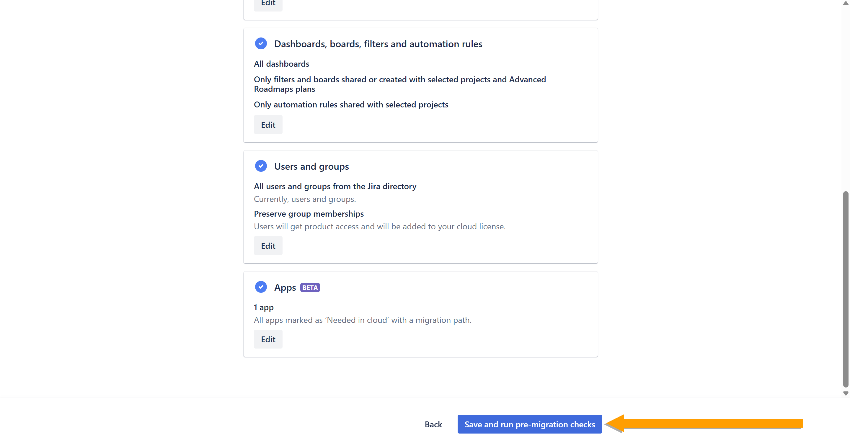 - Click Save and run pre-migration checks.