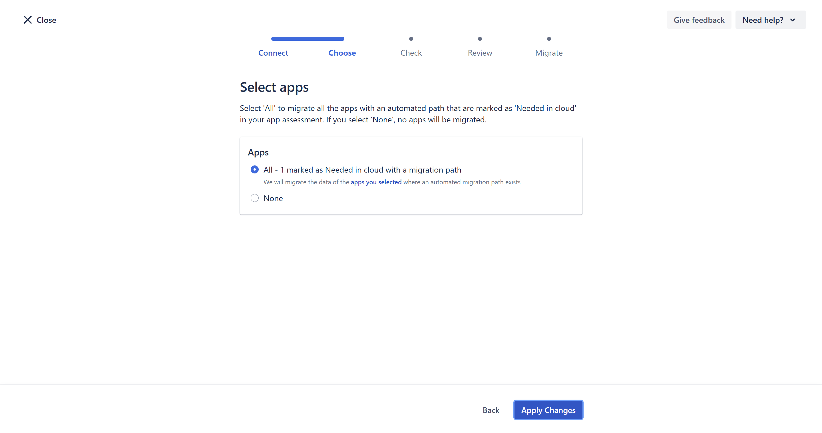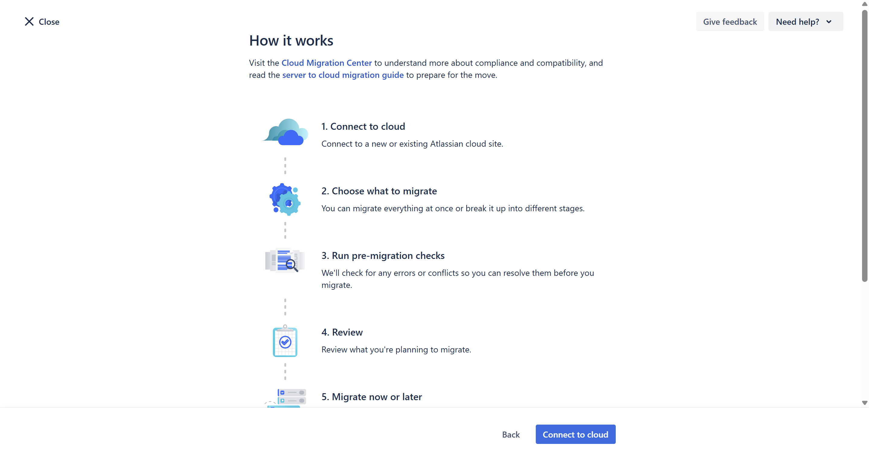 - On the navigation sidebar, select Migrate to cloud.