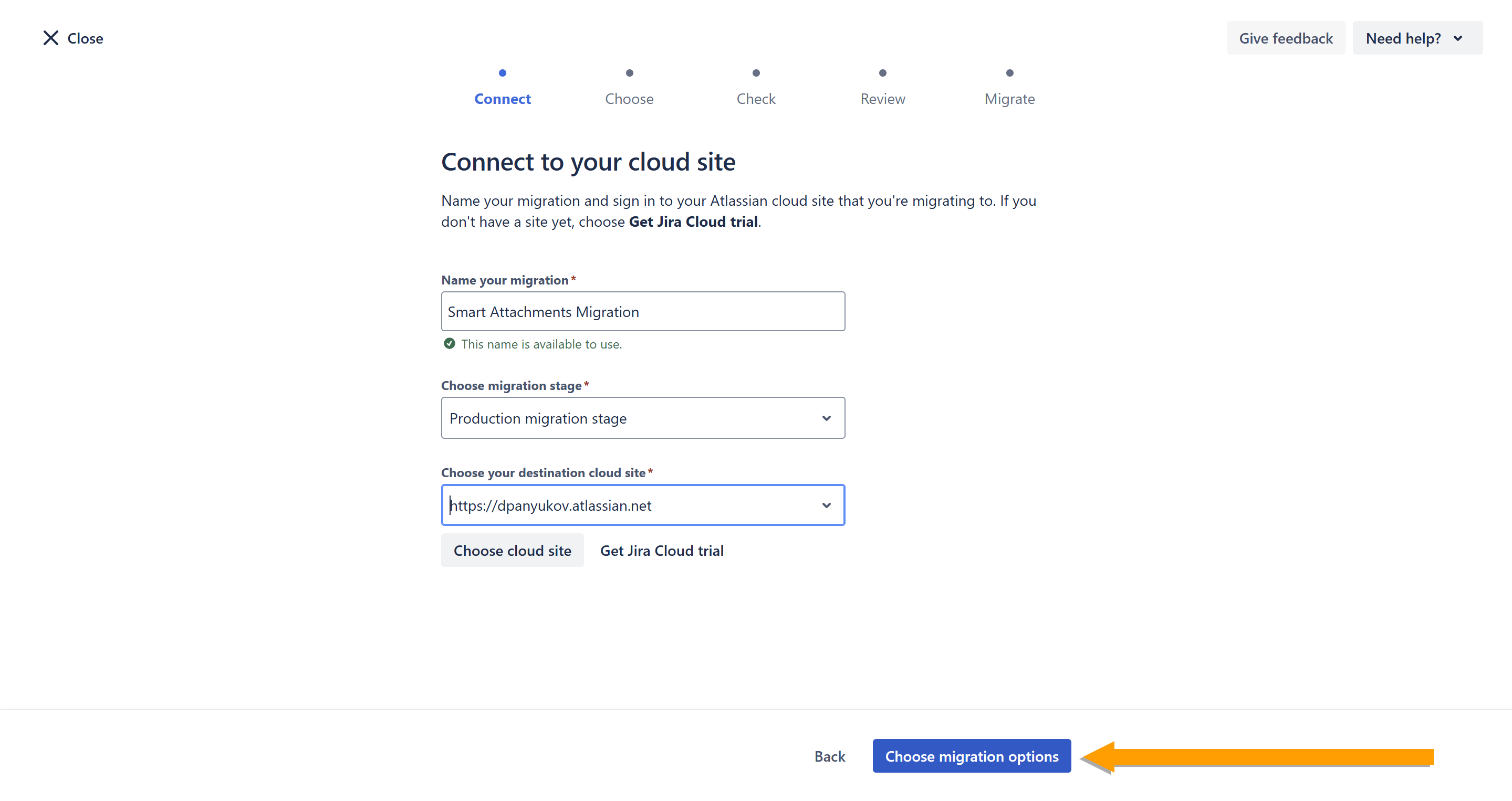 - Click Choose migration options.