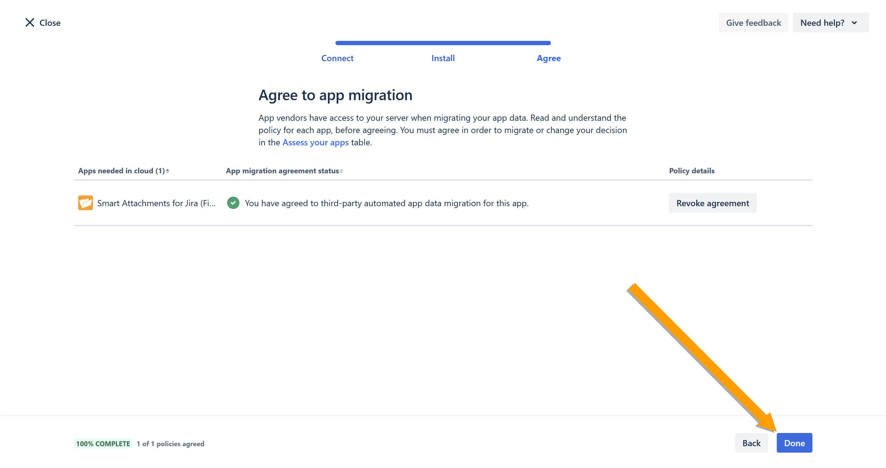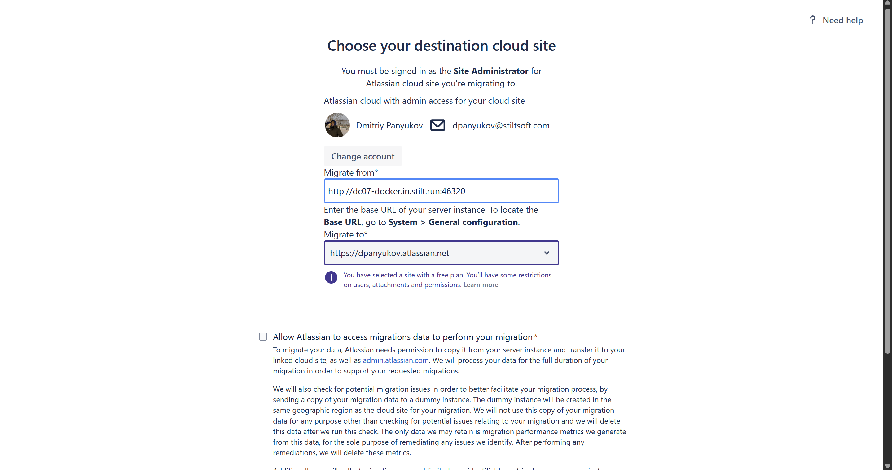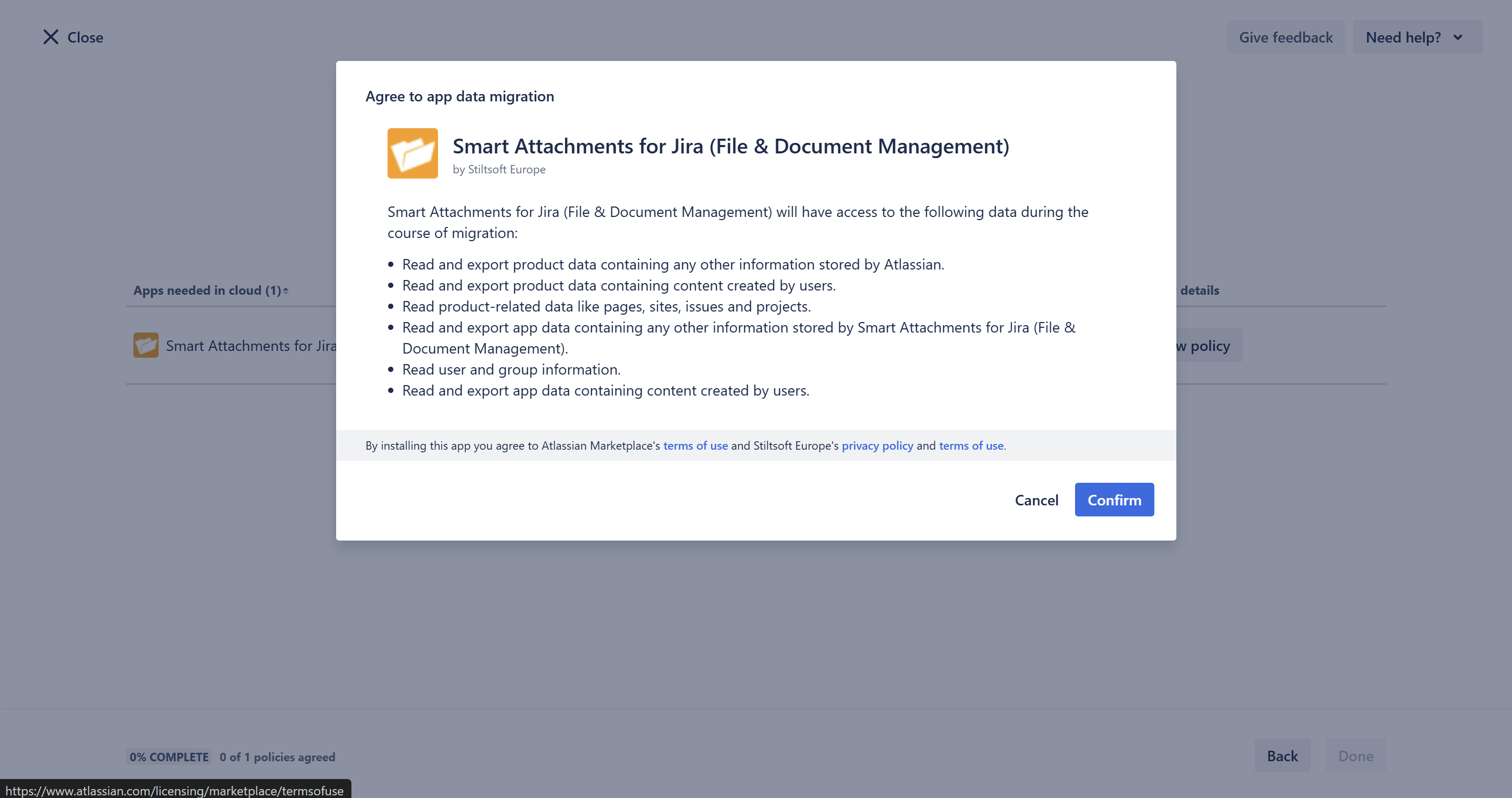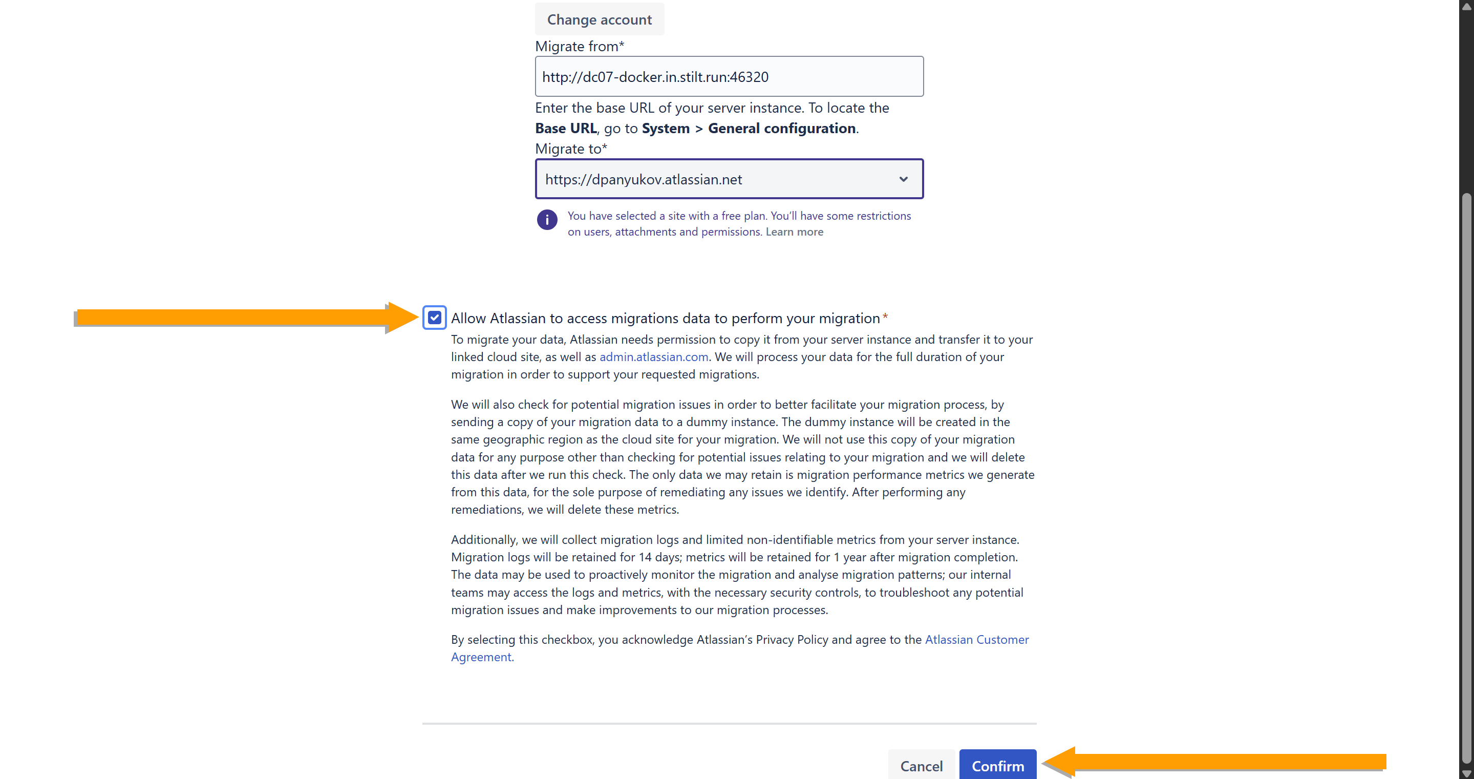 - Tick the Allow Atlassian to access migrations data to perform your migration box and click Confirm.