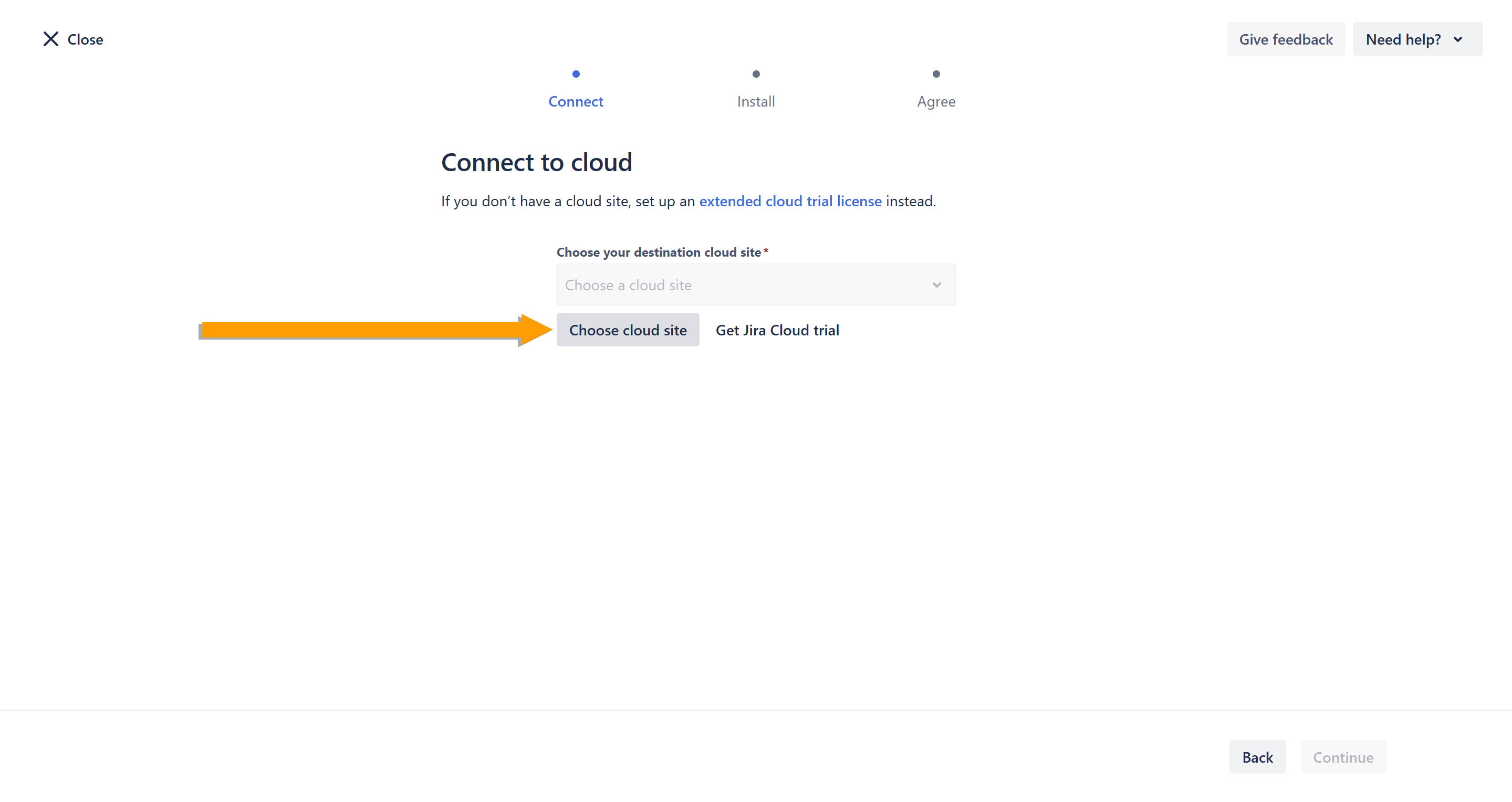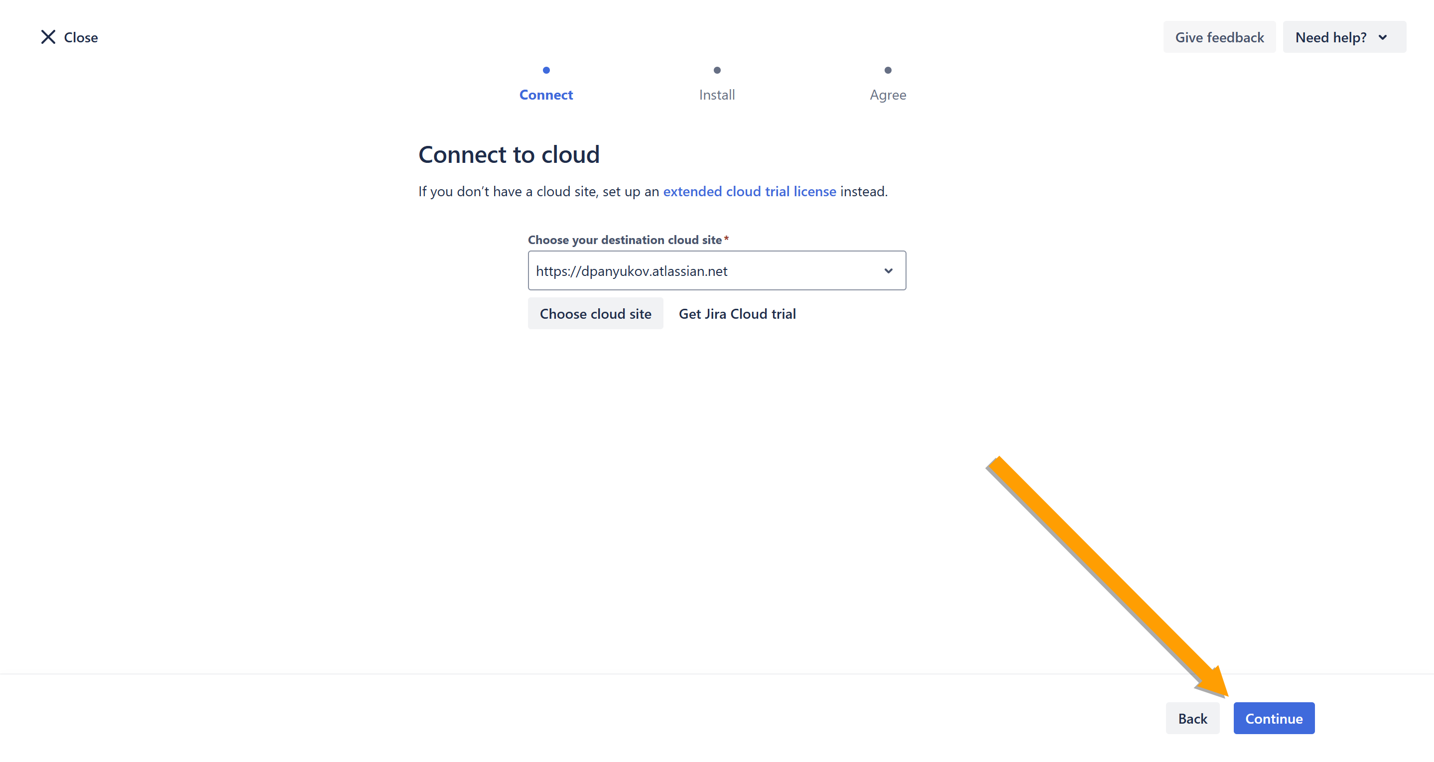 - You will be redirected back to the Connect to cloud page. Click Continue.