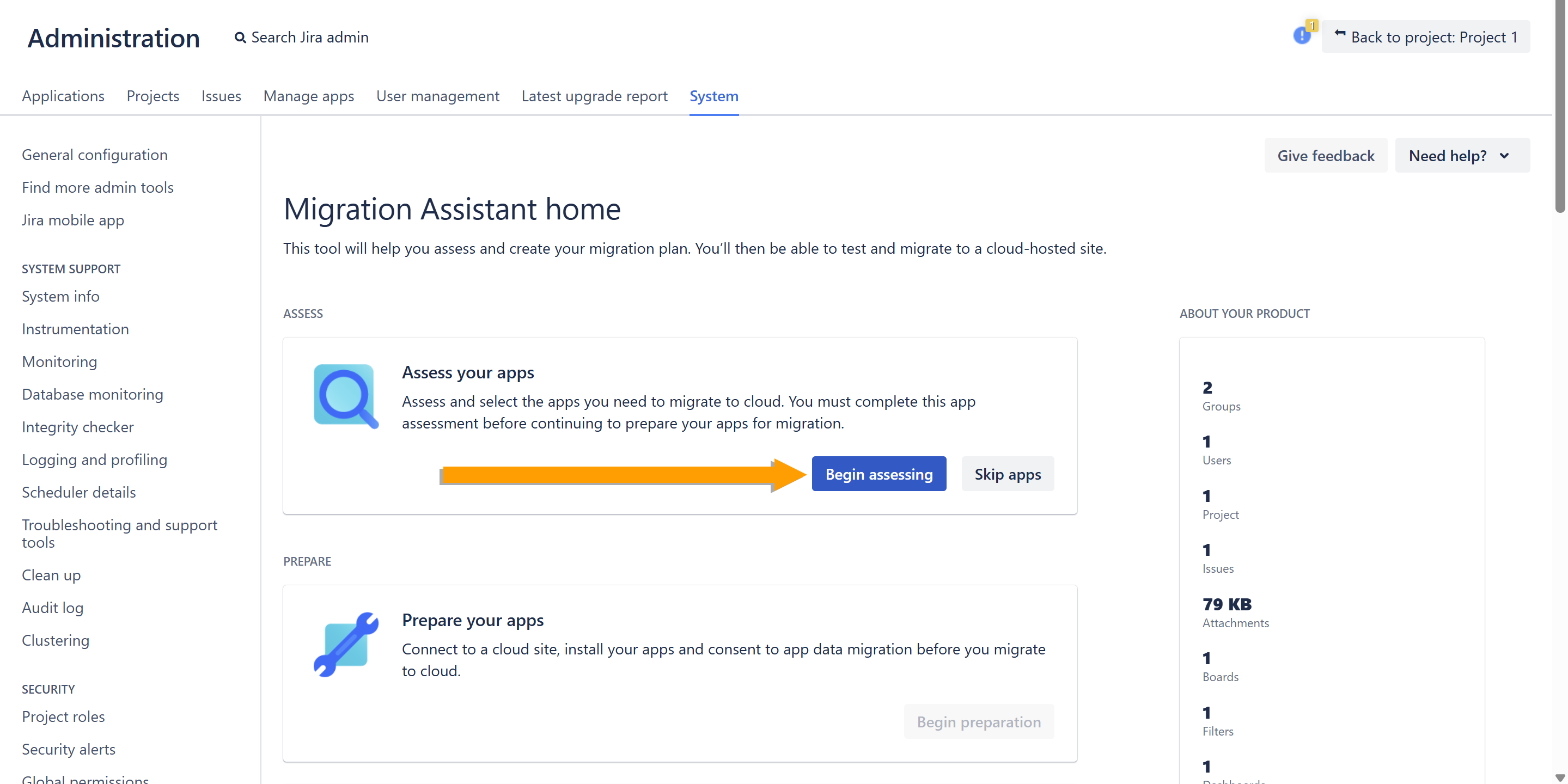 - On the opened page, in the Assess your apps box, click Begin assessing.