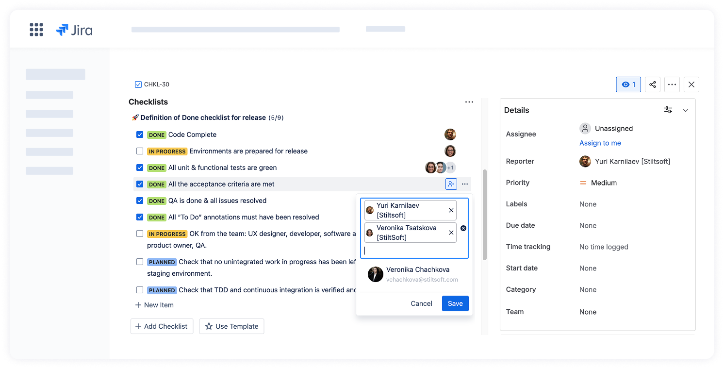 Now, you can add and rearrange checklist items not only using the Enter and Cmd + [ ] / Ctrl + [ ] shortcuts but also through the item menu.