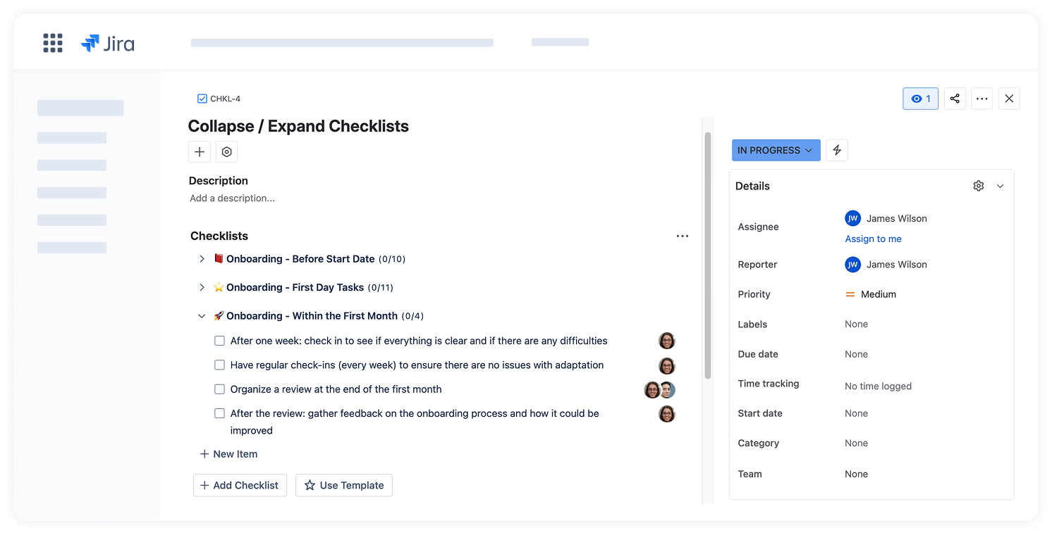 In this release, we've added the ability to collapse and expand checklists. The collapsed or expanded state is saved per user and persists even after reloading the page. This functionality makes it easier to navigate multiple checklists in a Jira work item and stay focused on your tasks.