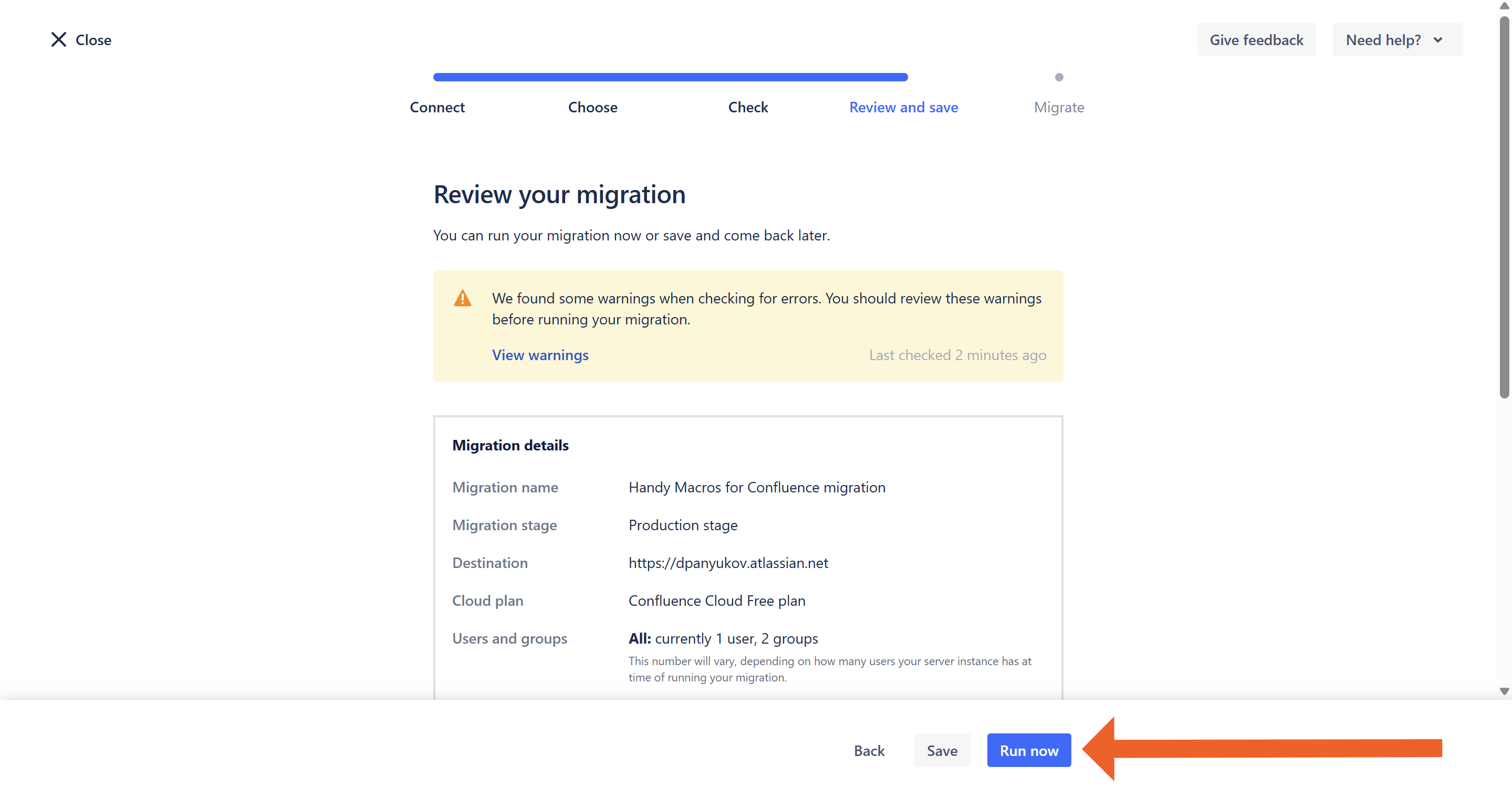 13. Evaluate errors and warnings. If everything looks good, click Review Migration.