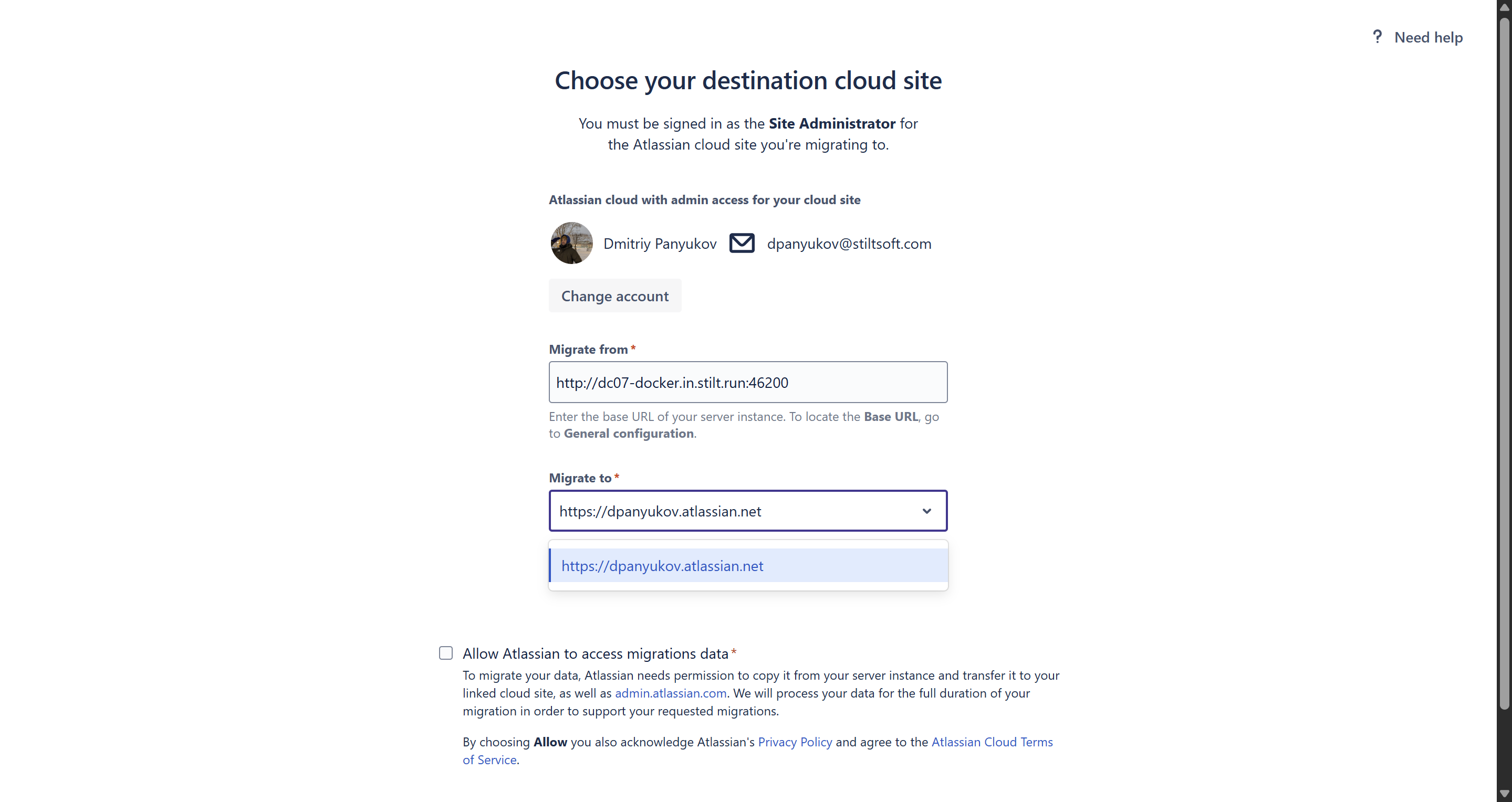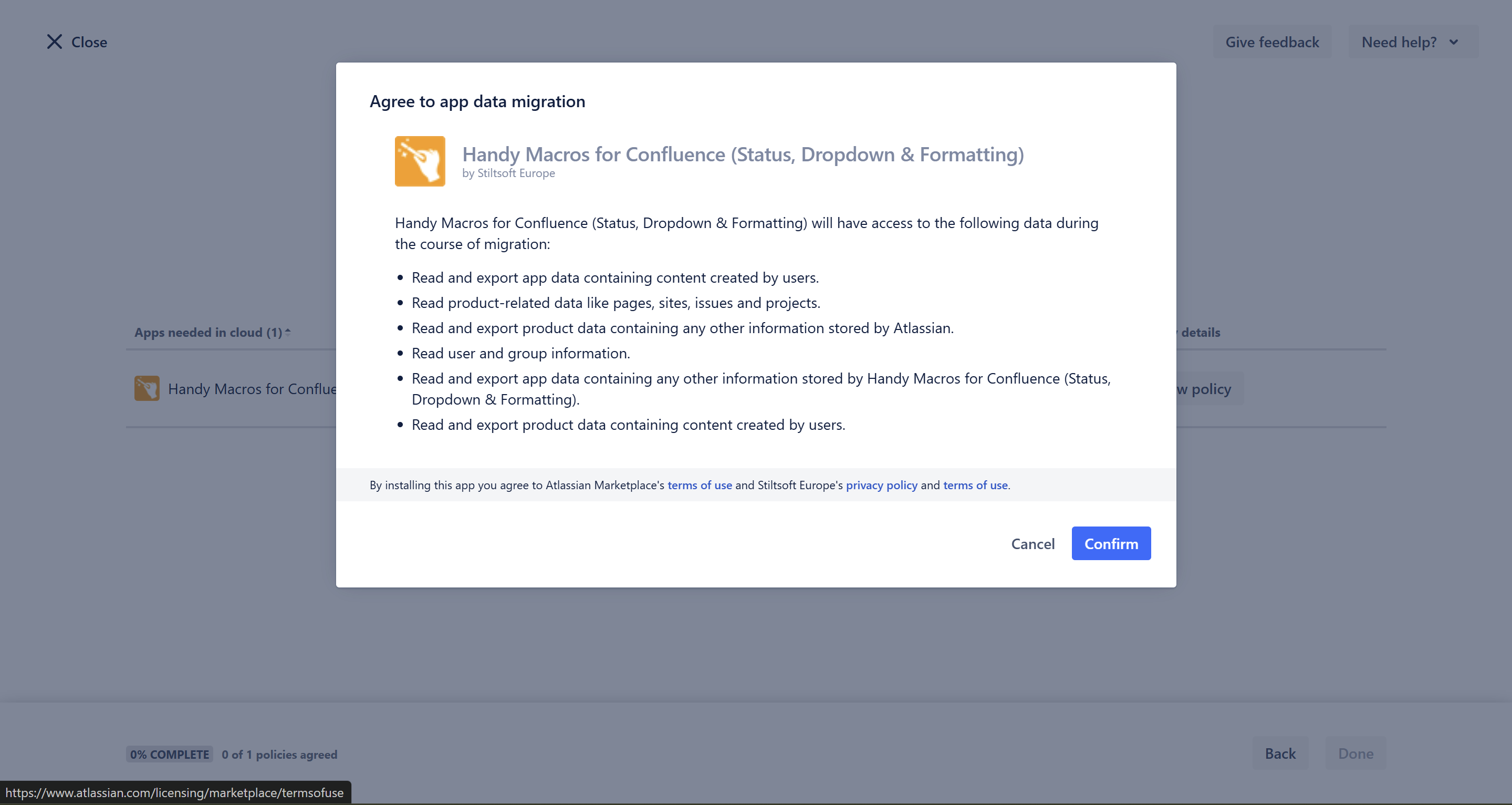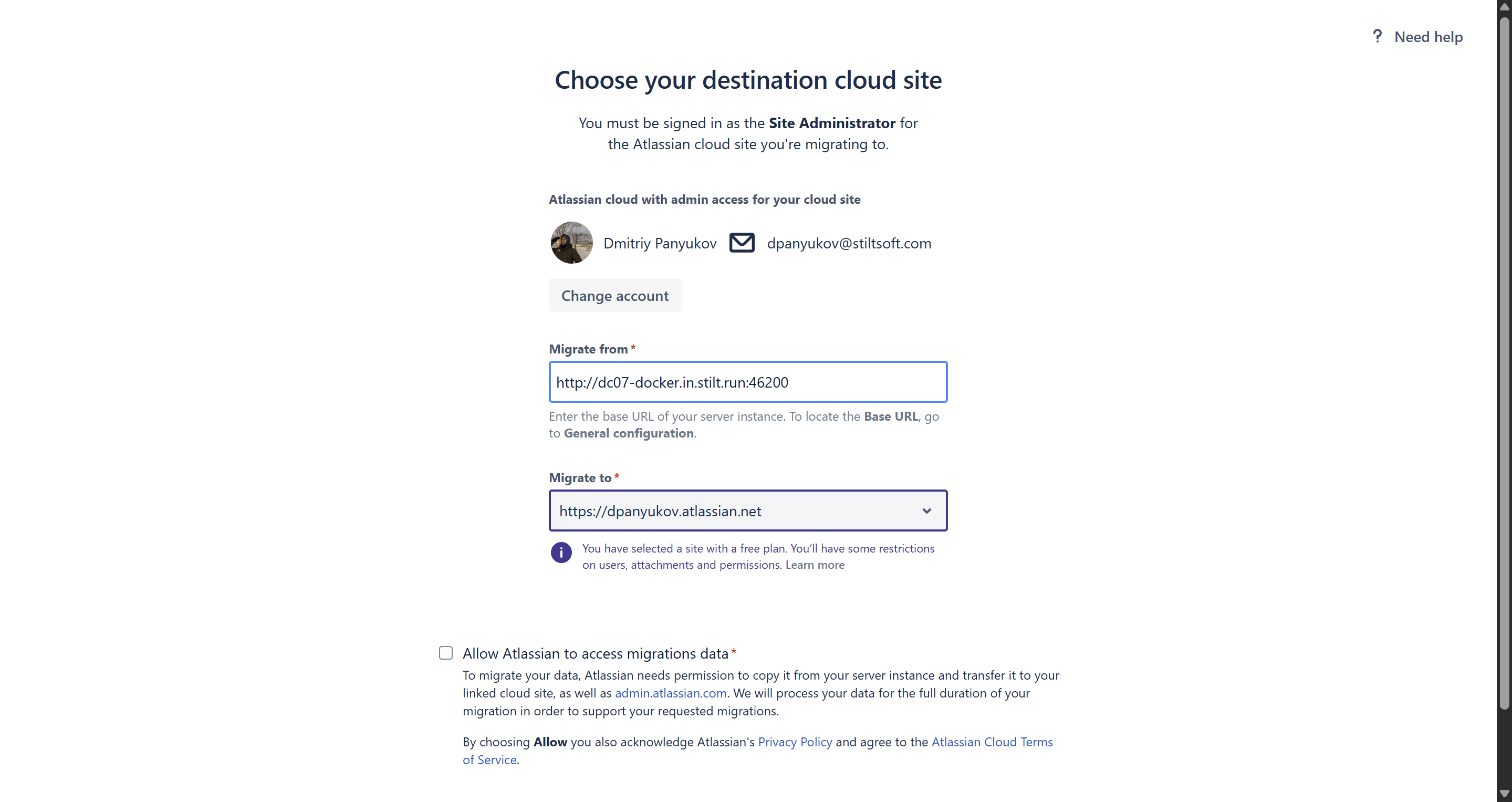 8. Tick the Allow Atlassian to access migrations data and click Confirm.