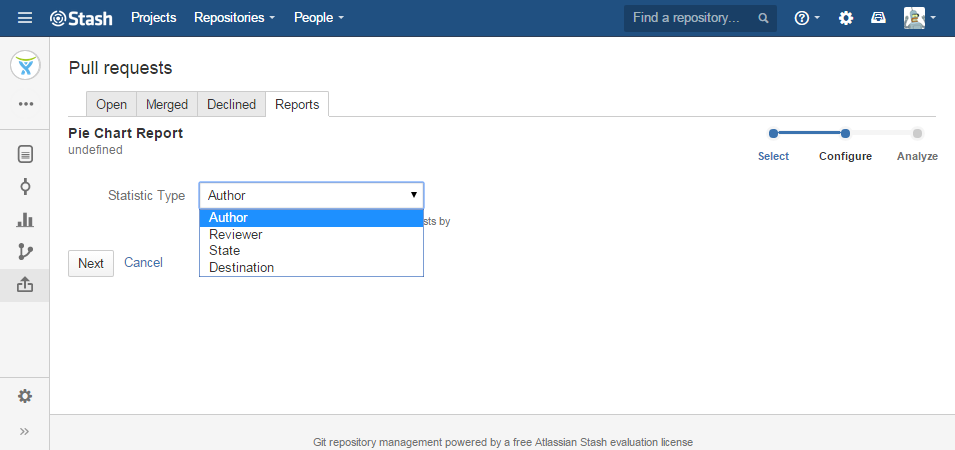 2. Choose Pull requests> Reports> Pie Chart Report.
