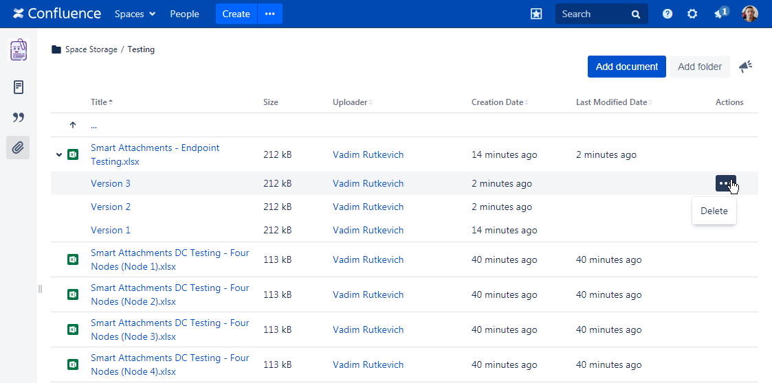 Smart Attachments for Confluence groups files having identical names into document revisions automatically.