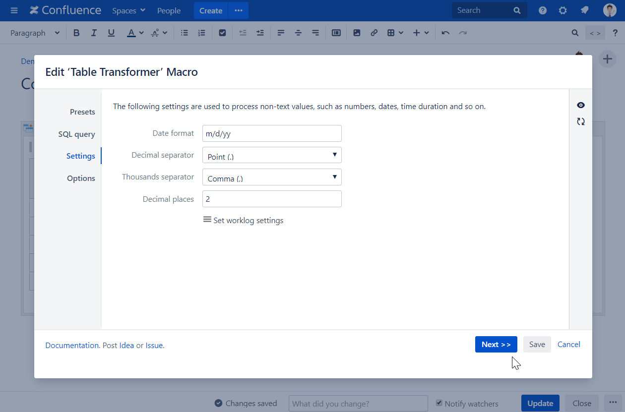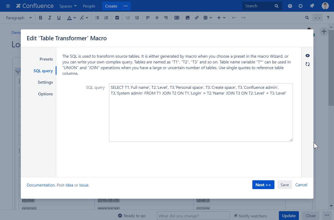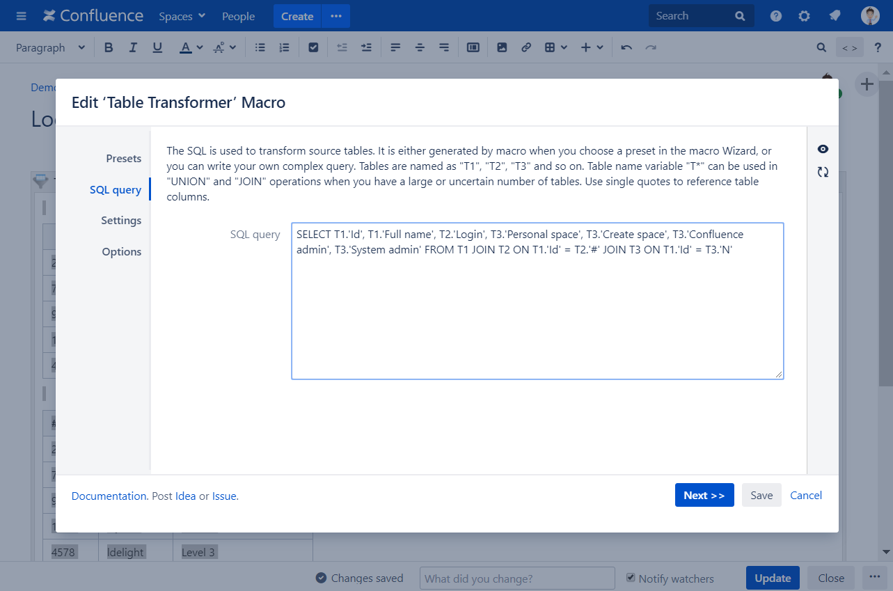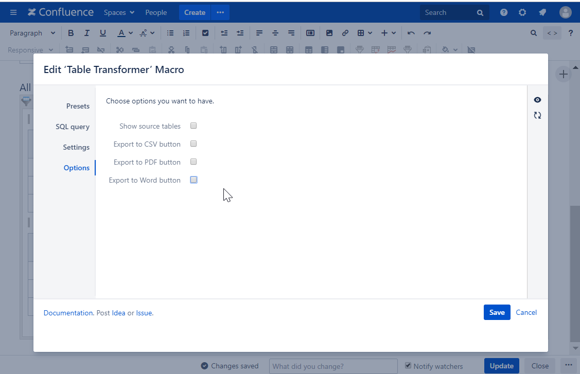 - Insert the Table Transformer macro and paste the tables or the macros outputting tables within the macro body.