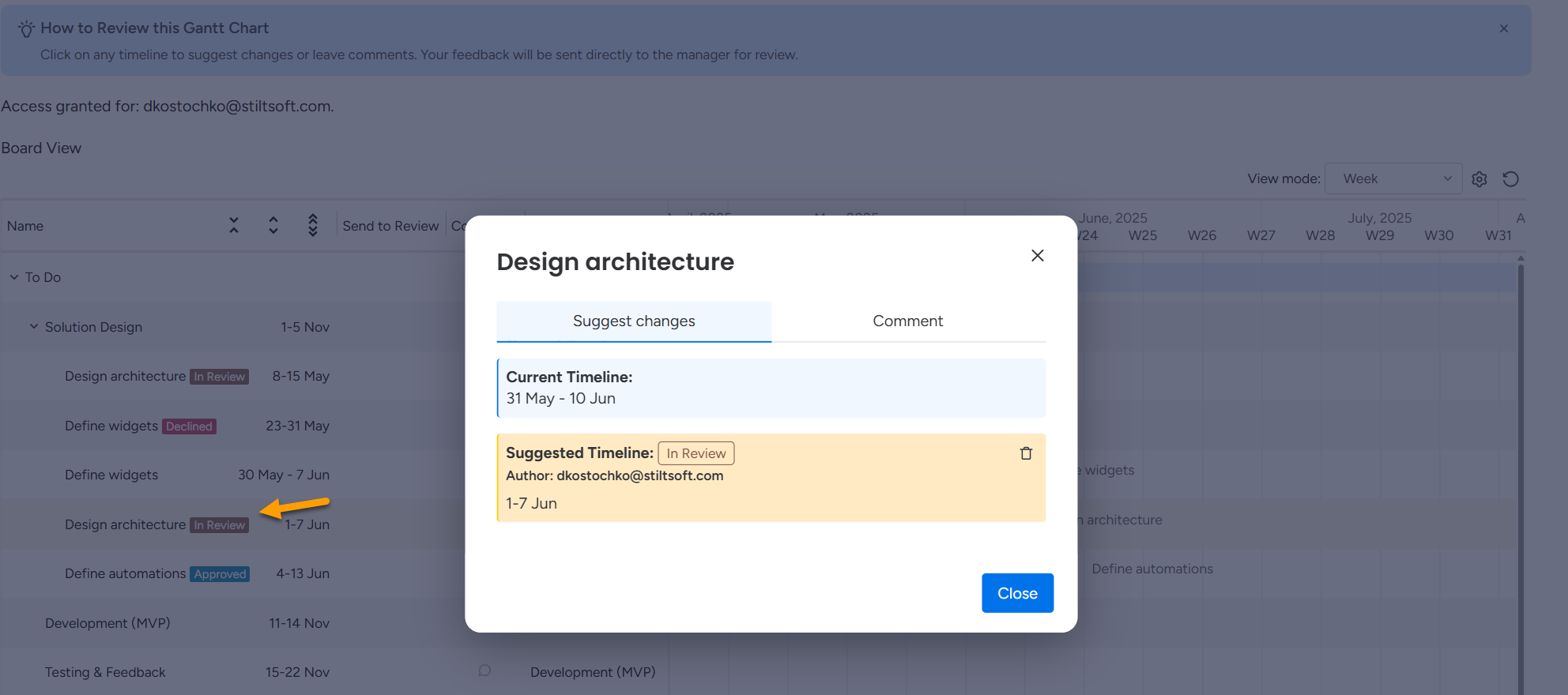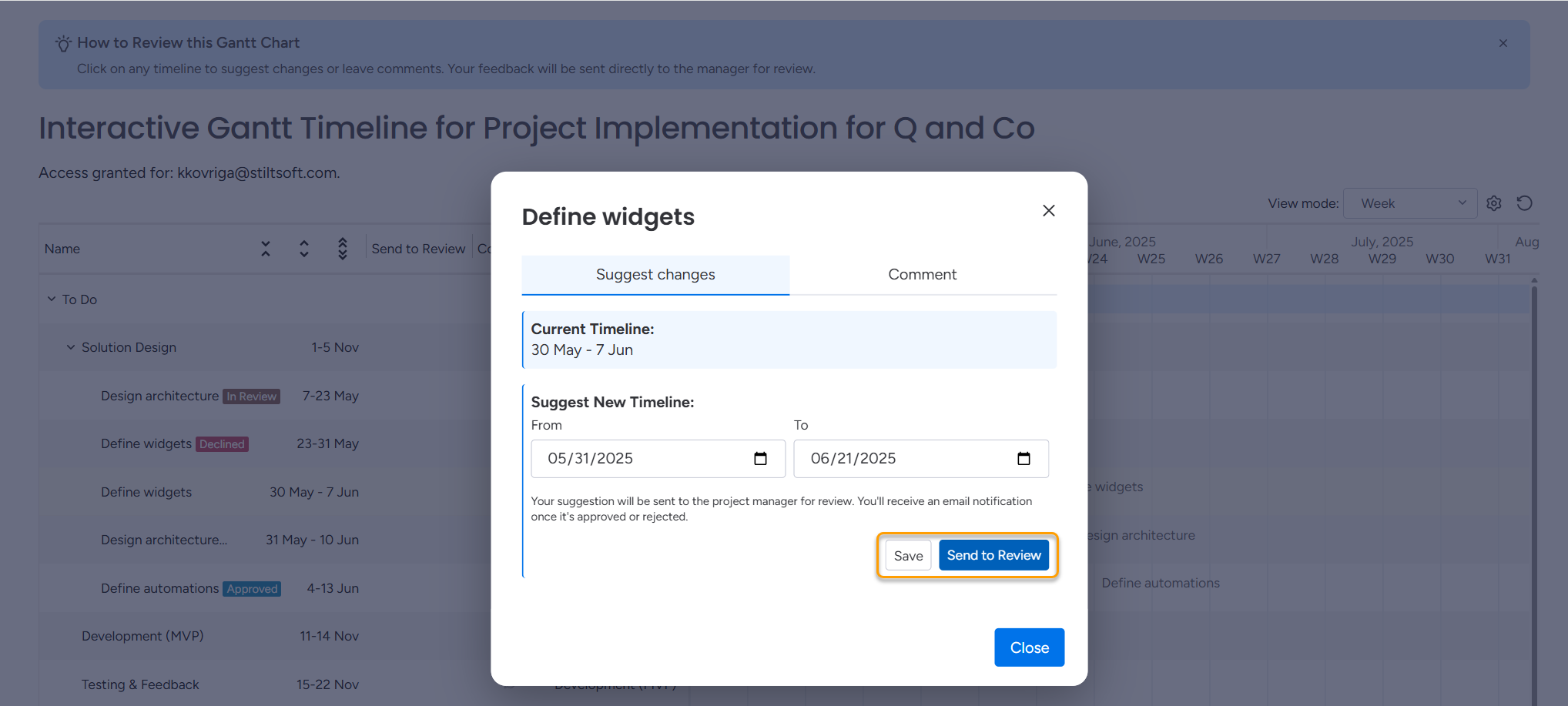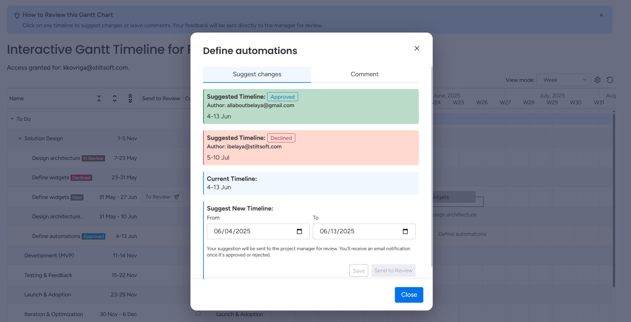 When the project manager receives suggestions, they can approve or decline them.