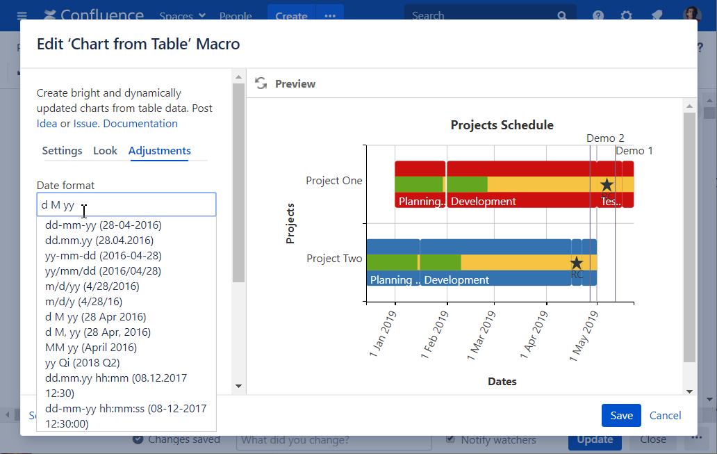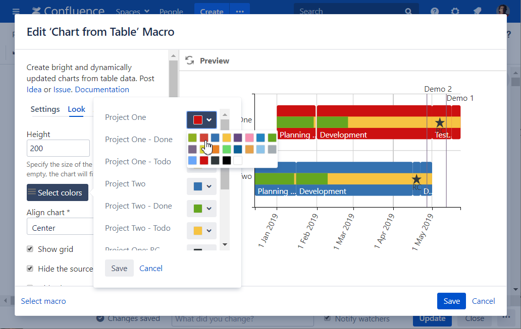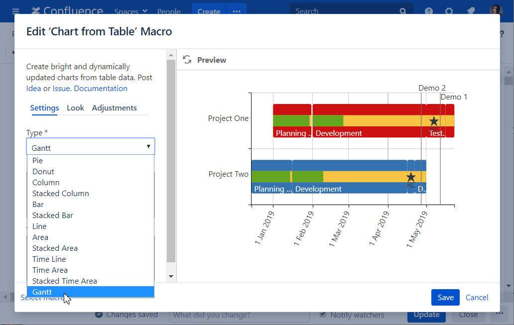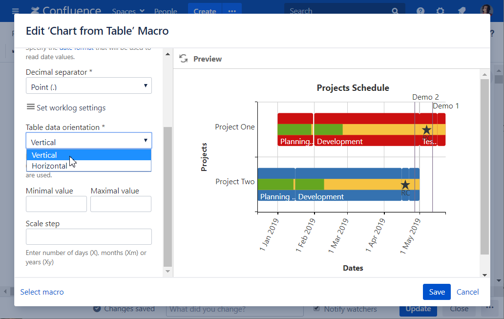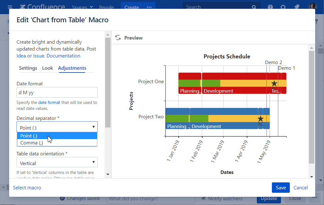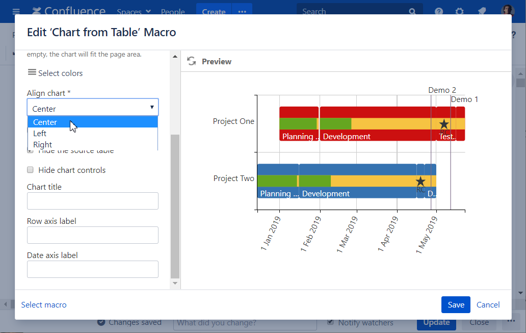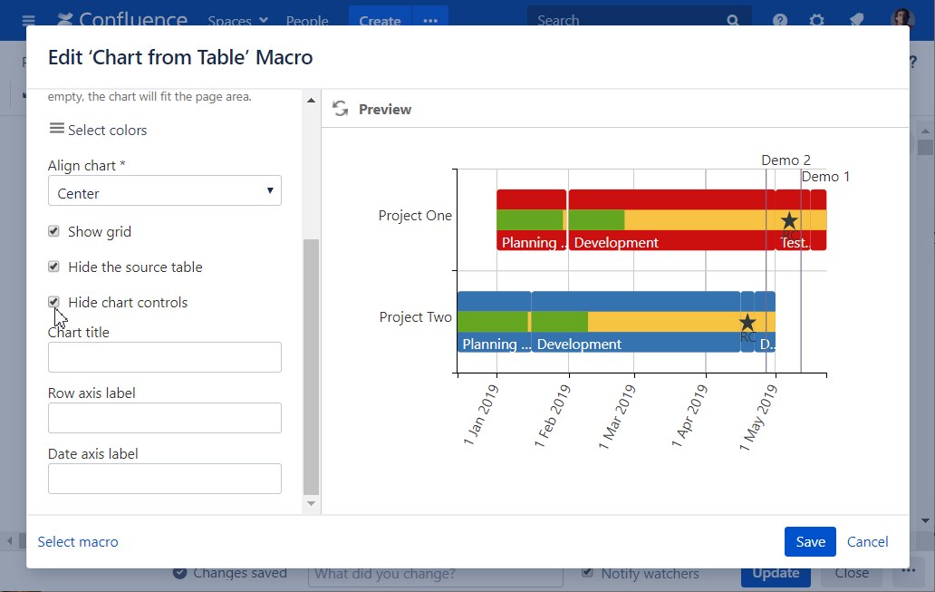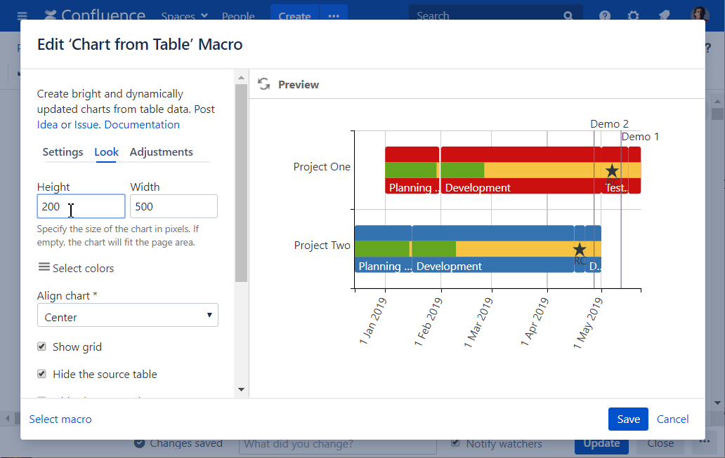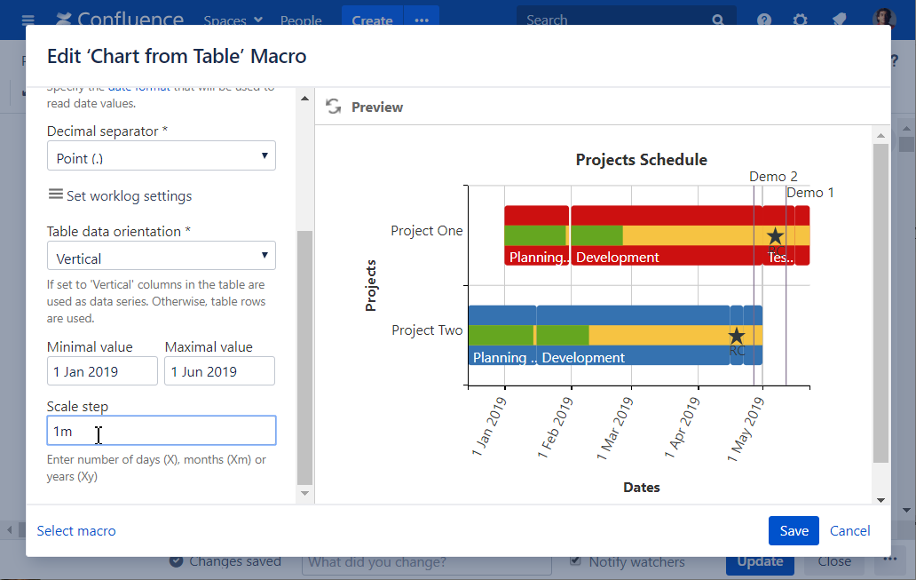 - Insert the Chart from Table macro and paste the table within the macro body.