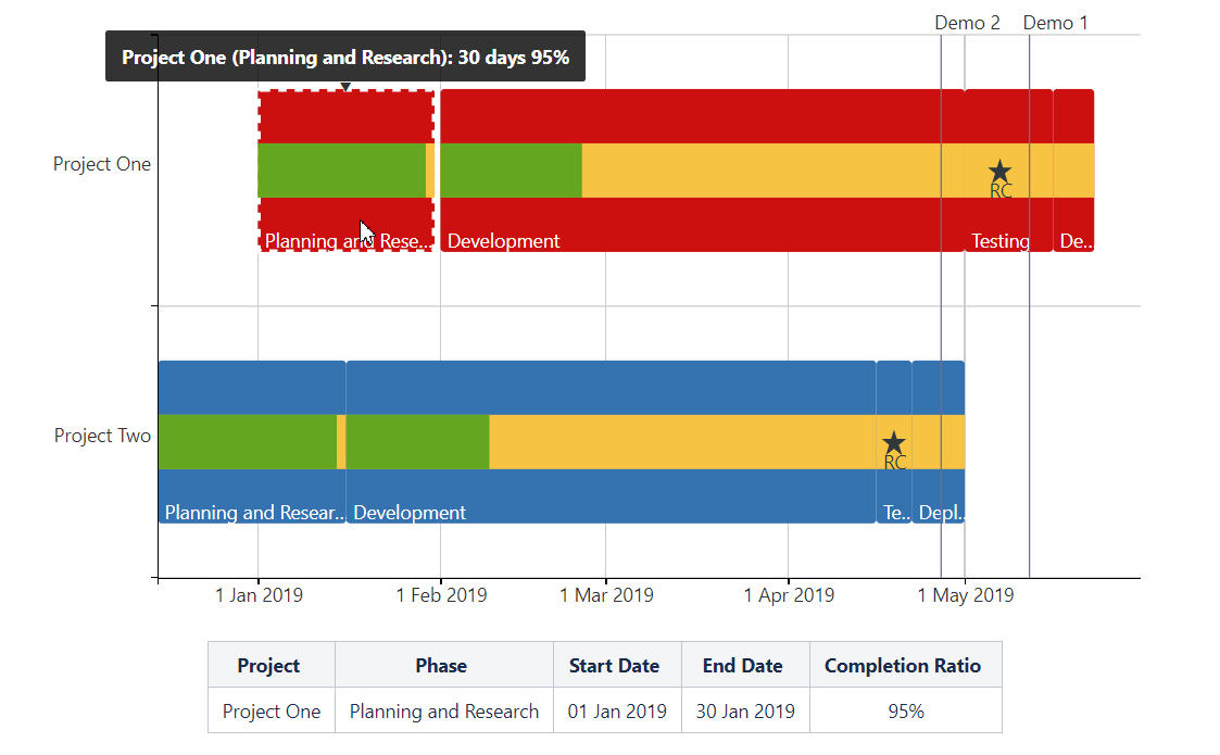 Project | Phase | Start Date | End Date | Completion Ratio |
