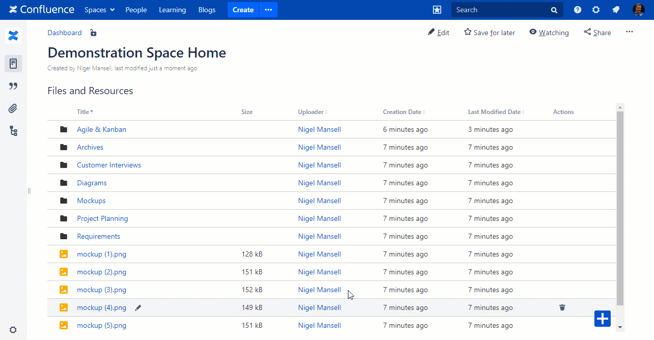 Now you can perform basic operations on documents and folders right on your Confluence page without a necessity to open the space storage.