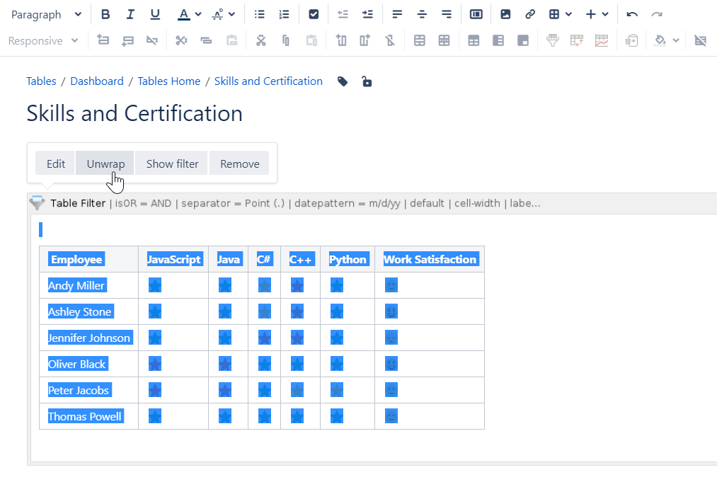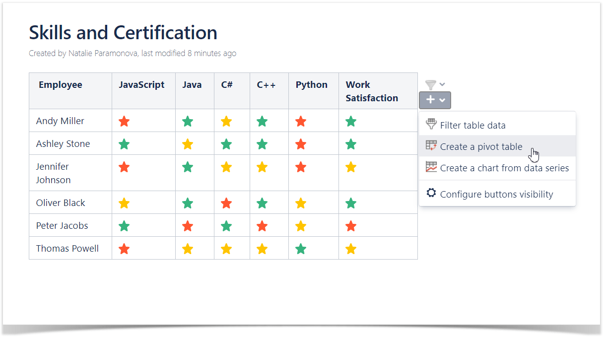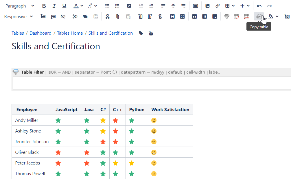 - Paste the table into the Table Filter / Pivot Table / Chart from Table macro on the same or on a new page.