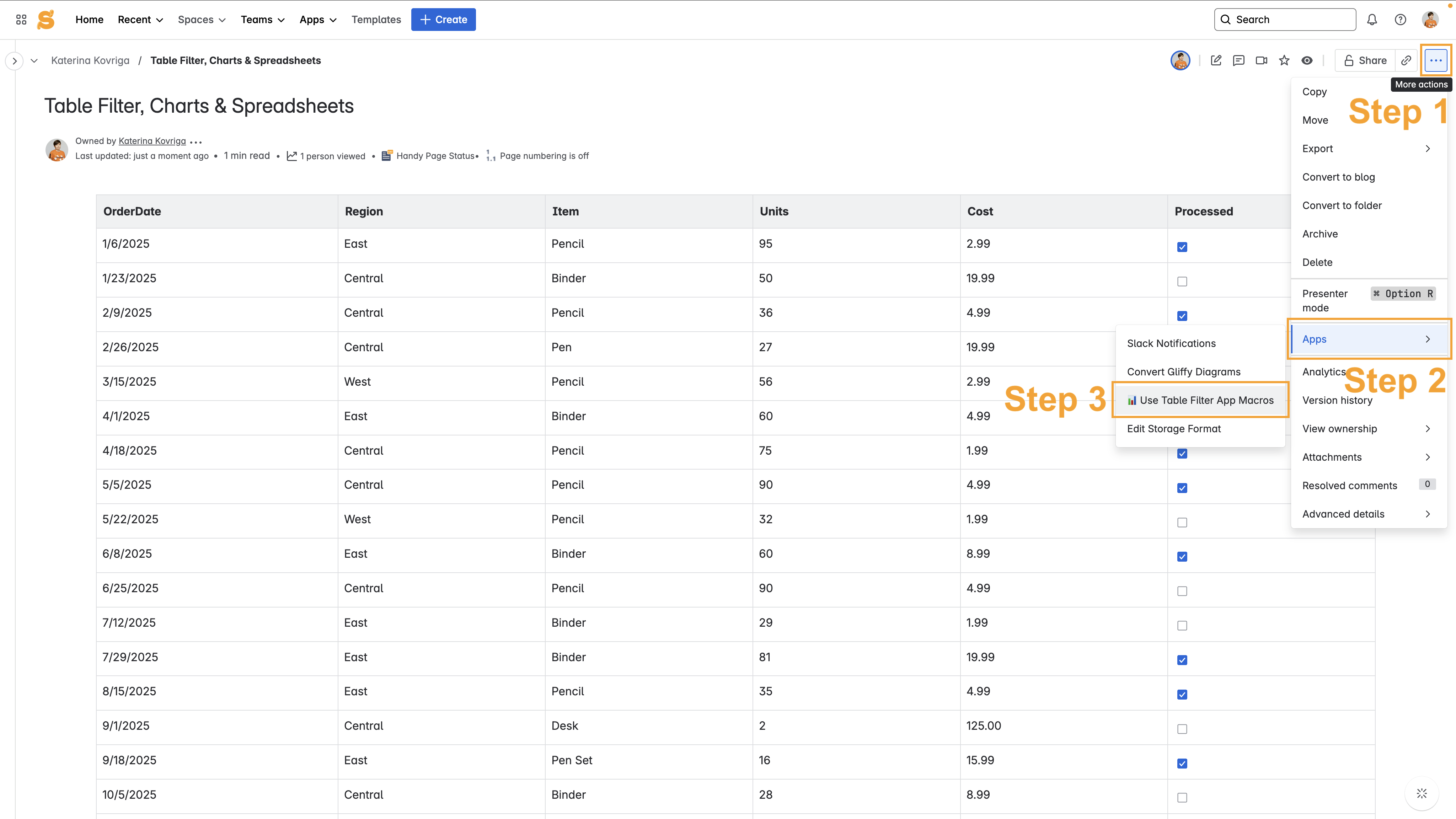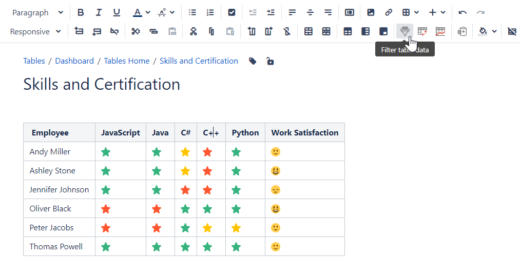For example, choose the Table Filter macro and start filtering data in table headers.