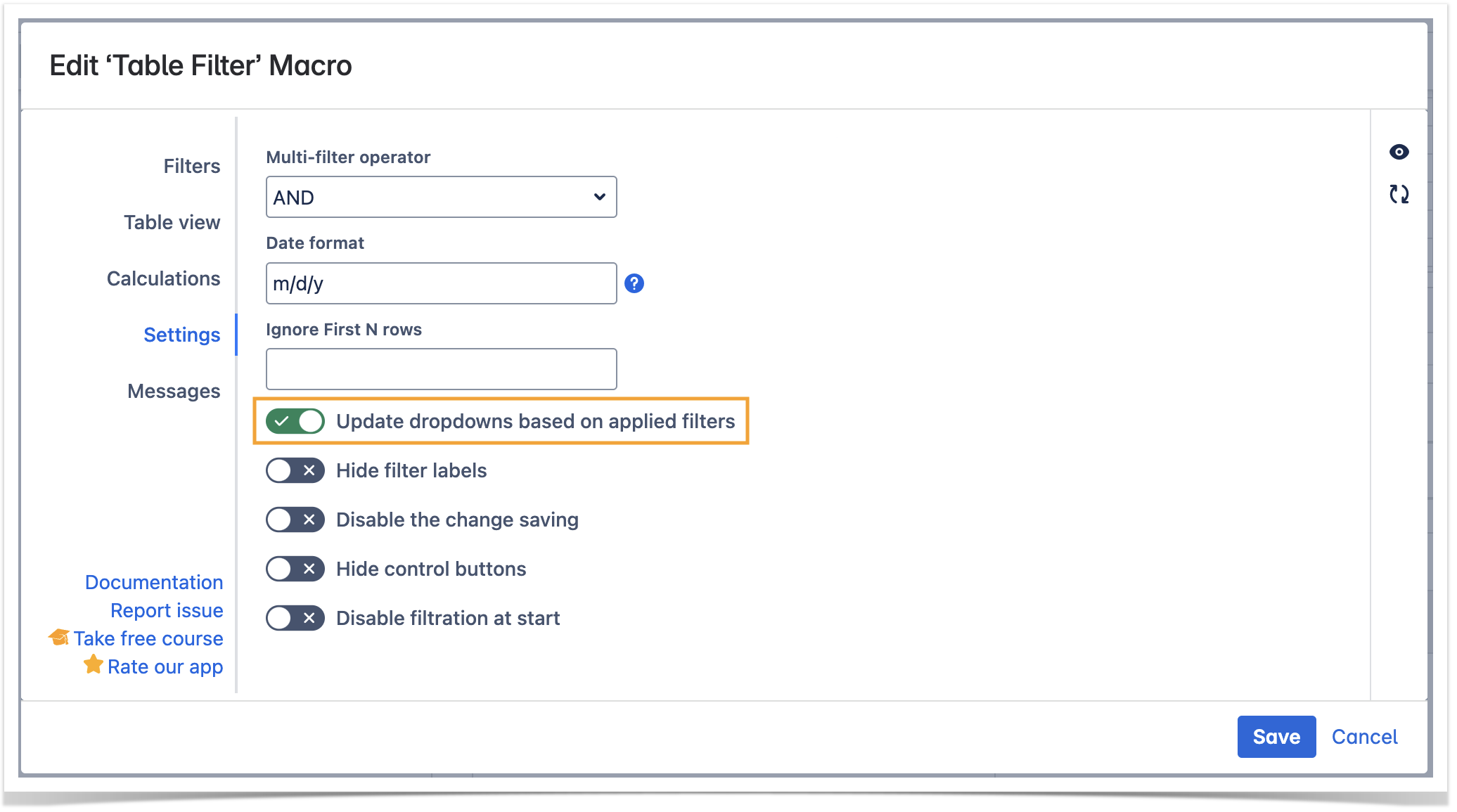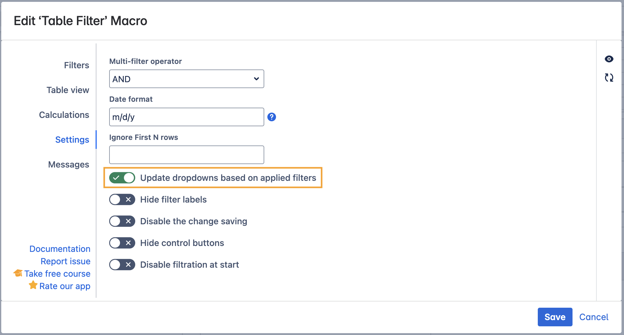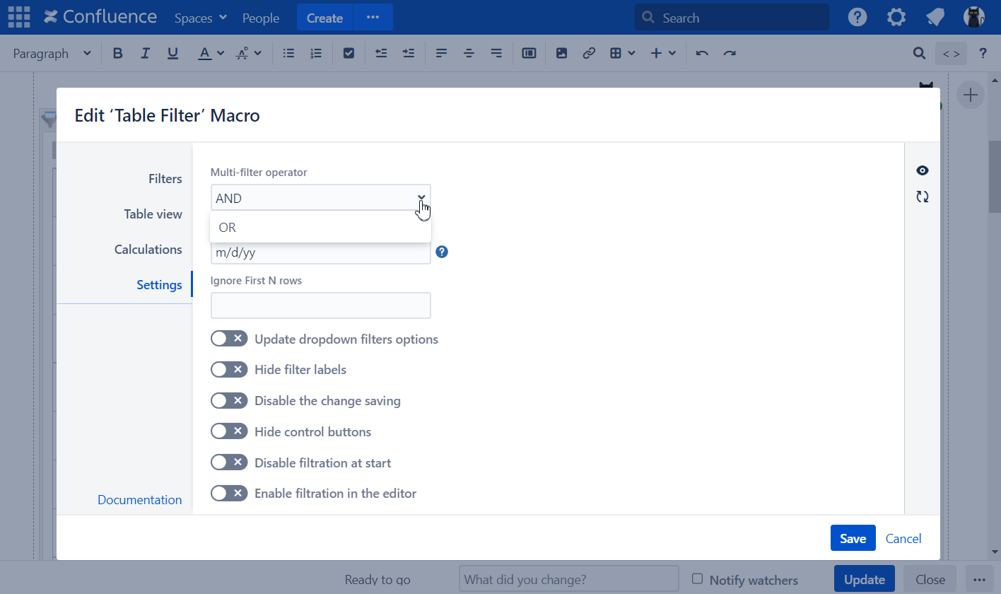 For Data Center versions older than 13.0.4, this function was called Update dropdown filters options.Save the macro and the page.