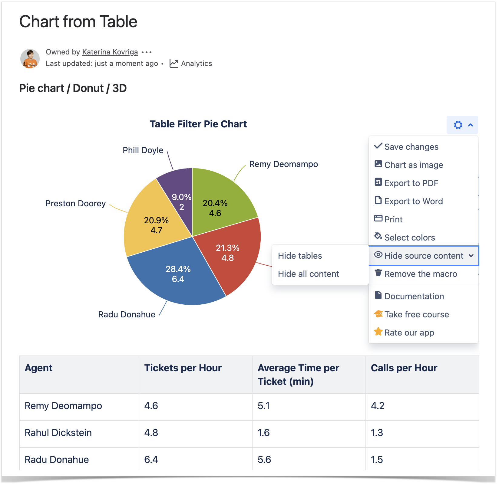 2. Click the cogwheel icon, select the Show source content, Hide source content (Hide tables, Hide all content) option.