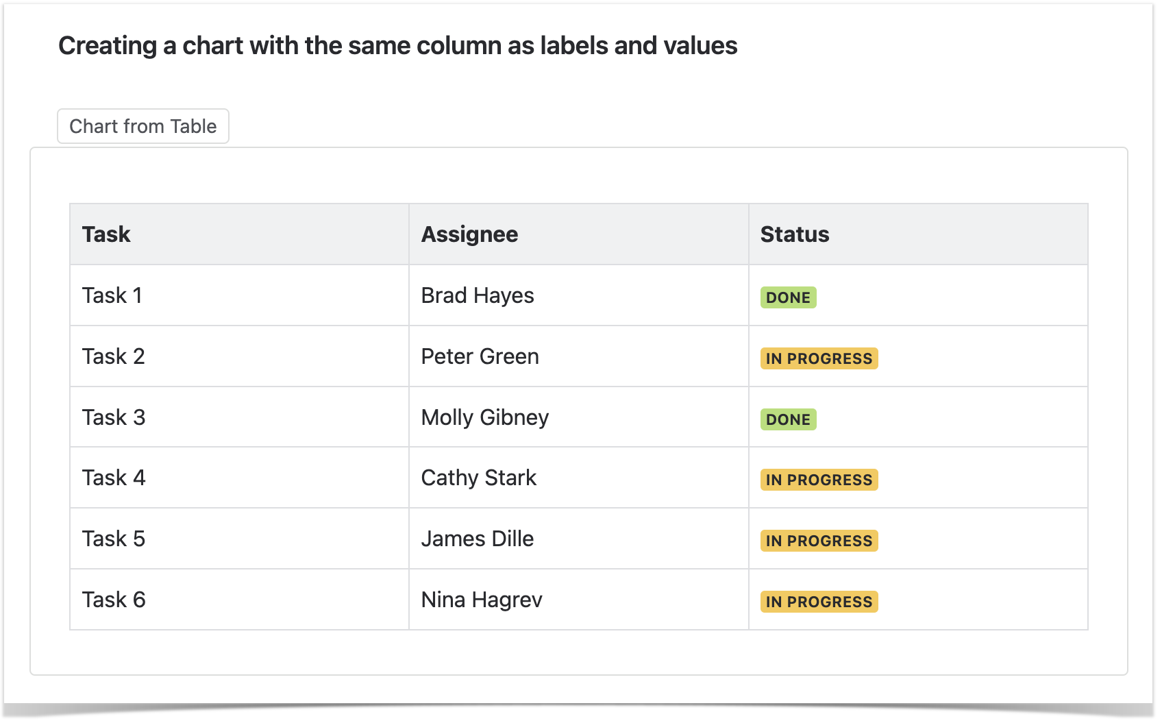 Create a chart with the same column as labels and values (an example of a use case)