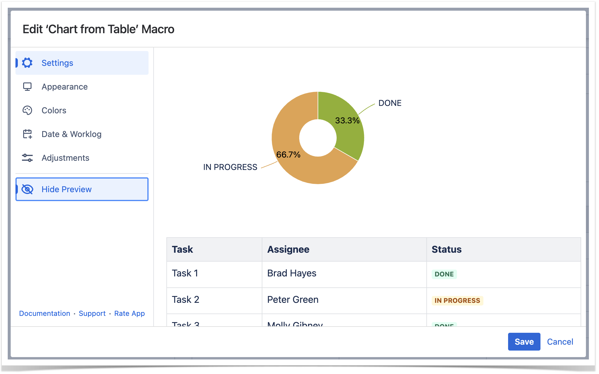 2. Insert the Chart from Table macro and paste the table within the macro body.