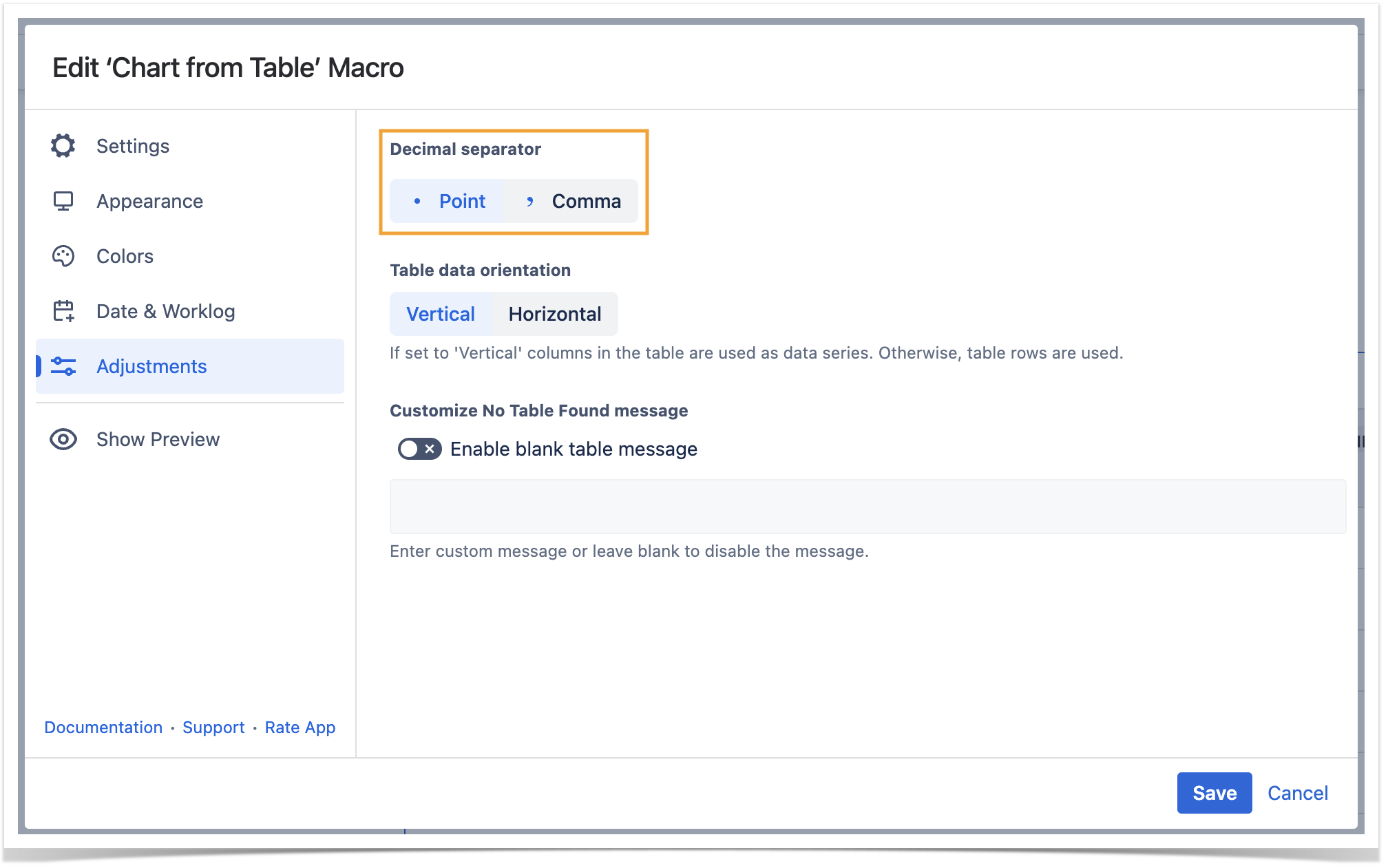 4. Locate the Table data orientation option.