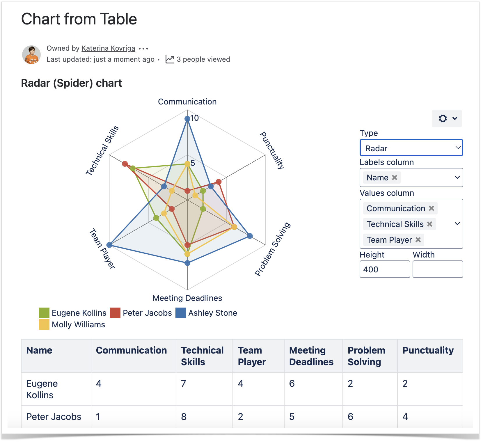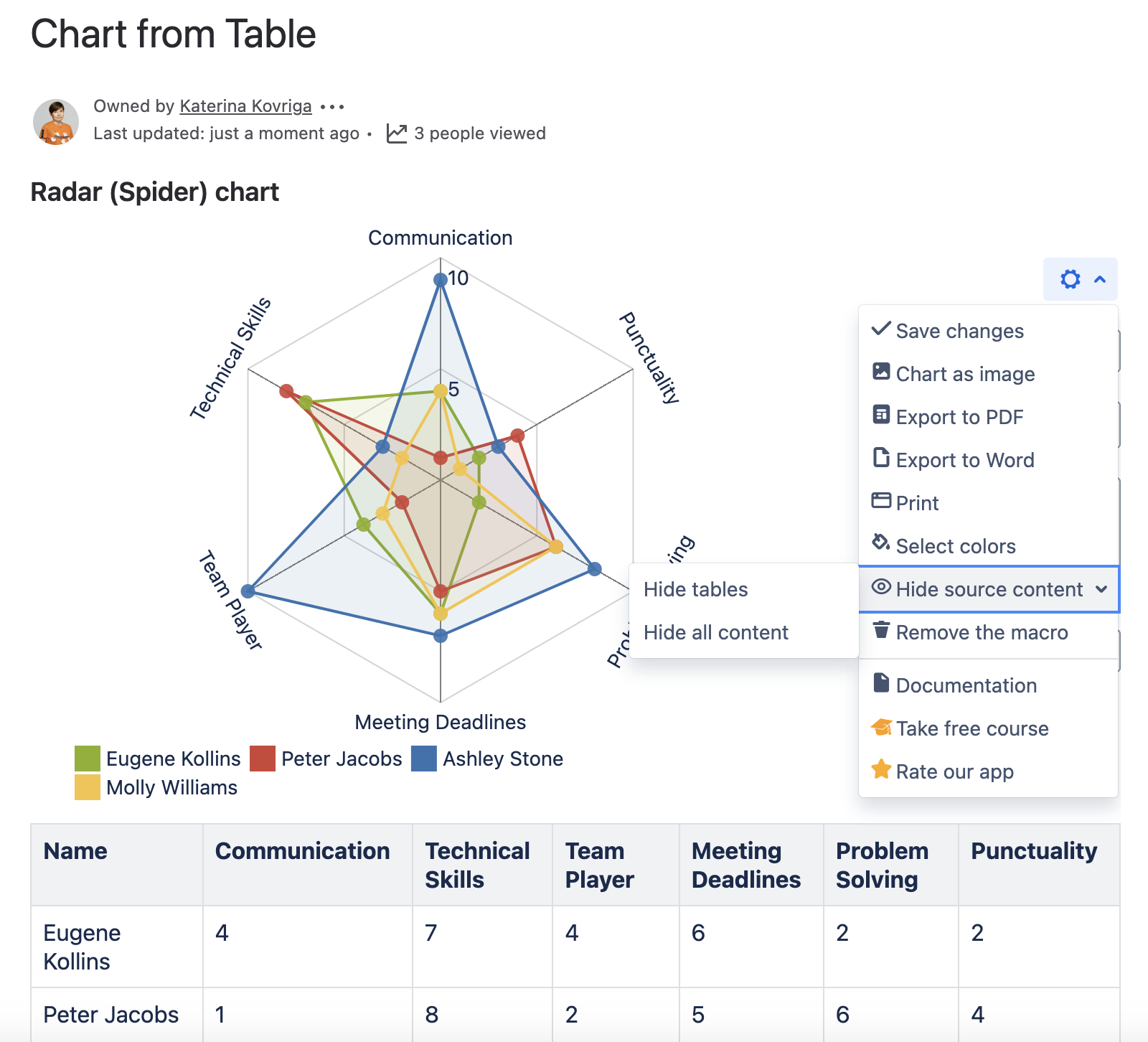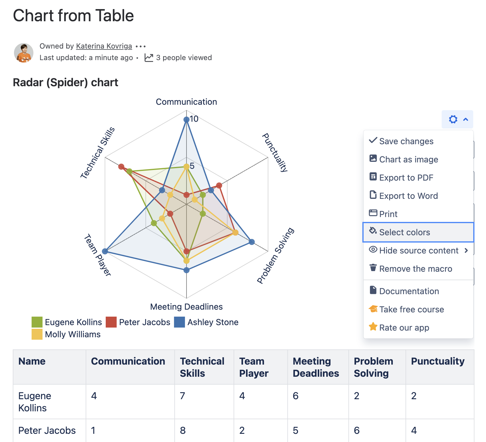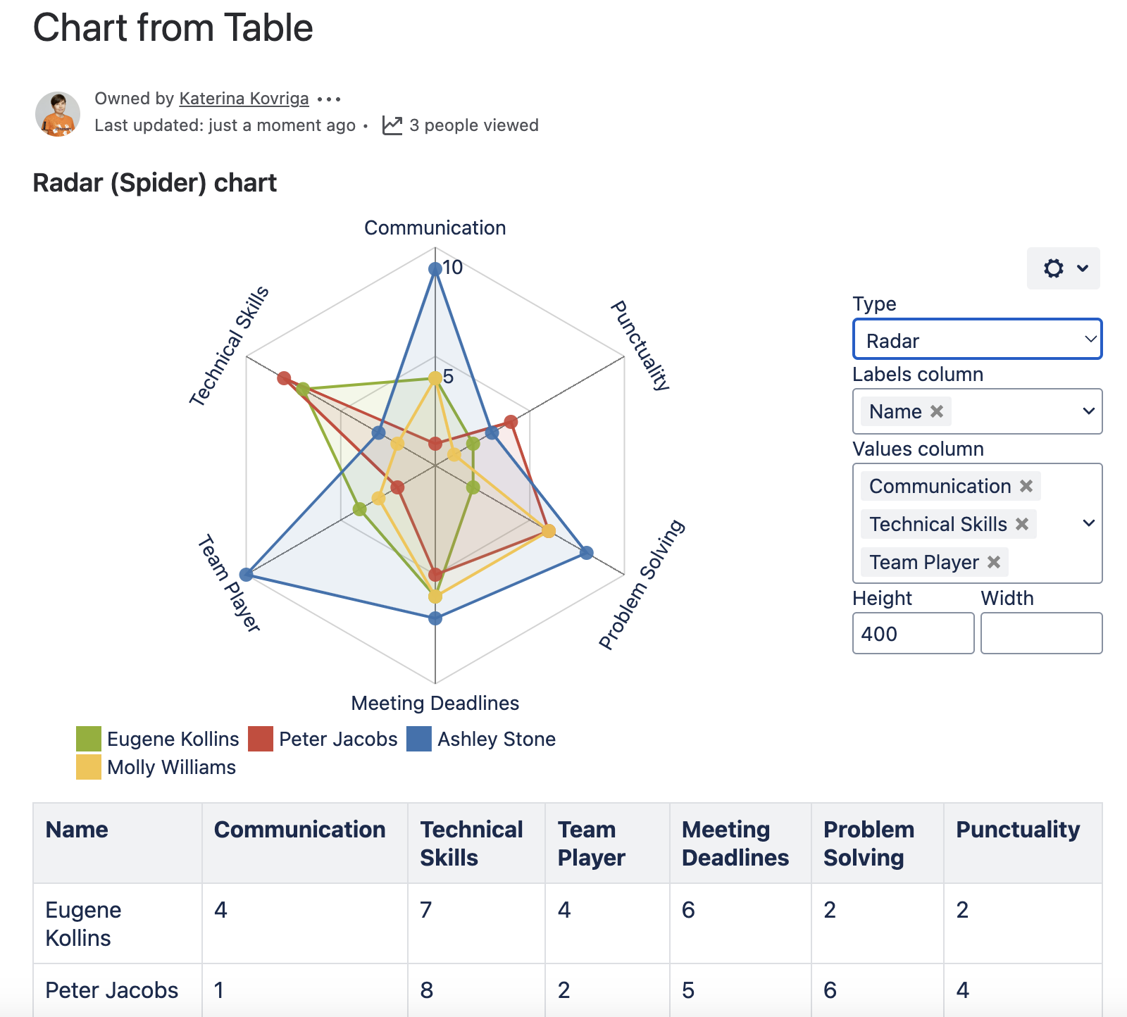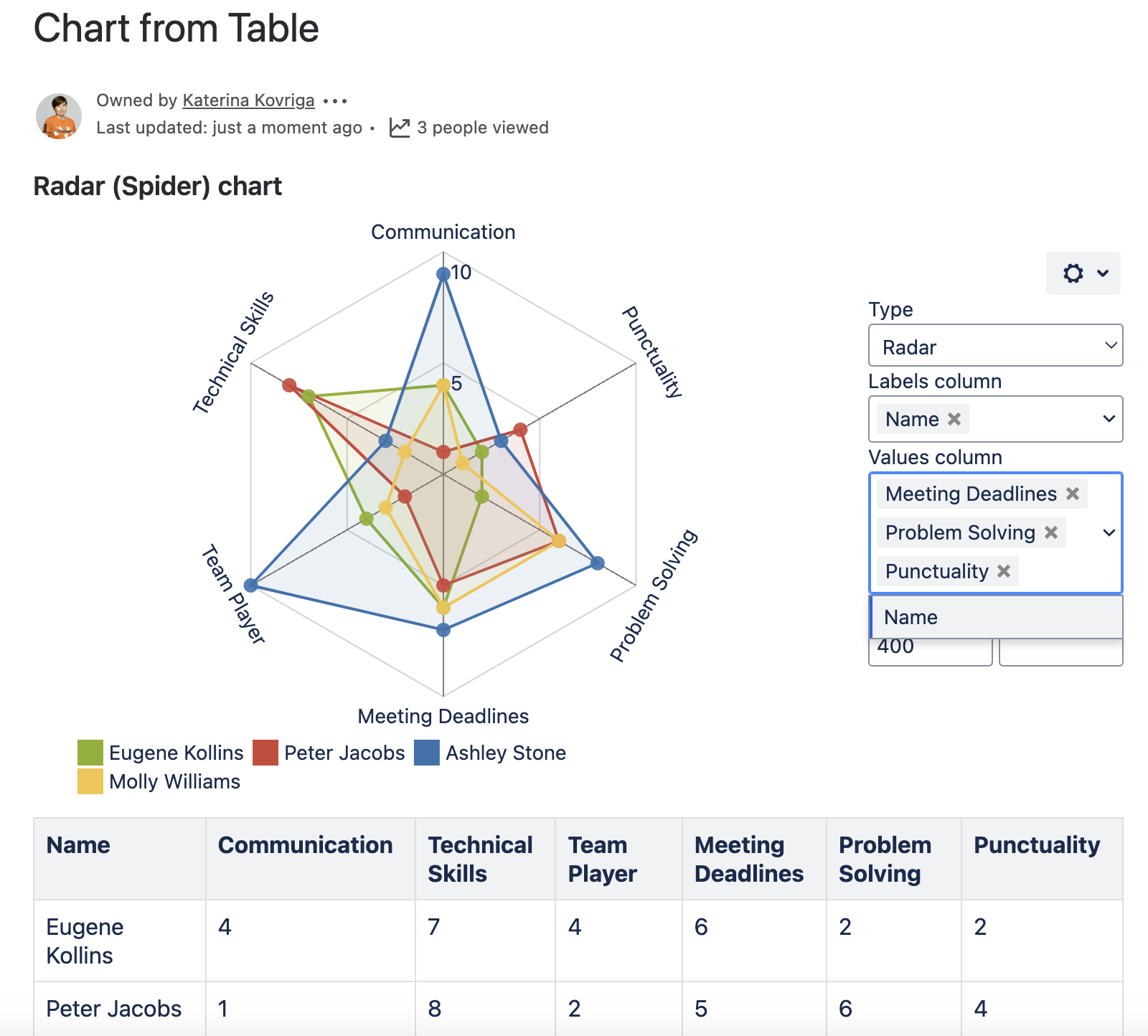 - Insert the Chart from Table macro and paste the table within the macro body.