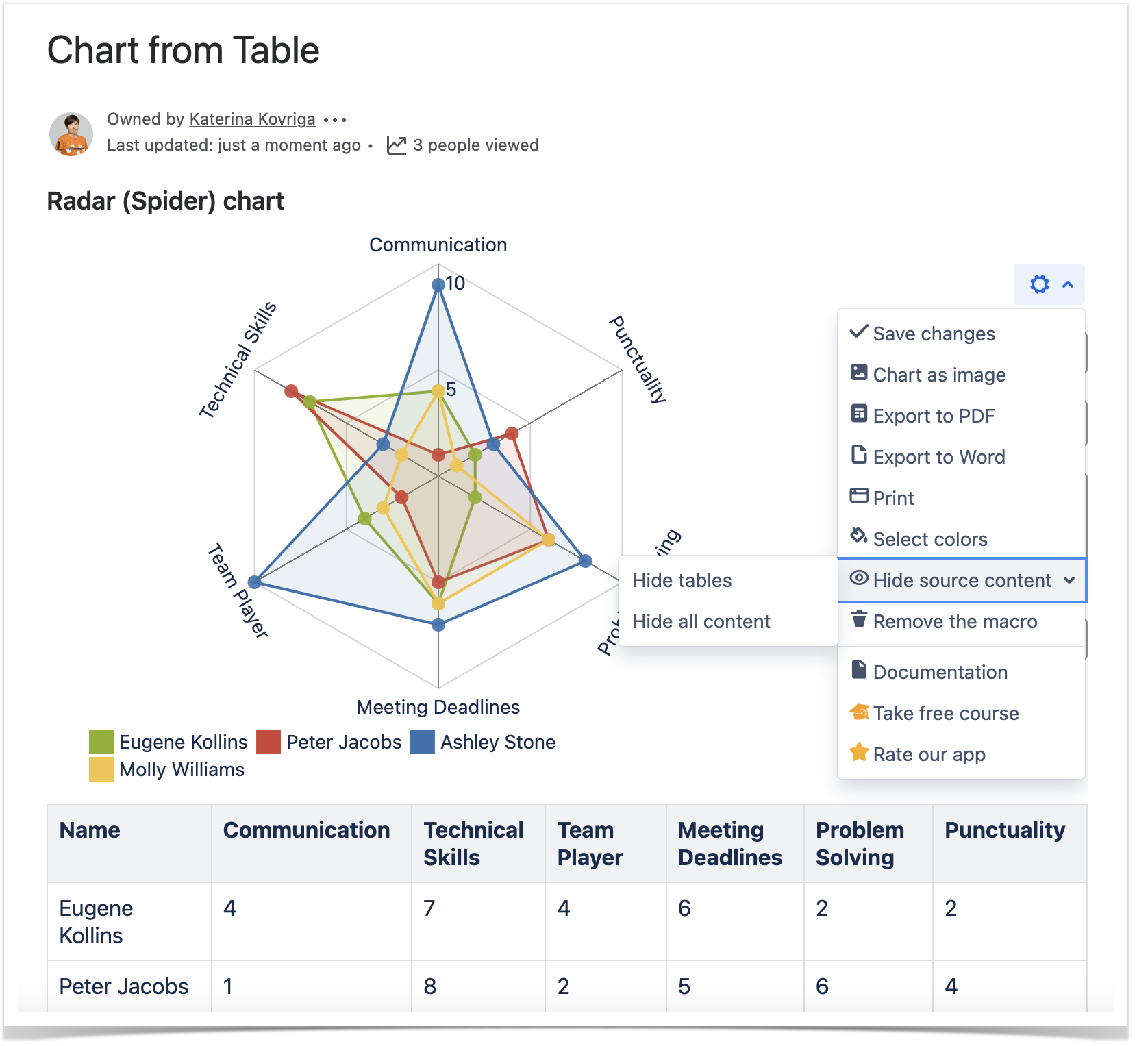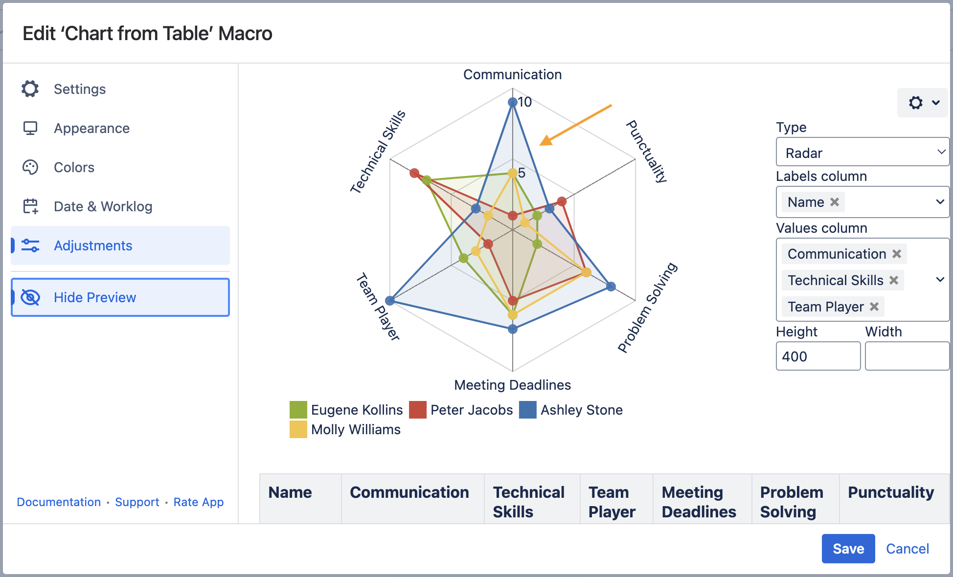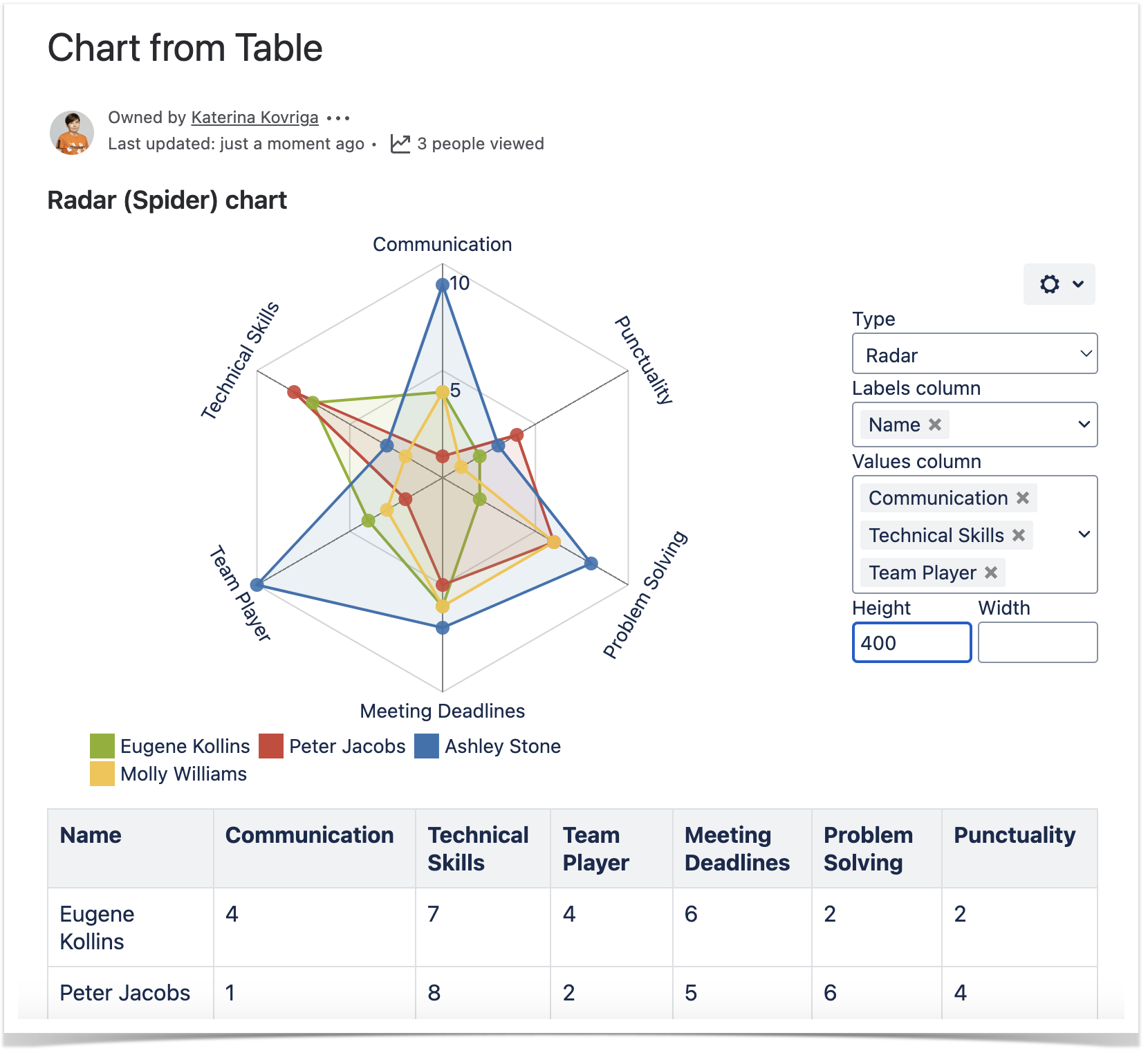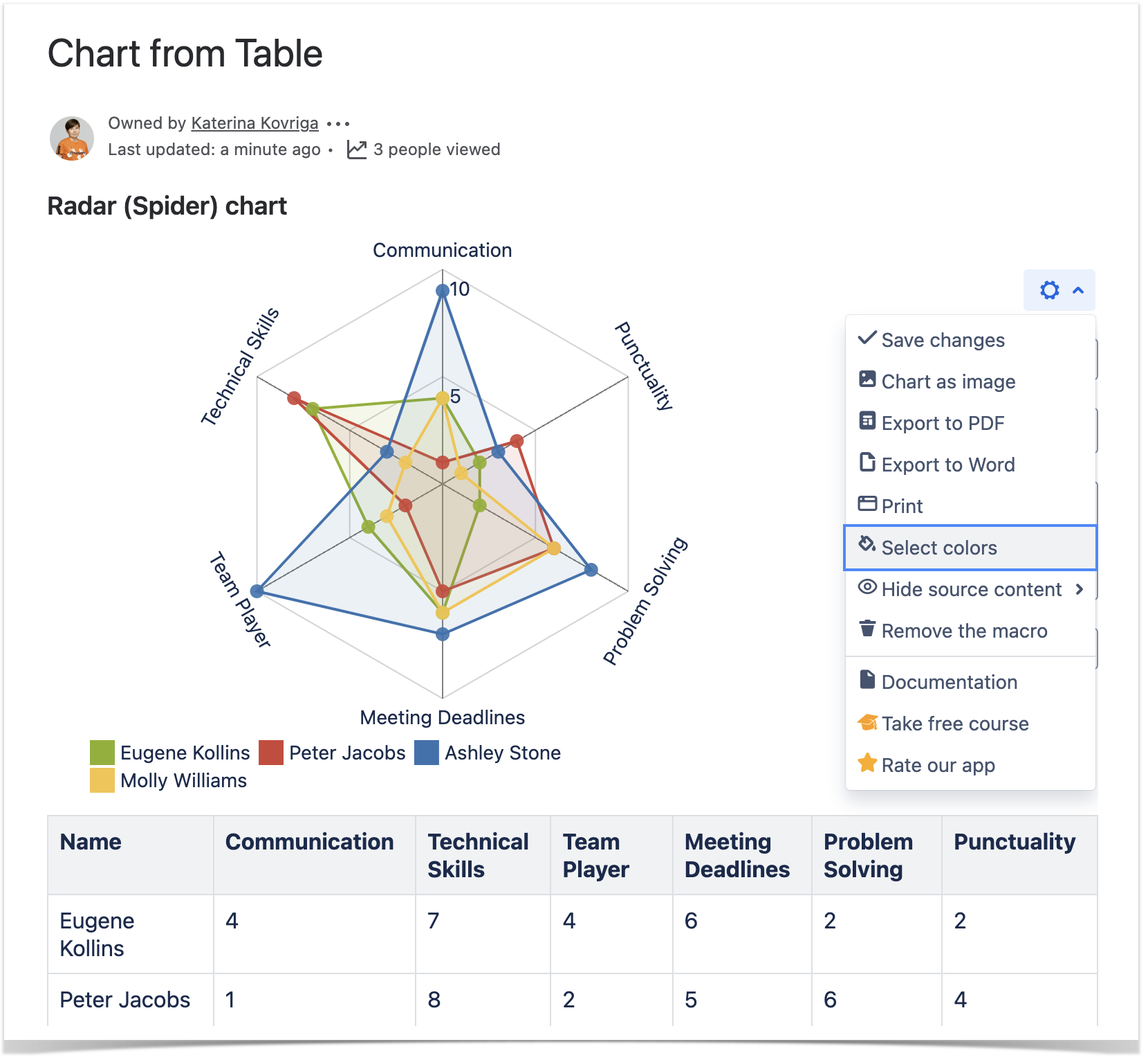 - Insert the Chart from Table macro and paste the table within the macro body.