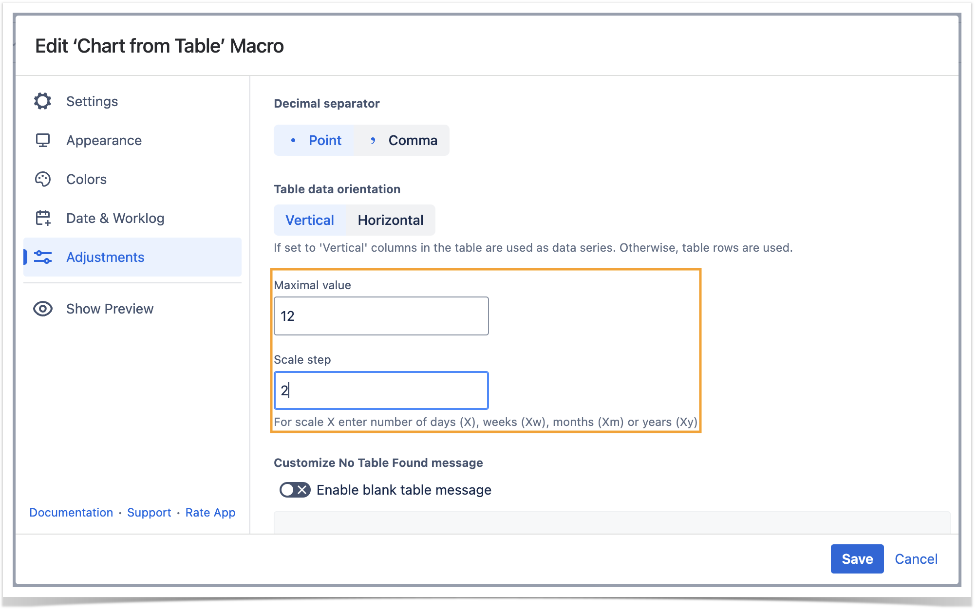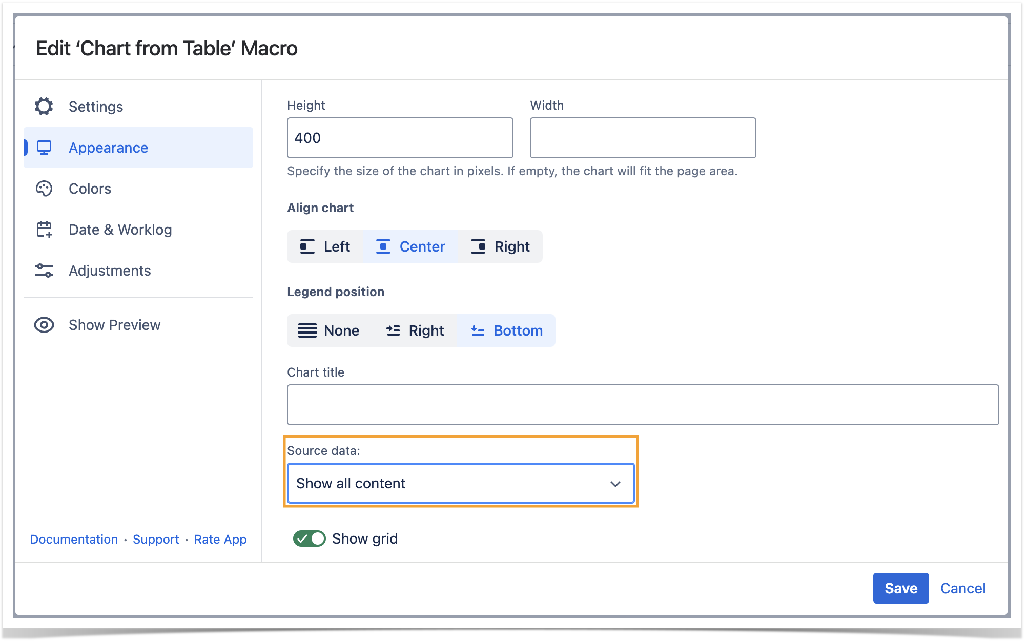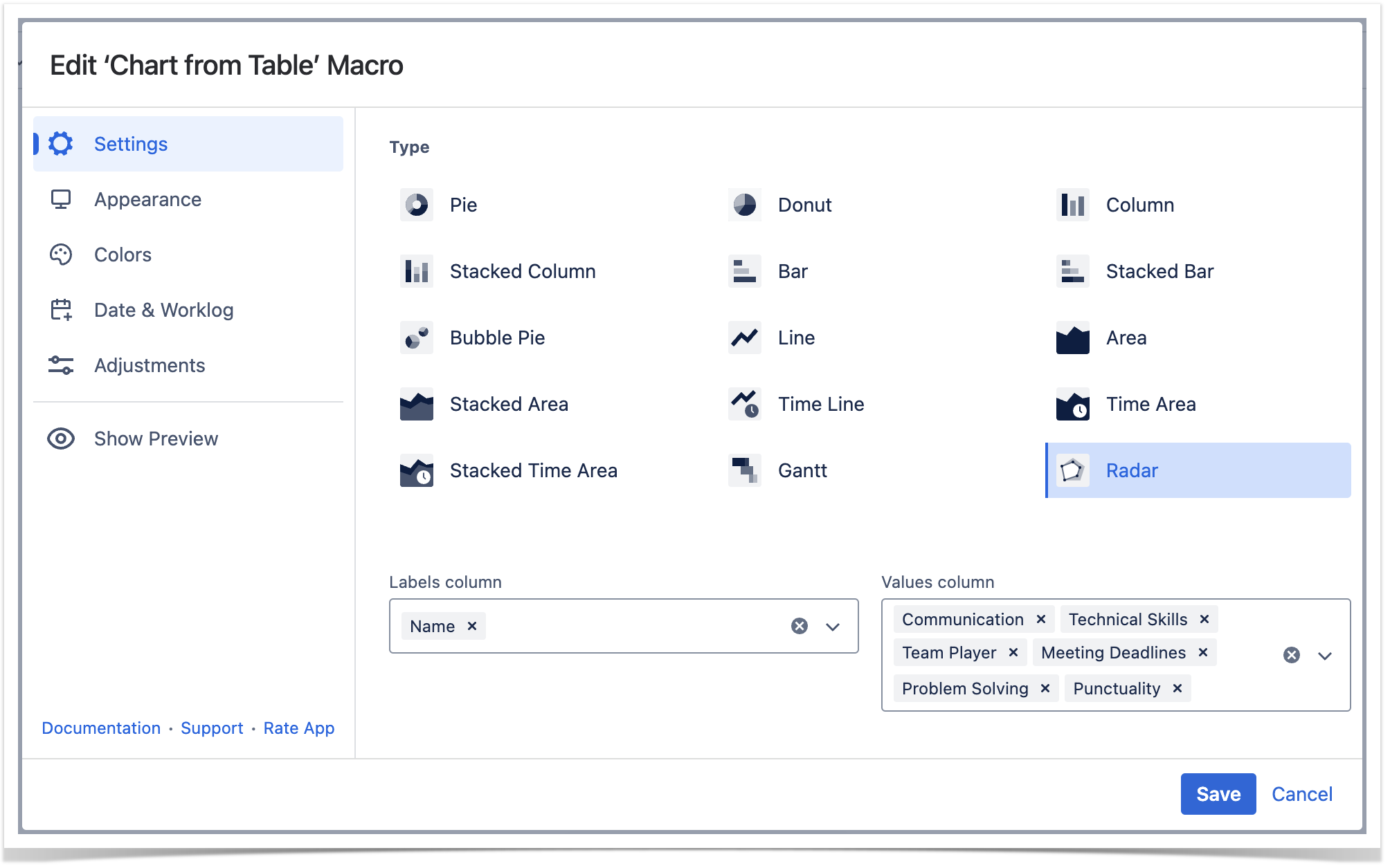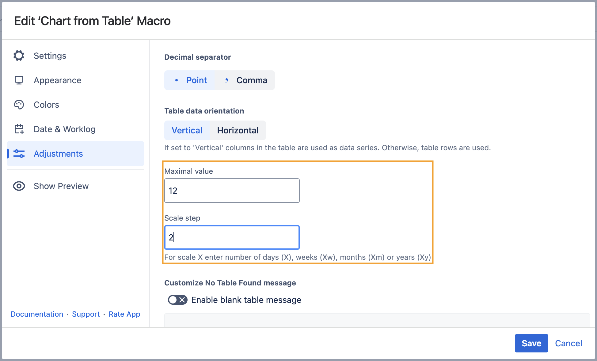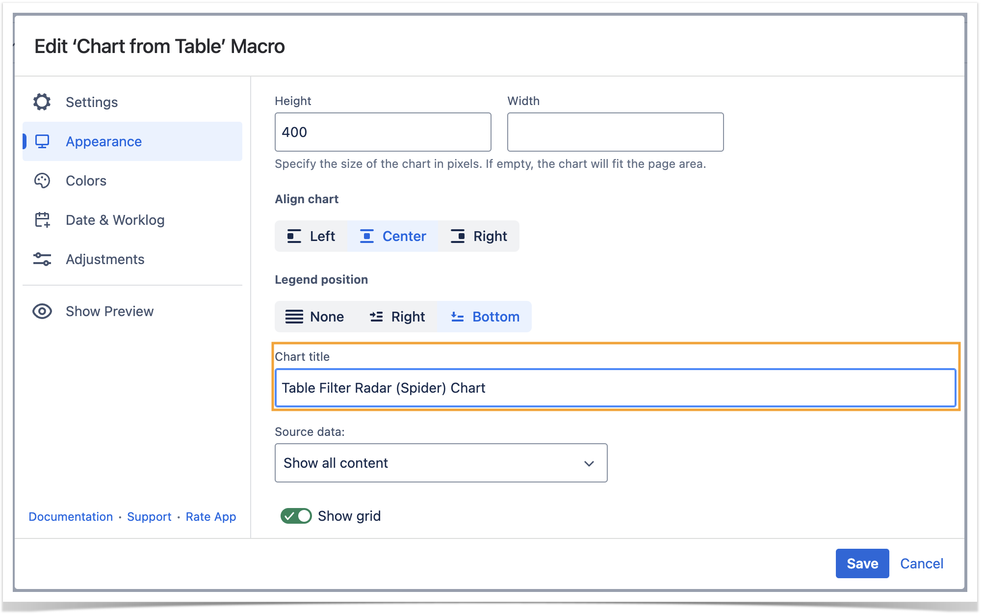 - Insert the Chart from Table macro and paste the table within the macro body.