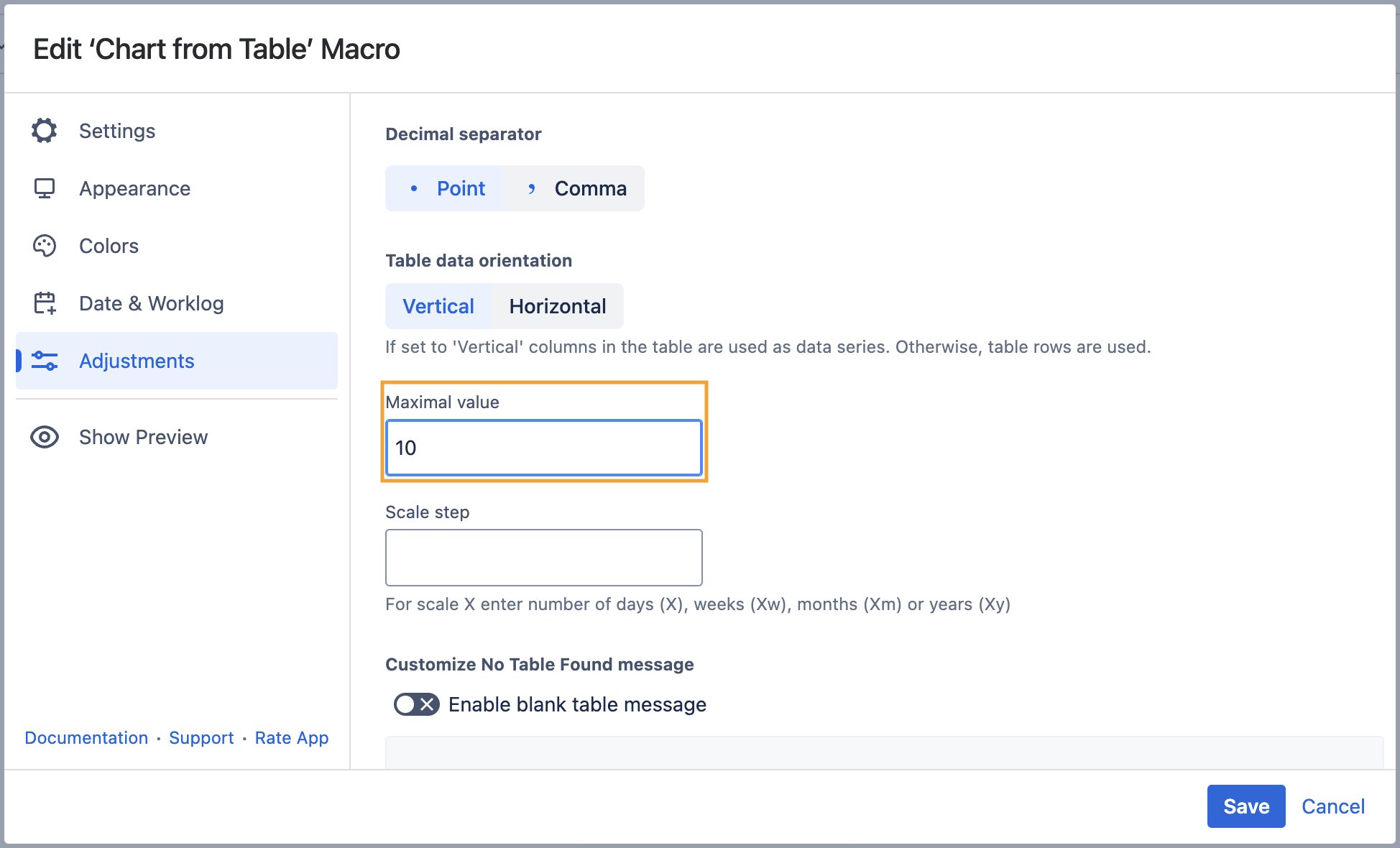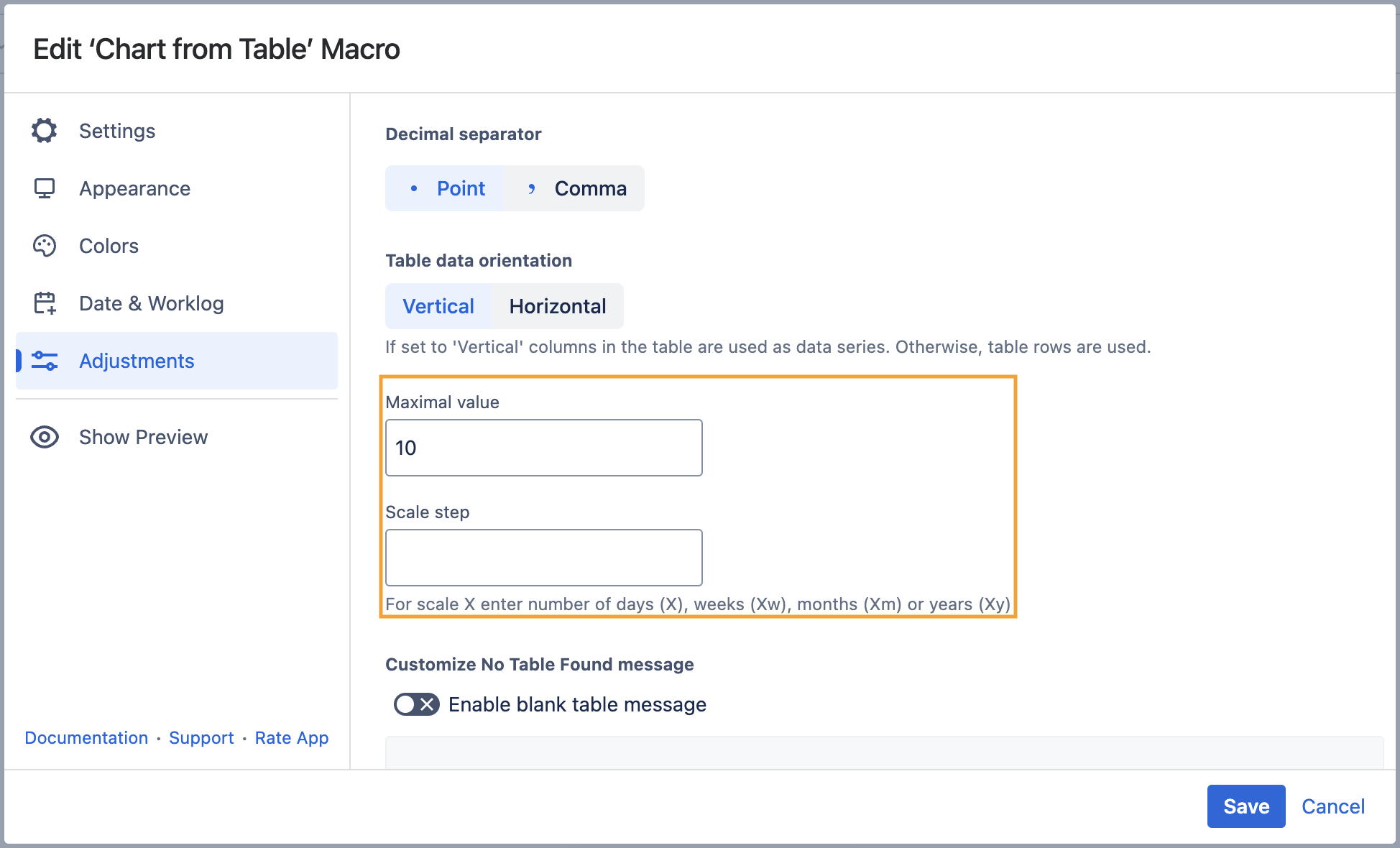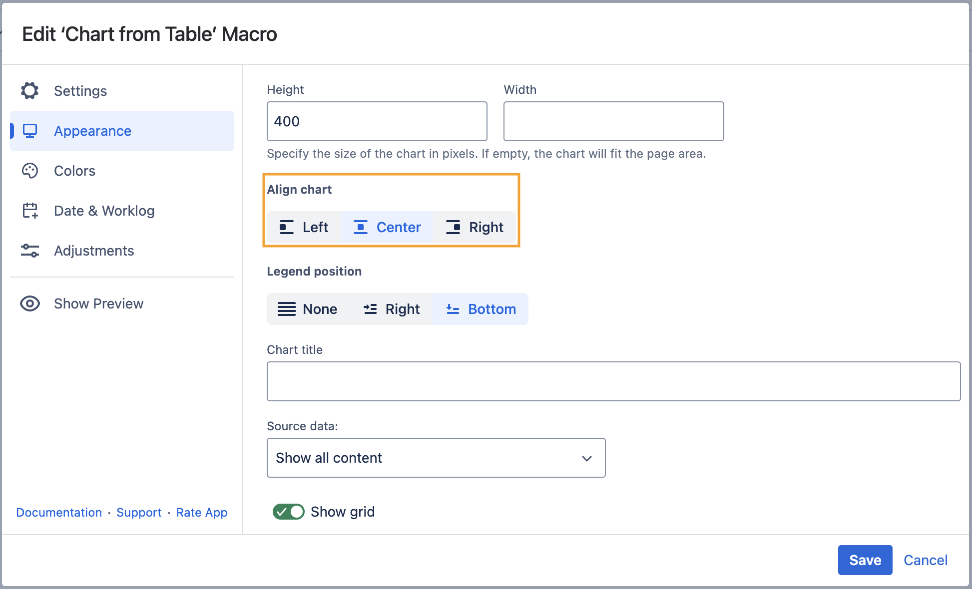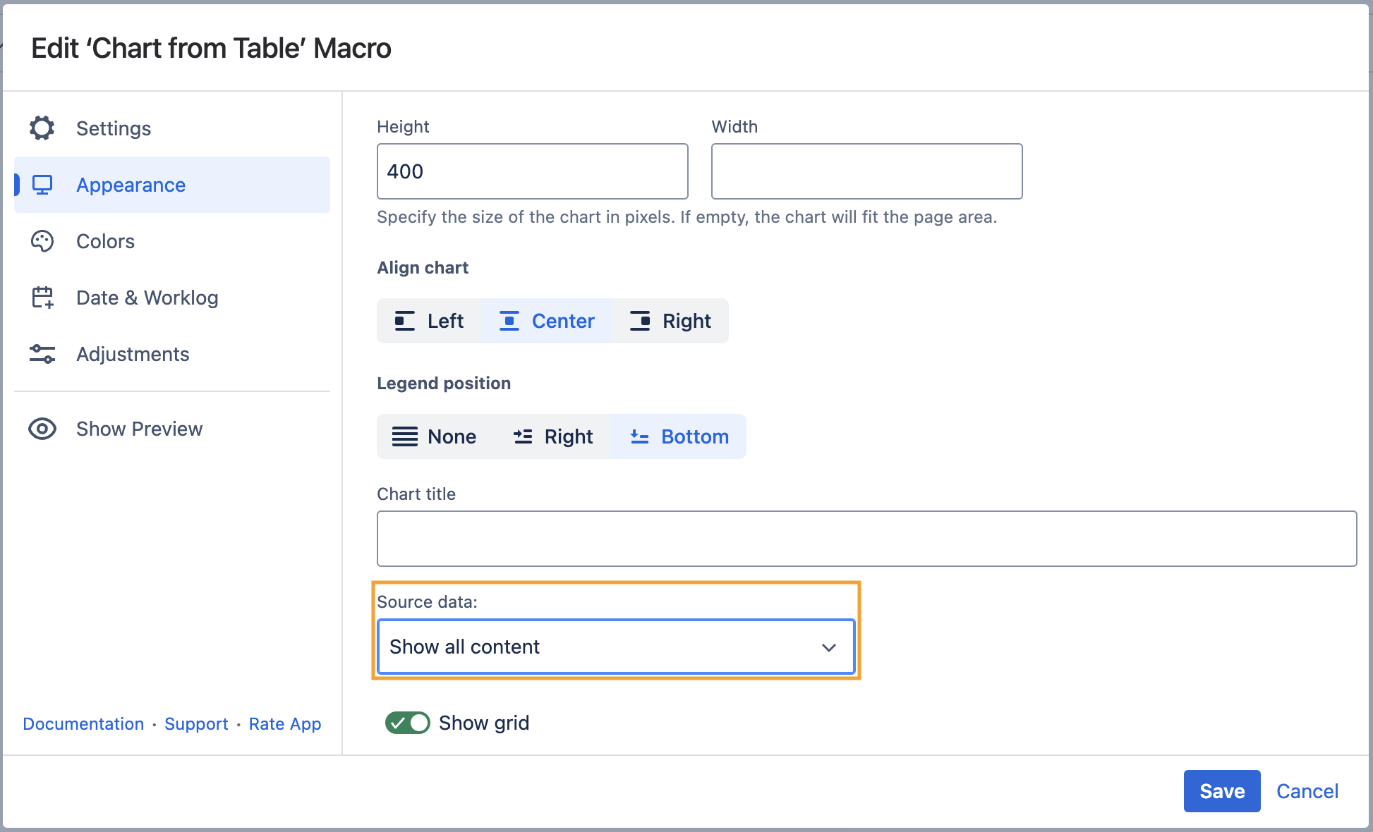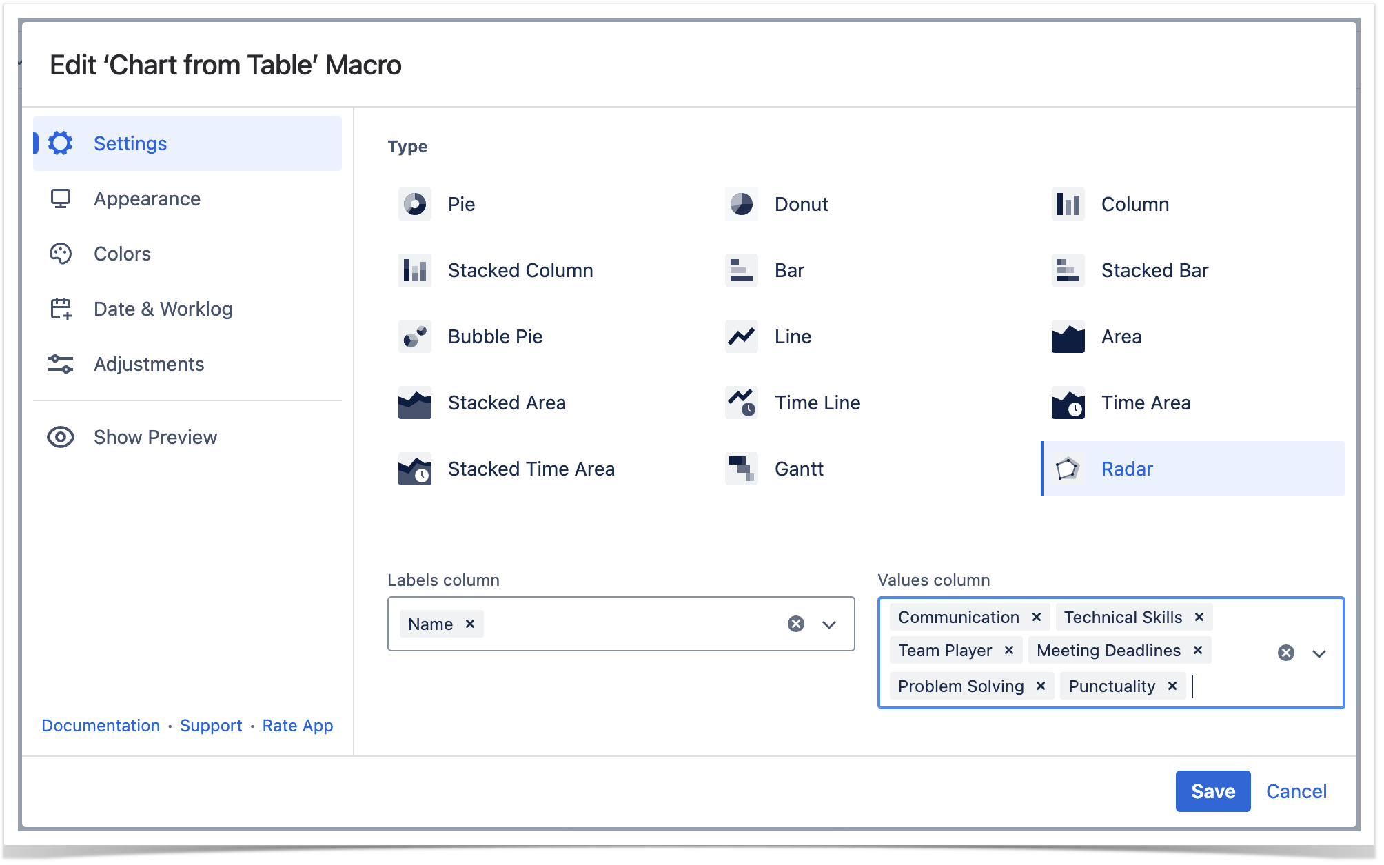 - Insert the Chart from Table macro and paste the table within the macro body.