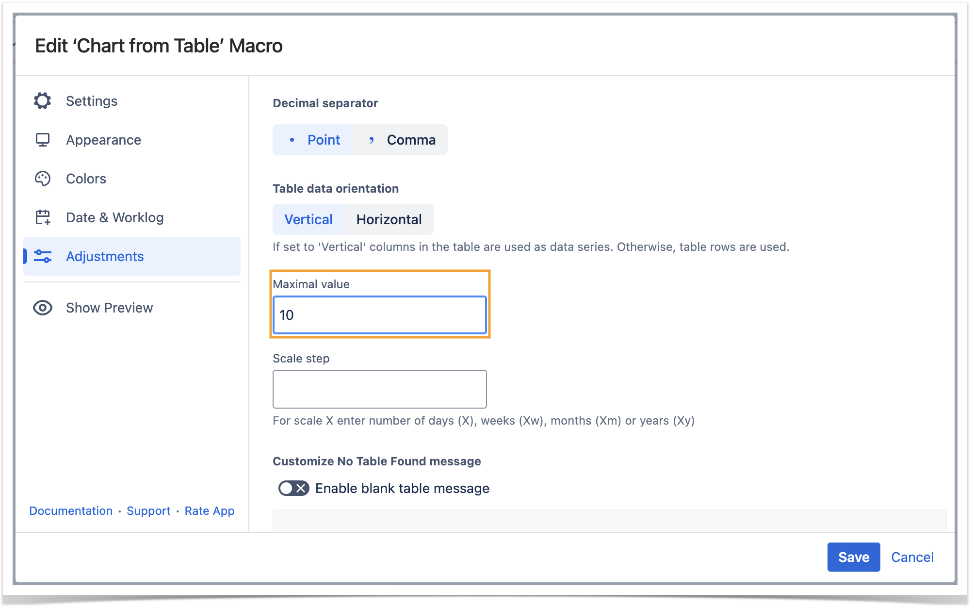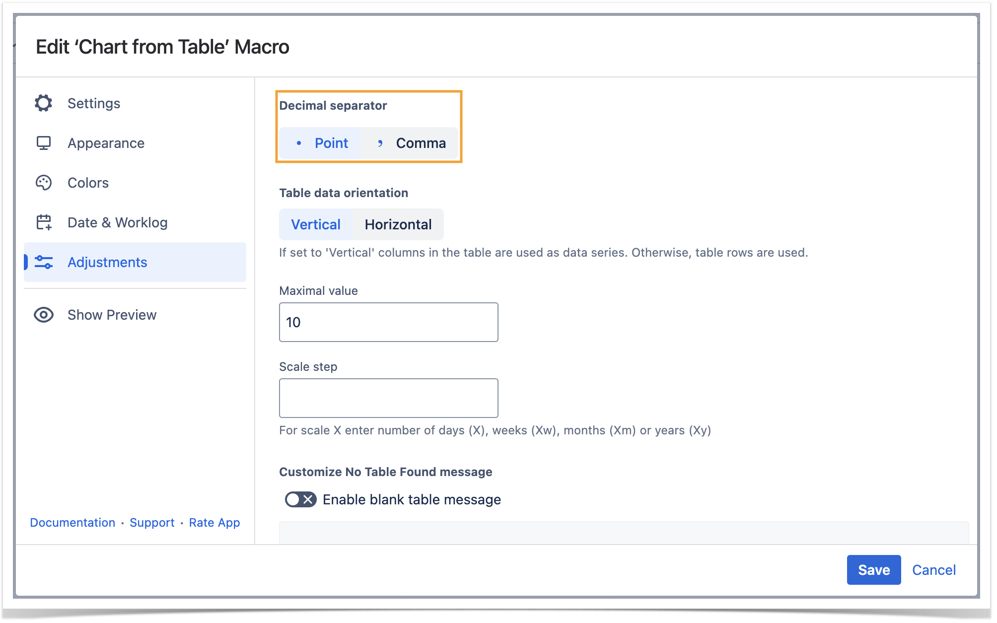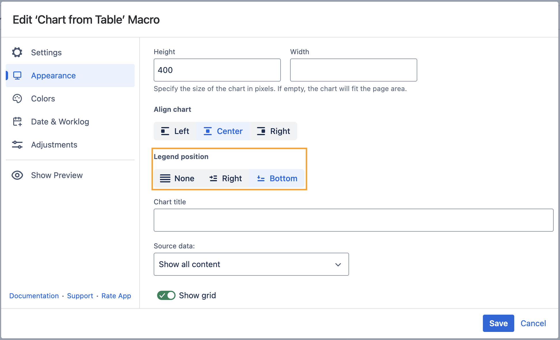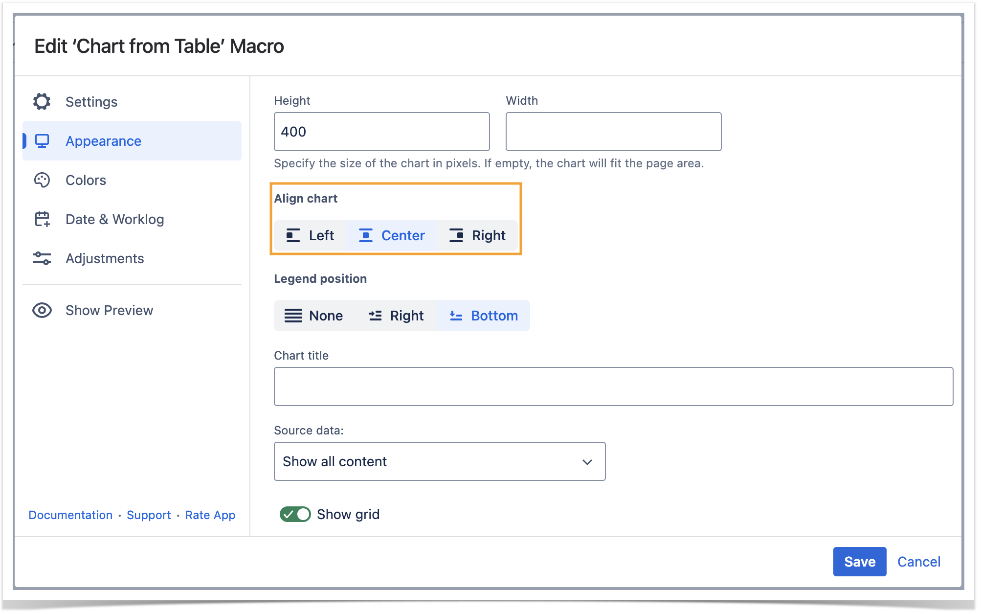 - Insert the Chart from Table macro and paste the table within the macro body.