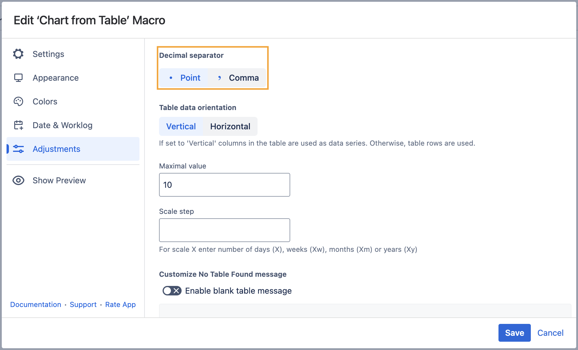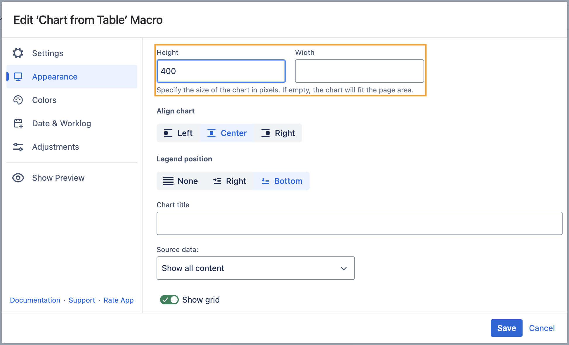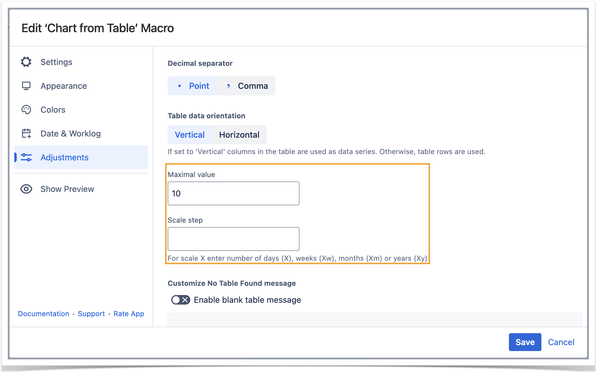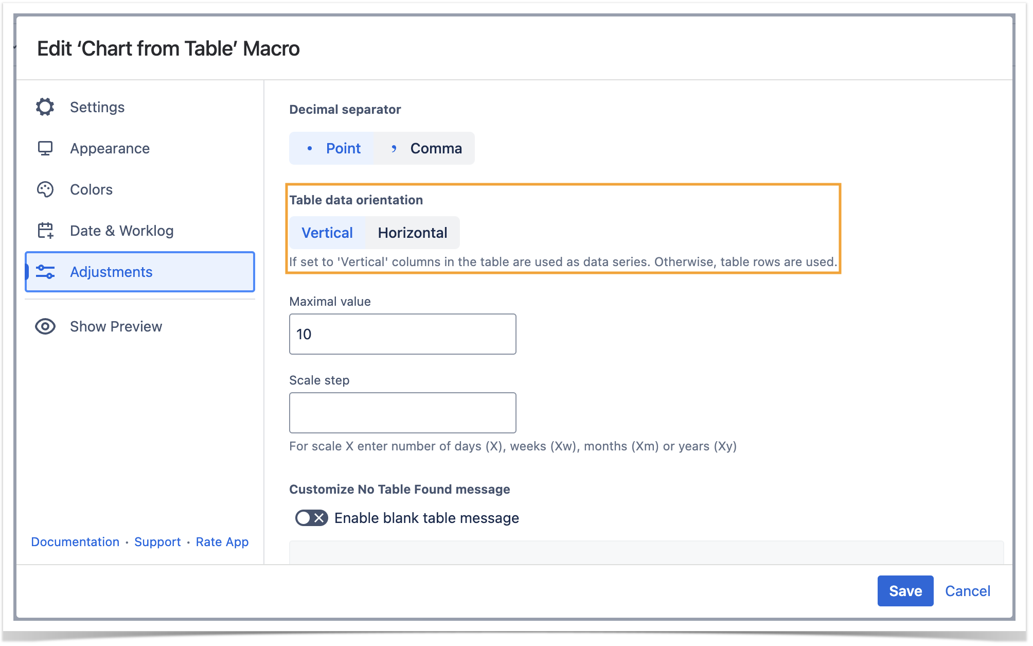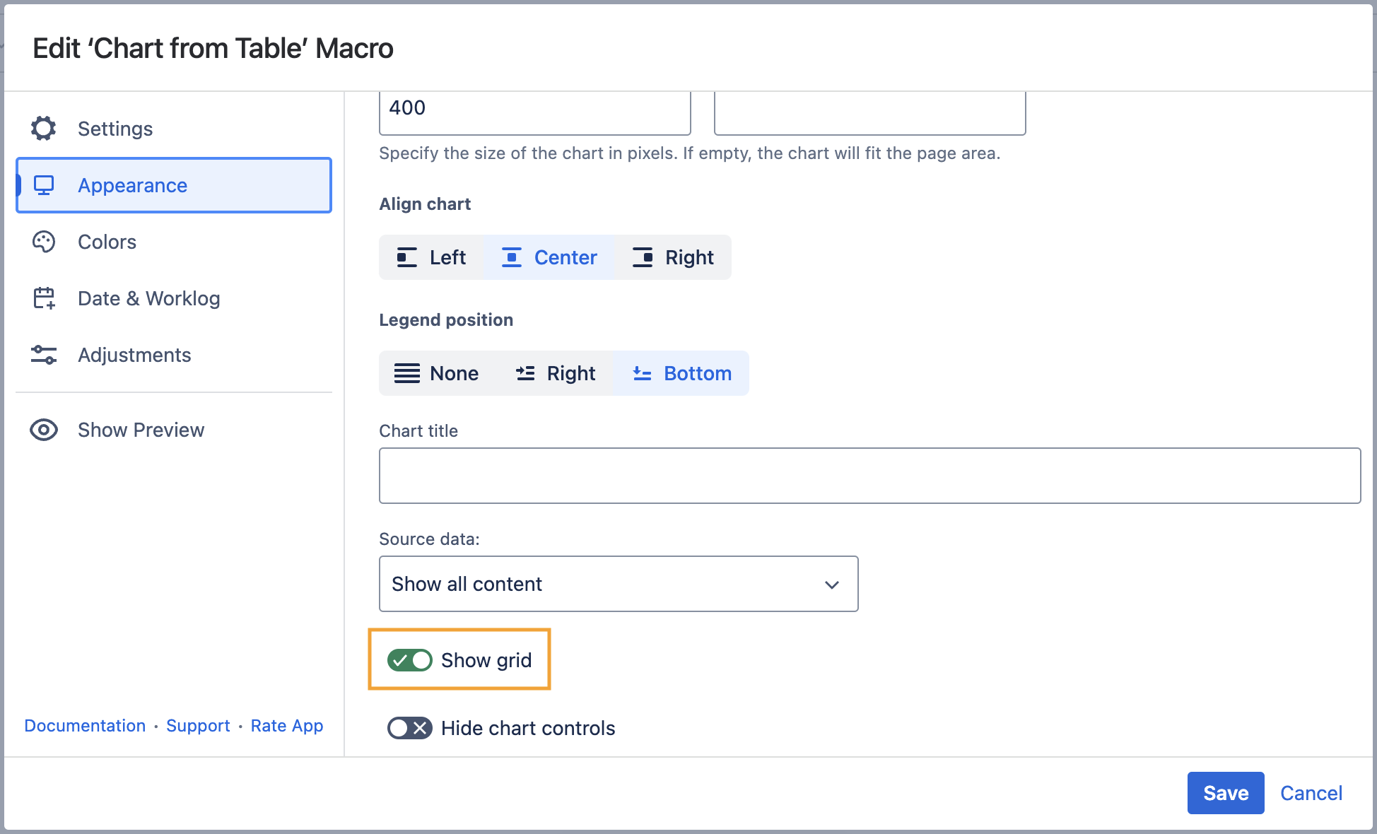 - Insert the Chart from Table macro and paste the table within the macro body.