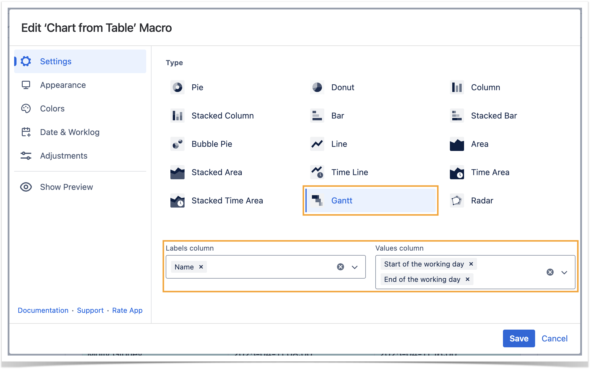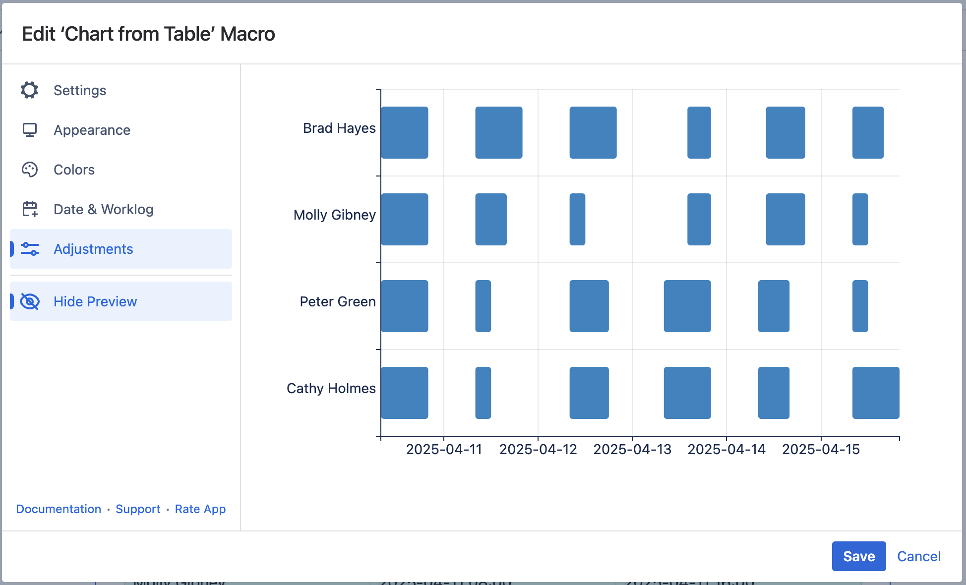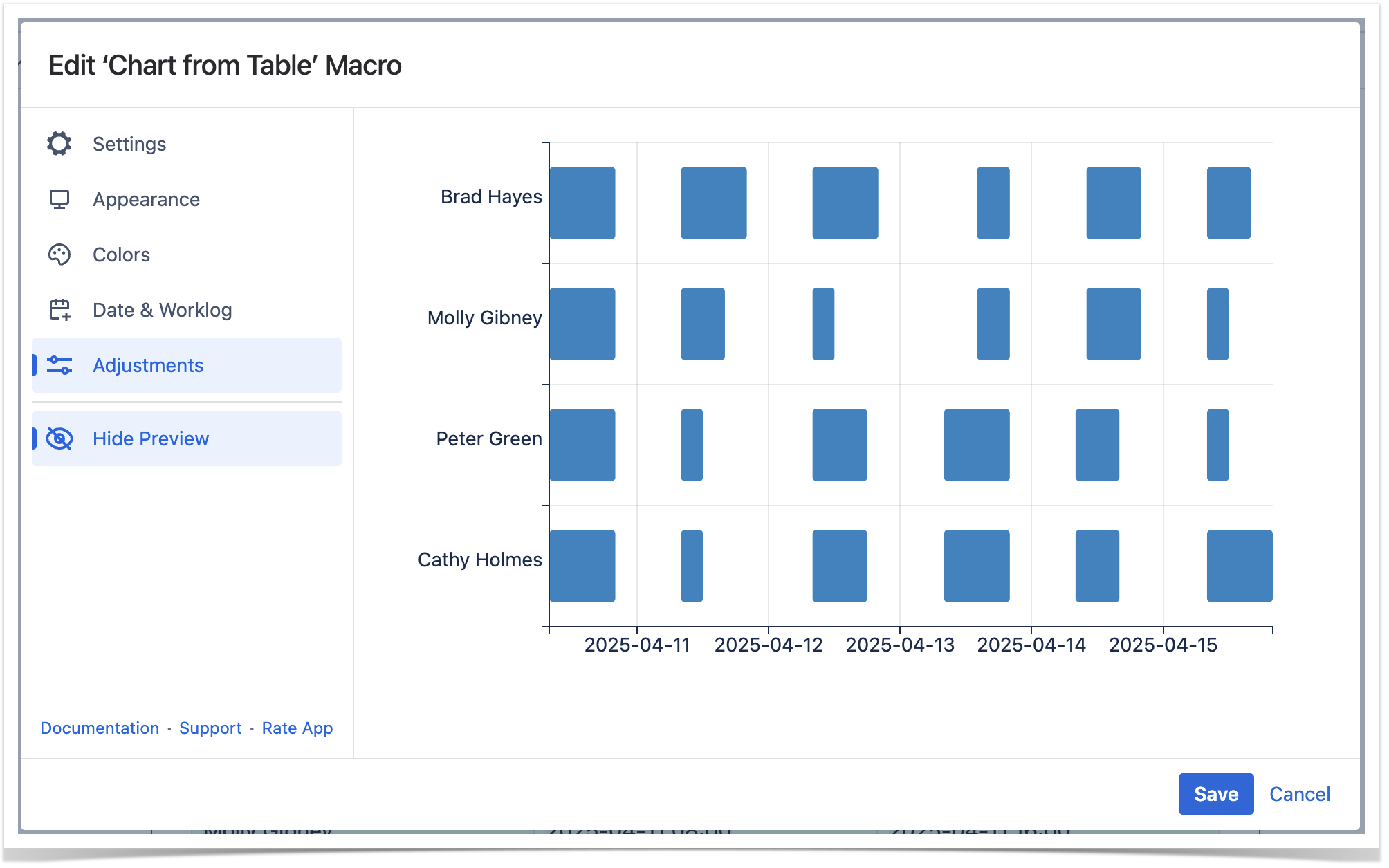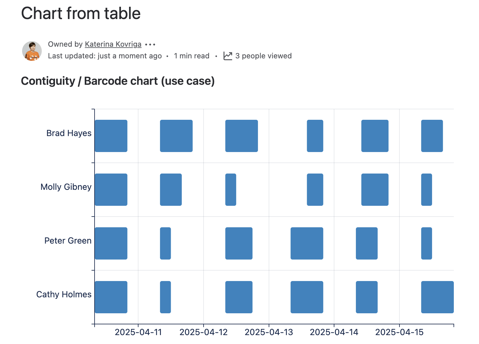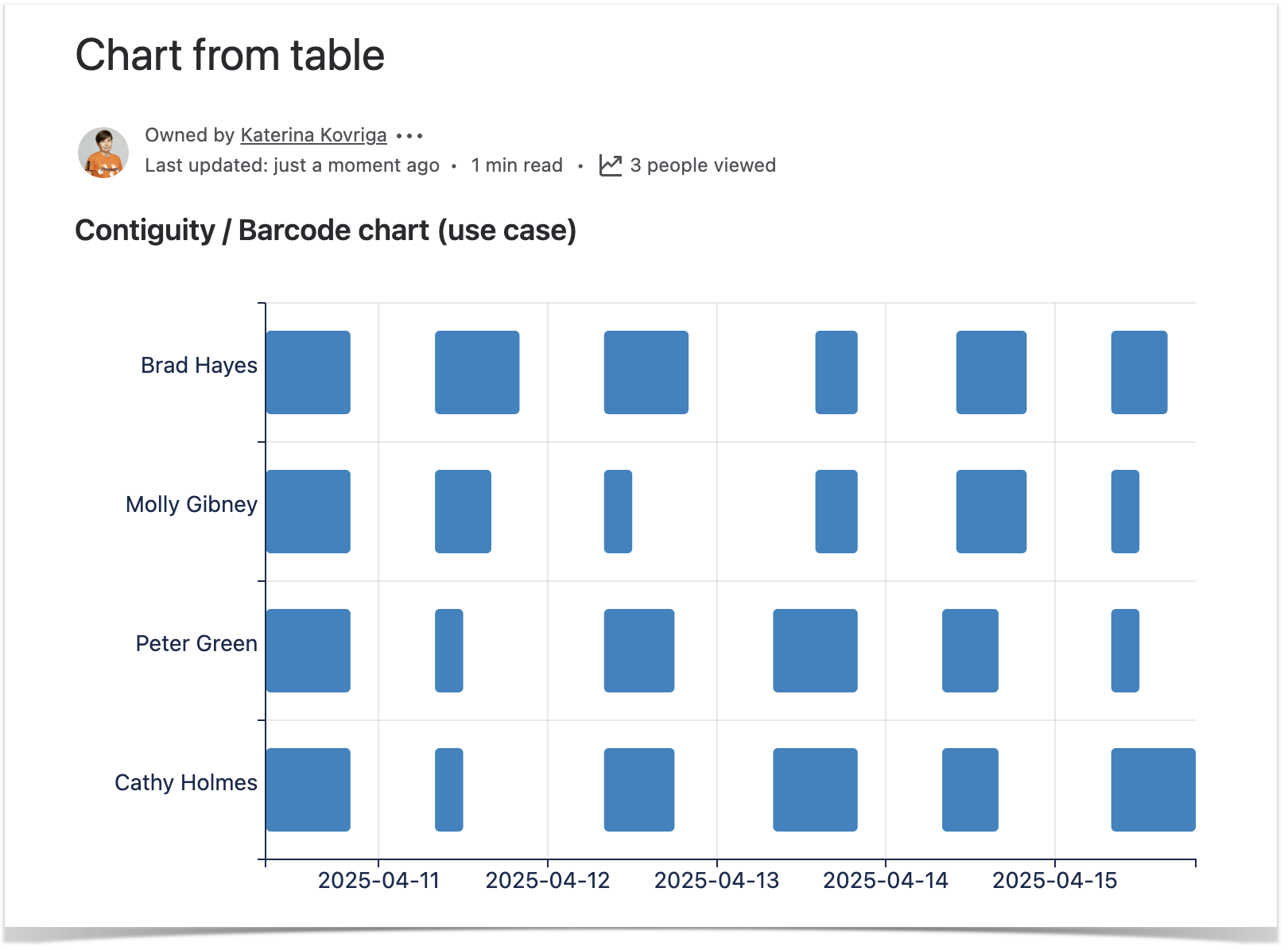 You are going to build a chart with time ranges of daily working hours shown according to an employee's name.