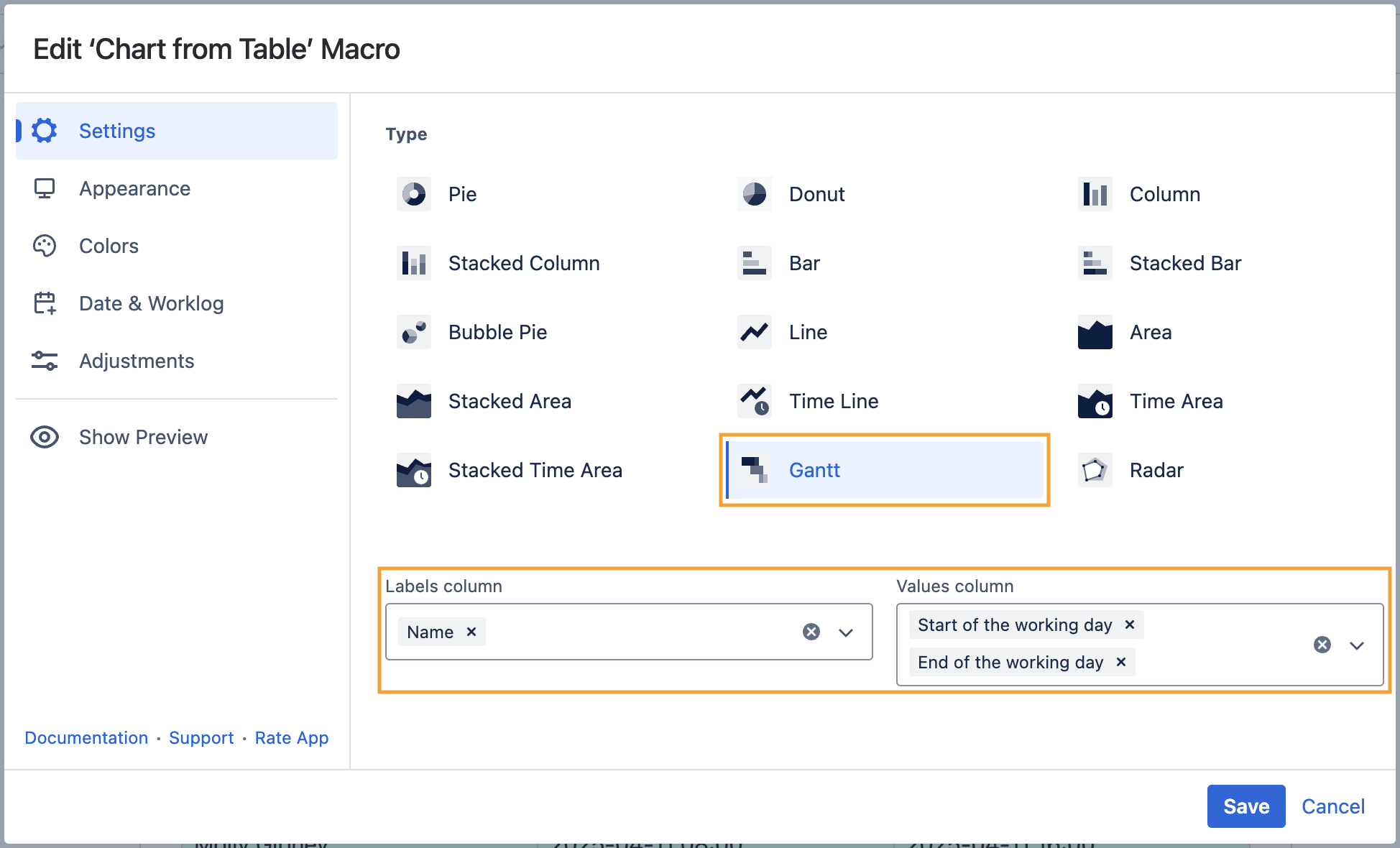- Wrap the table with the Chart from Table macro.