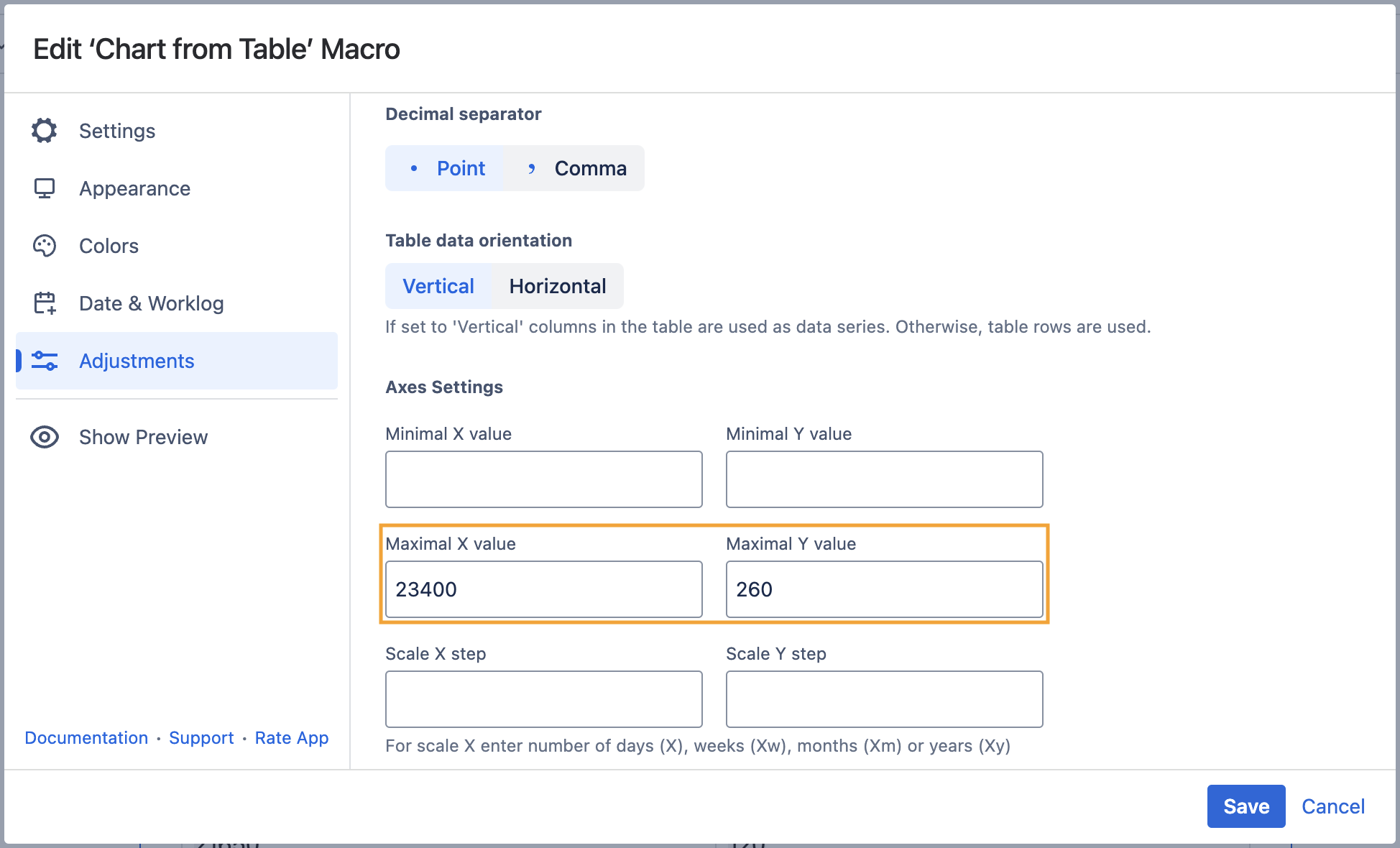 - Wrap the table with the Chart from Table macro.