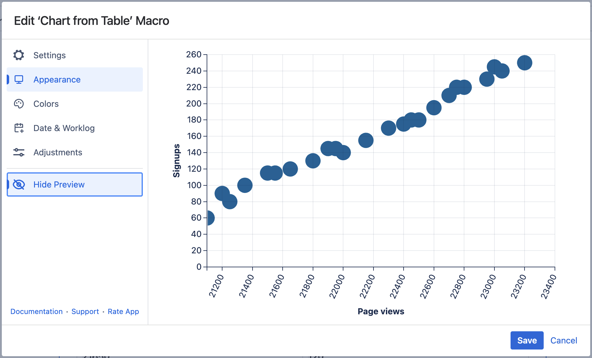 There is a data table with two columns: "Page views" and "Signups".