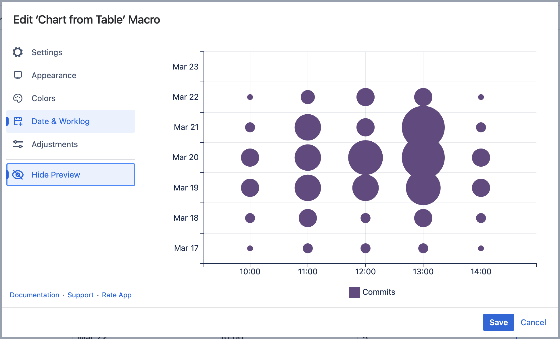 You can build a Punchcard with the help of the Bubble Pie chart type.