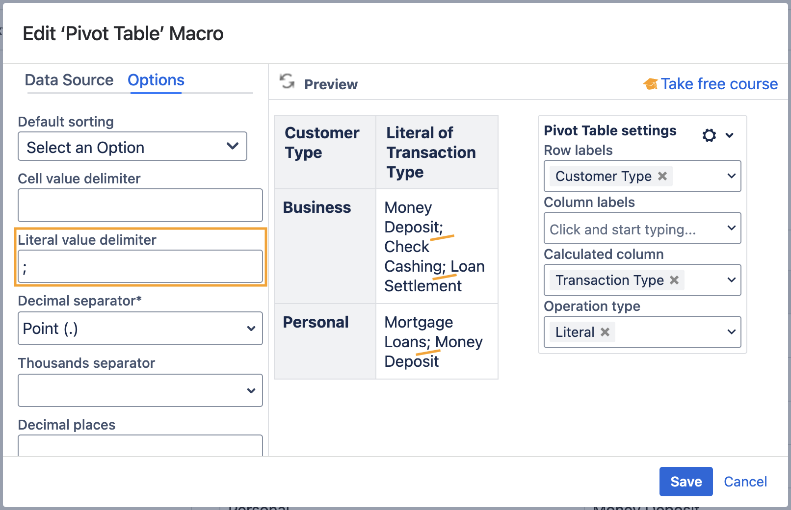Set the cell value delimiter