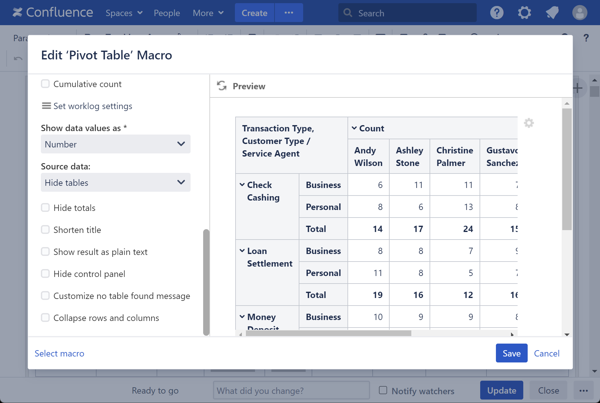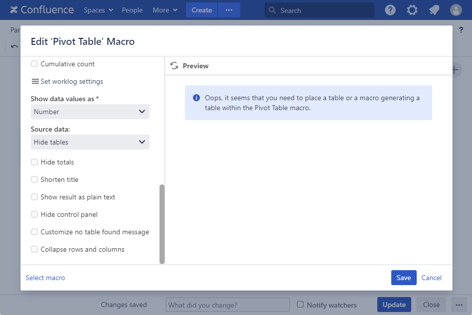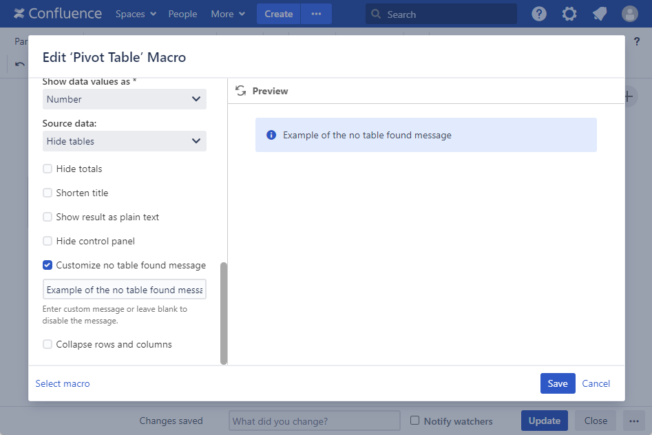 - Save the macro and the page.