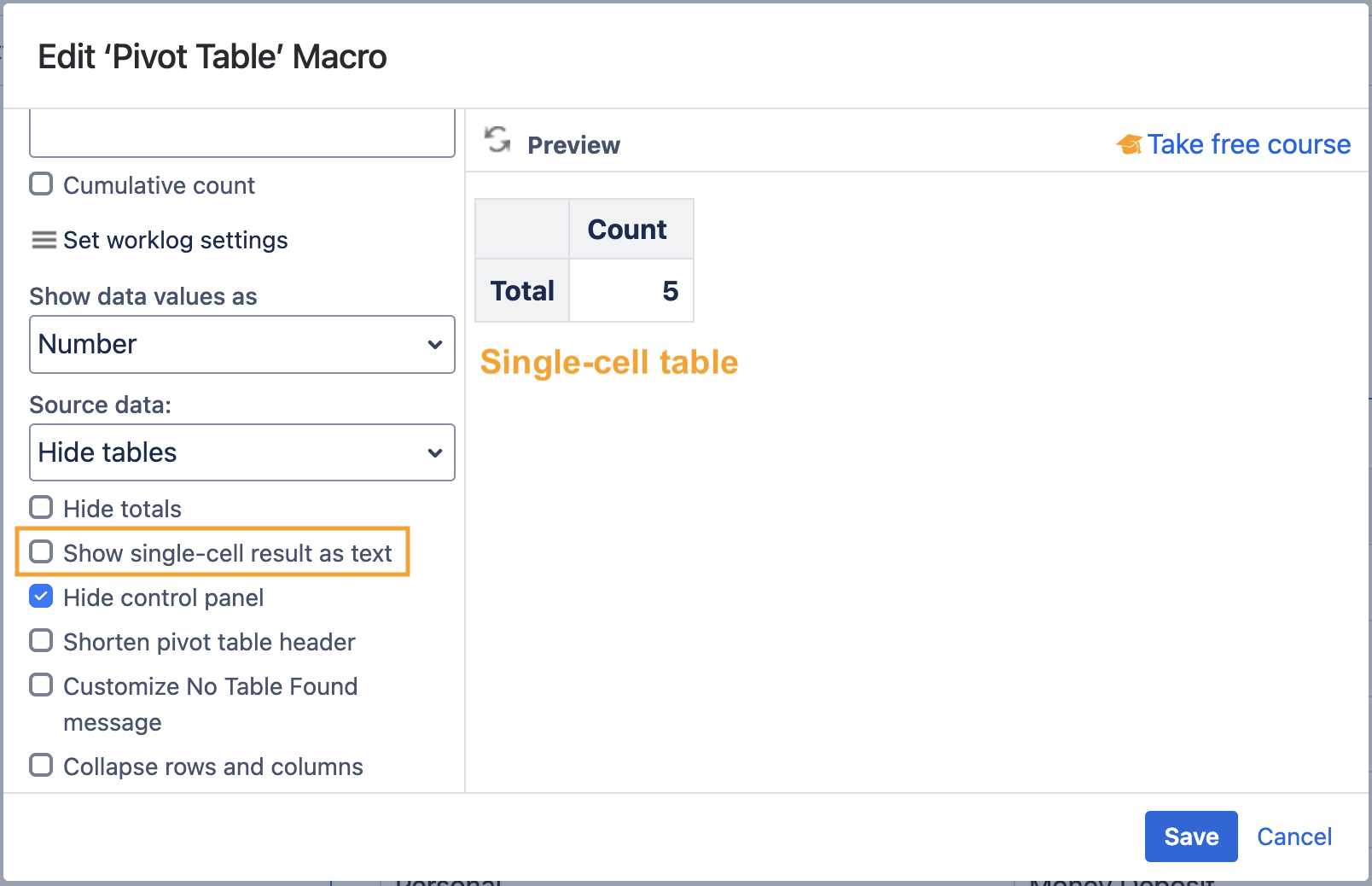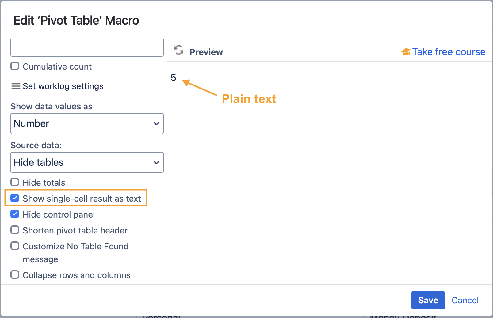- Locate and enable the Show single-cell result as text option.