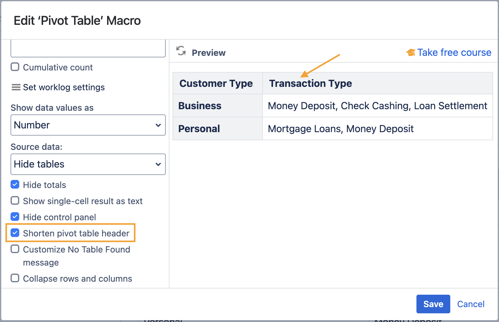 - Locate and enable the Shorten pivot table header option.
