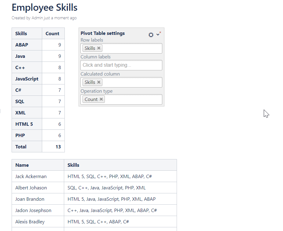 The Pivot Table macro supports summarization of worklogs and time intervals.